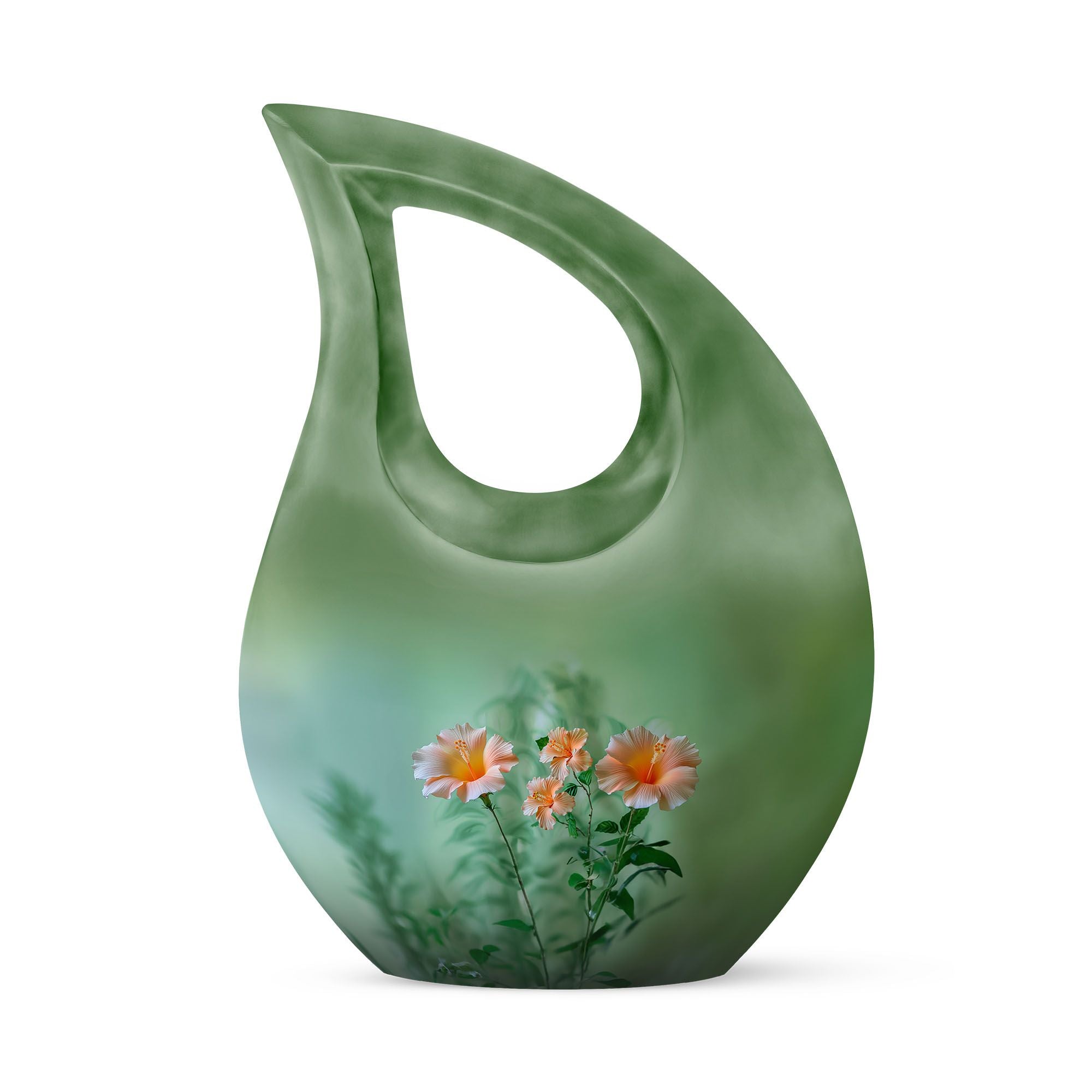 Losing a loved one is never easy, and finding the right way to honor their memory is deeply meaningful. This green burial flowers design provides a serene and comforting choice, making it one of the most thoughtful funeral urns for human ashes adult families can select. With its elegant floral motif, it symbolizes peace, remembrance, and everlasting love.