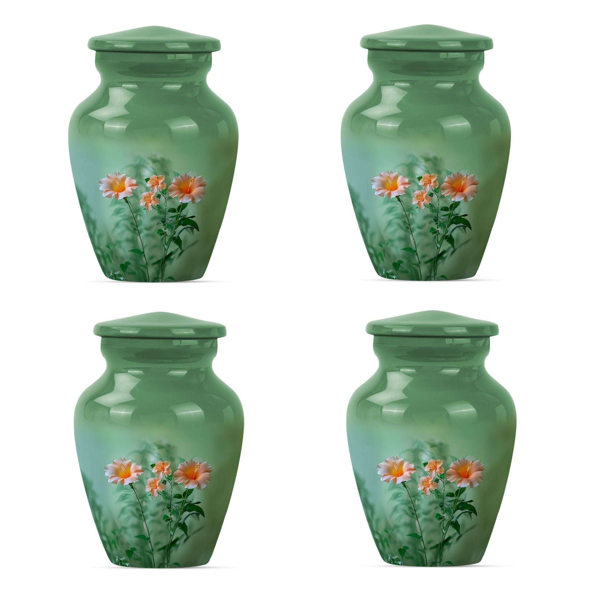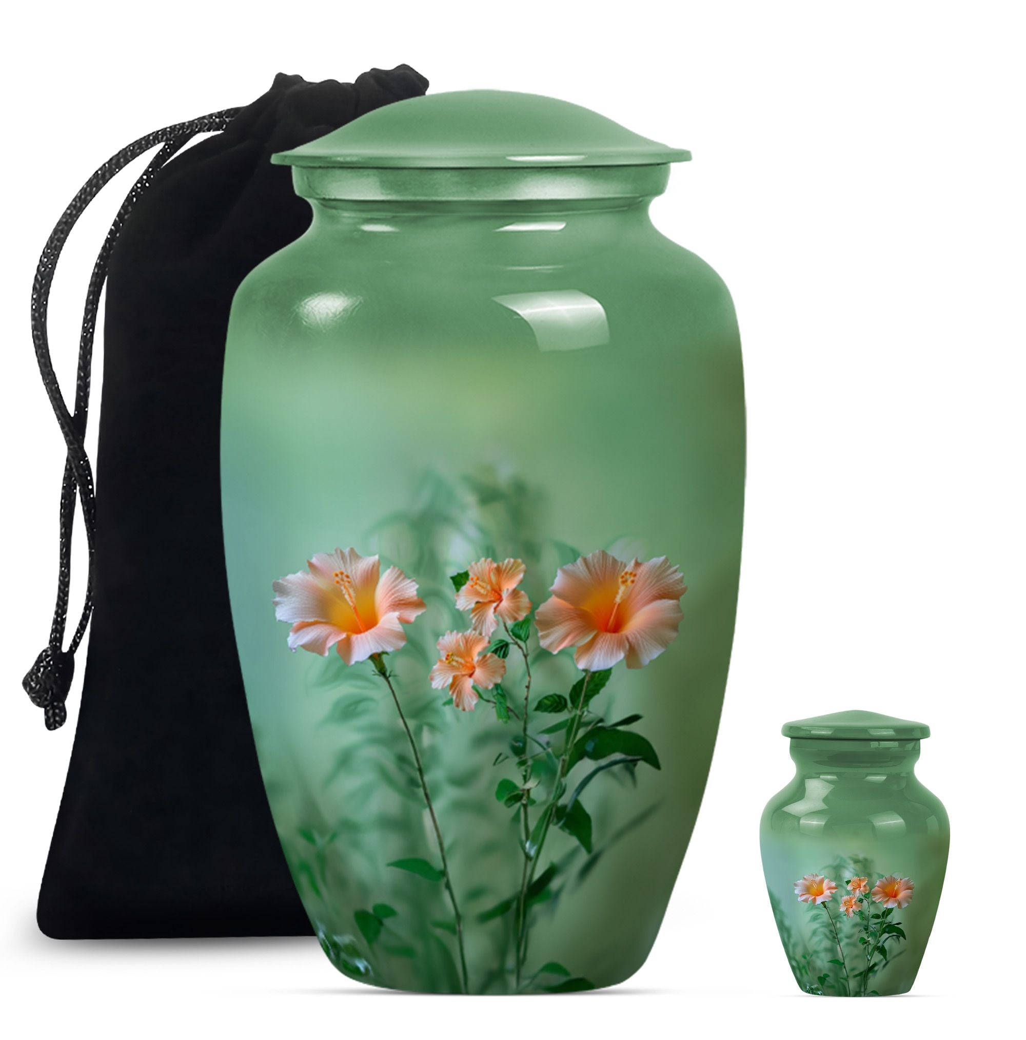 Expertly crafted, this large decorative urn combines durability with timeless design. Made from high-quality aluminum, it ensures lasting strength to hold ashes safely. Its secure screw-top lid provides peace of mind, while the green floral pattern creates a beautiful and dignified presence. Designed as a cremation urn large enough to serve as a final resting place, it reflects both beauty and respect.