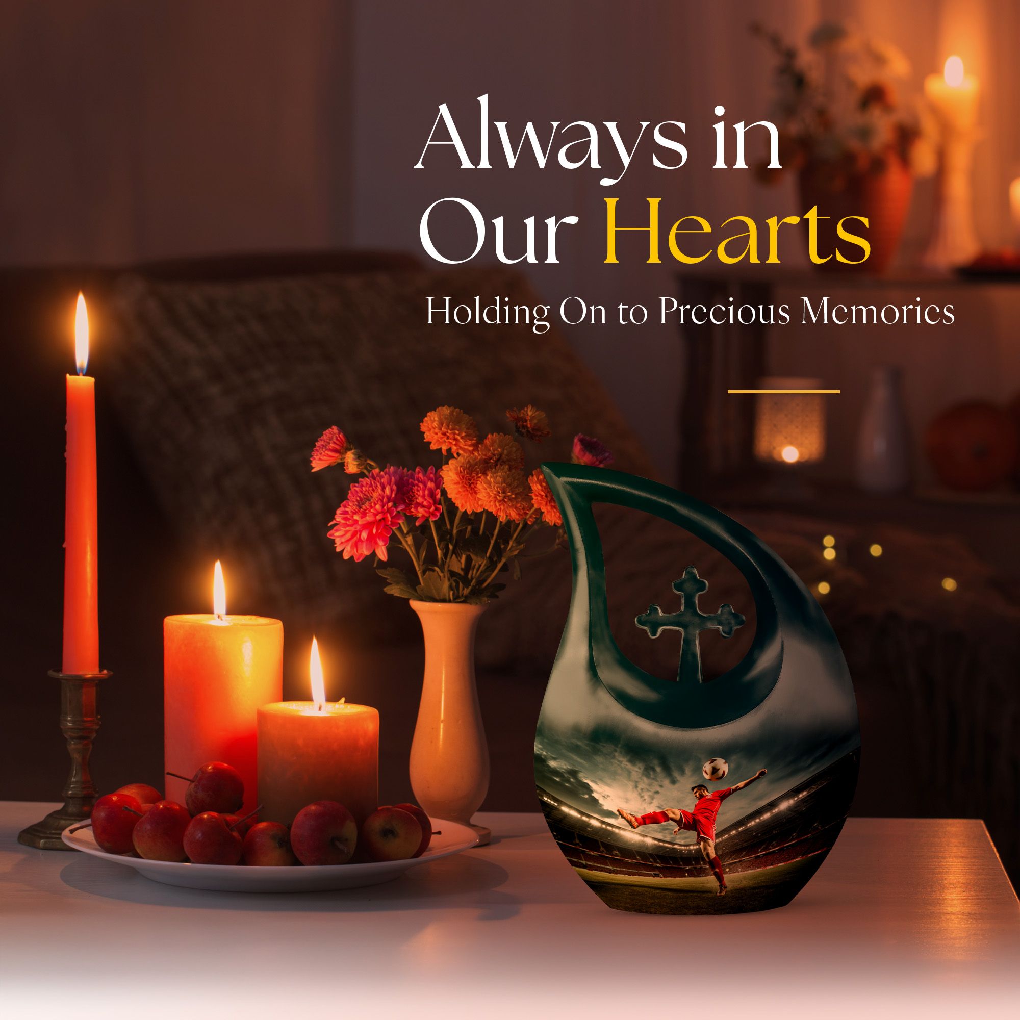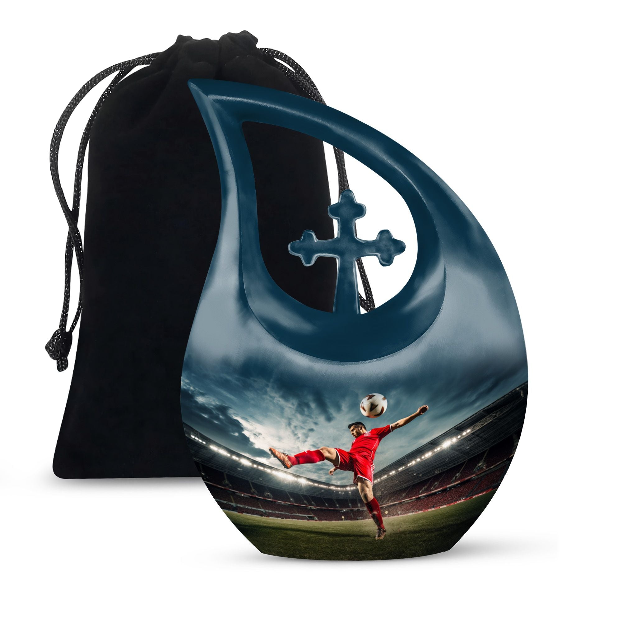 A tribute filled with passion, energy, and lifelong memories, this Soccer Memorial Urn for Cremation honors the spirit of someone who loved the game. Designed for both men and women, it offers a meaningful and uplifting way to preserve a cherished life—ideal for families seeking a large urn human ashes option with a sporty, personal touch.