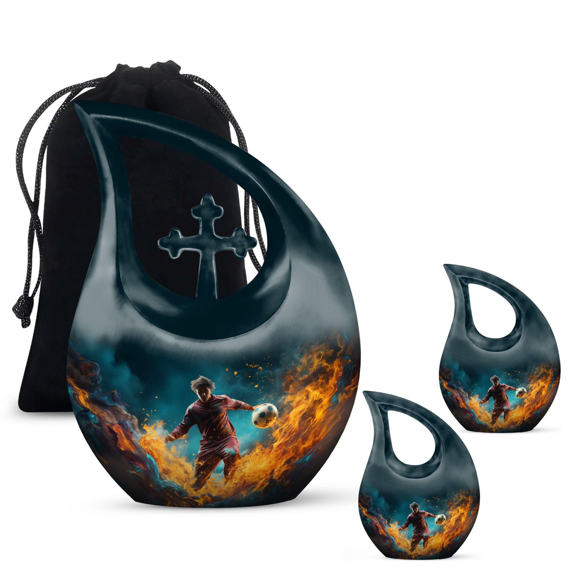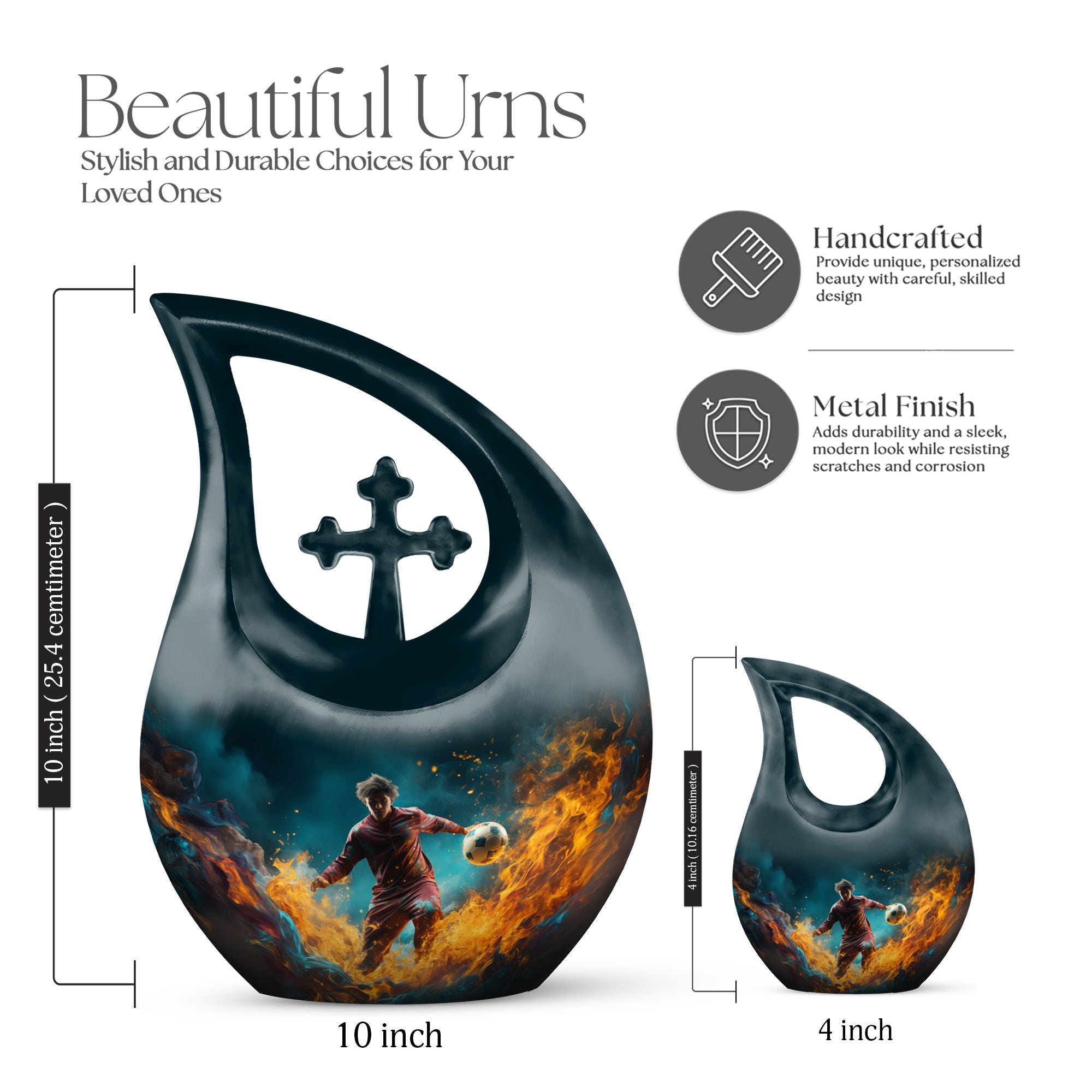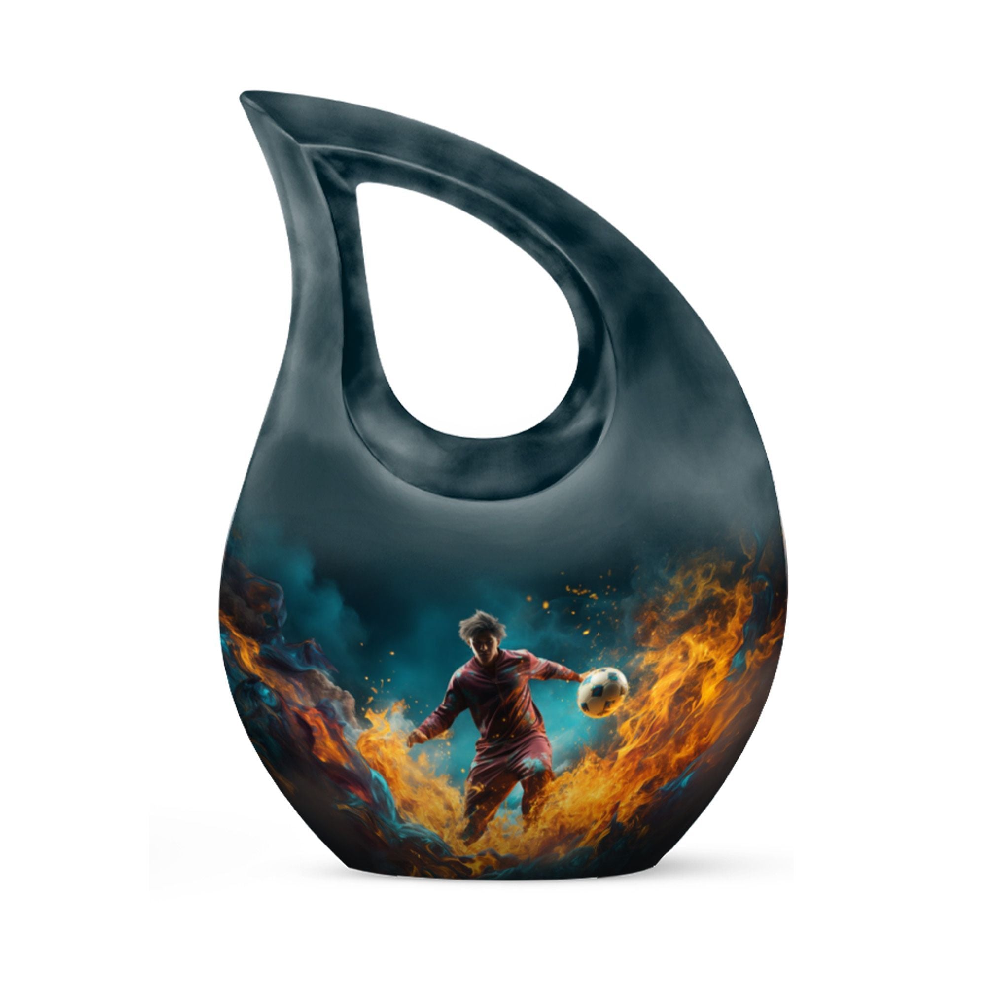 Tailored for the followers of the great game of football and the ceremonial necessities of memorials, this 10-inch Football Urn bridges the gap, standing as one of the most unusual urns for ashes. The impressive size and heaviness, weighing 3.3 pounds, demonstrate its premium quality construction from durable aluminium. Designed with a cross drop design and a football theme, it echoes a meaningful connection to the celebrated sport and the sacredness of memorials. This large urn has a roomy compartment that can carry up to 200 cubic inches of ashes, securely packaged in a rich velvet pouch for added respect and dignity. What's more, to make this memorial urn even more special and treasured, it can be personalized with engraved names, etching your loved one's memory into a solid visual symbol. For those seeking the best urns or specifically urns for men's ashes, this Football Urn stands high in the list with its unique appeal. This bio urn for humans offers a touching homage to your loved ones and their love for football.