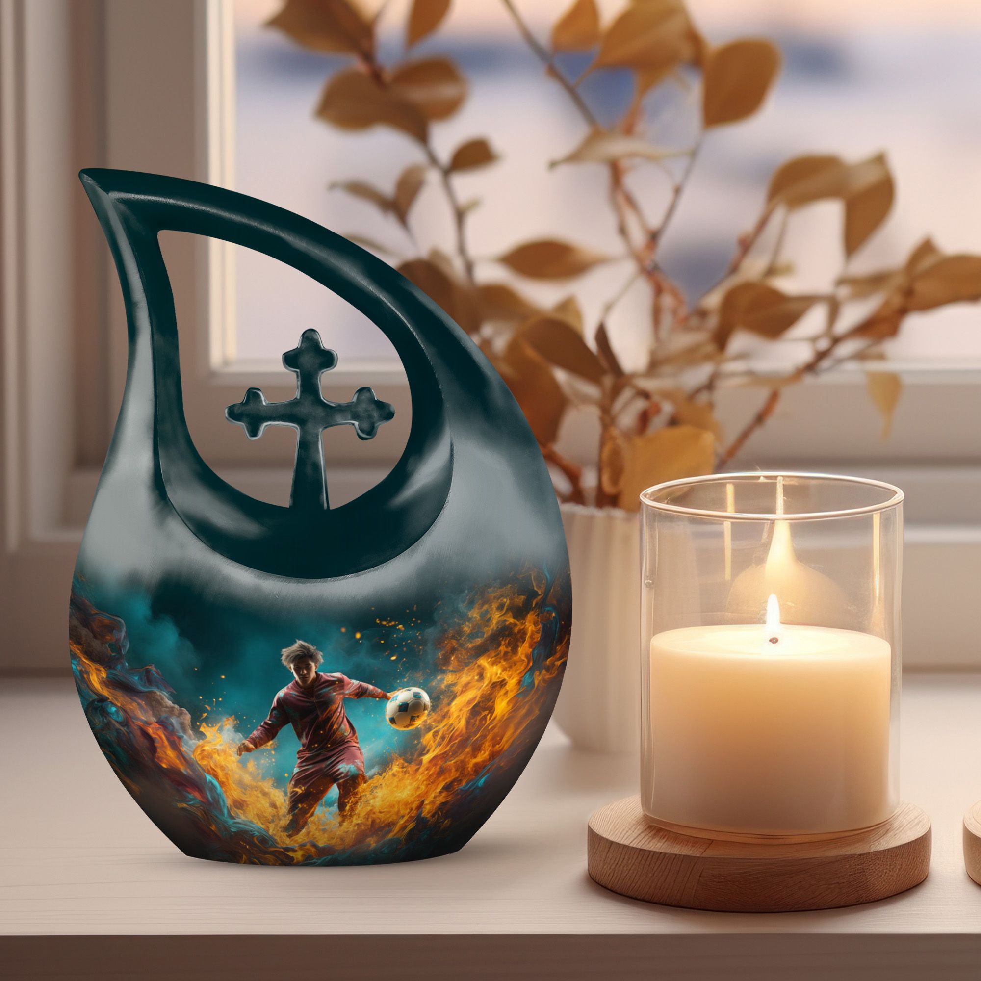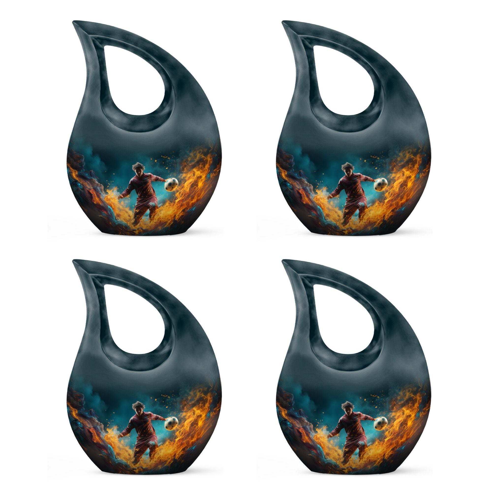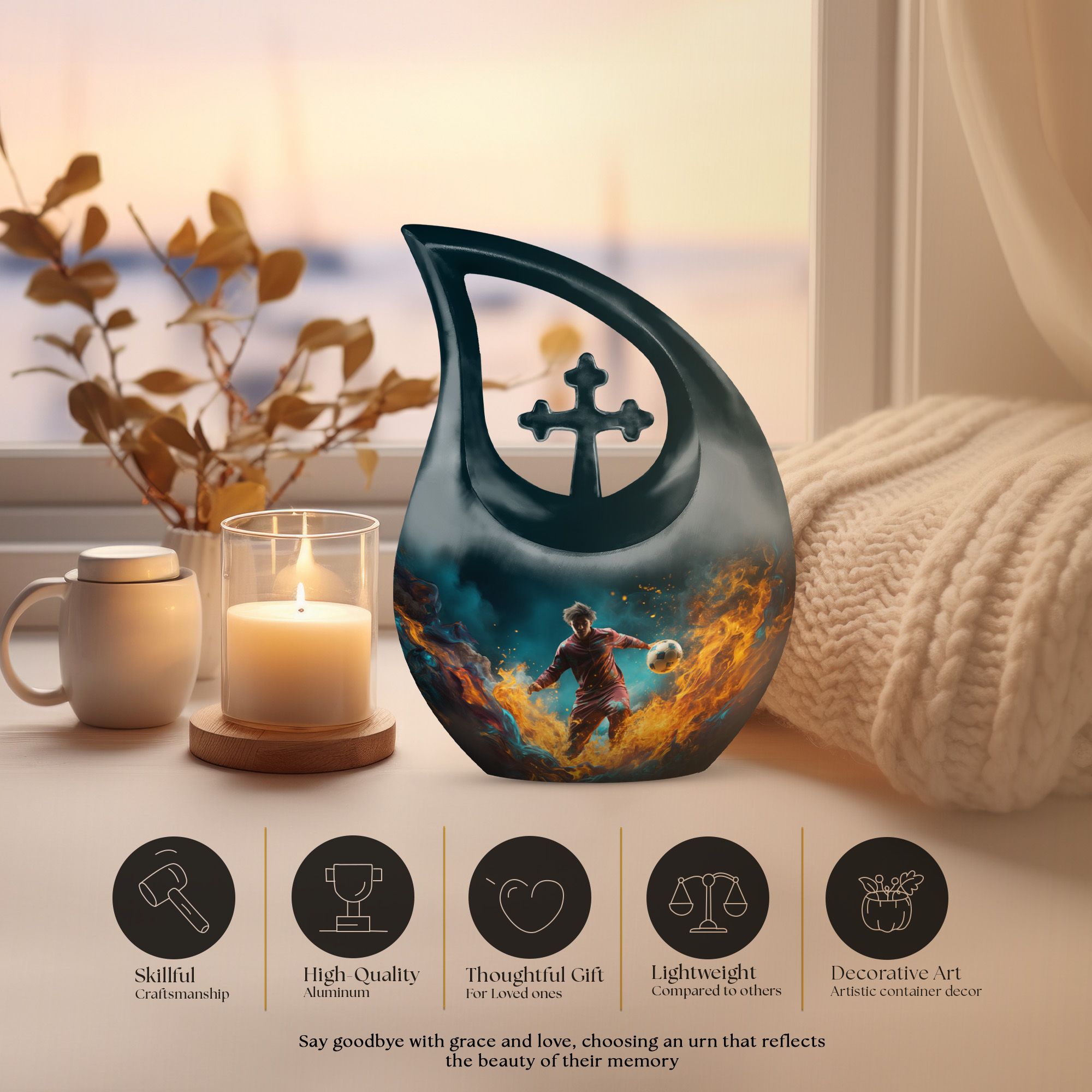 Tailored for the followers of the great game of football and the ceremonial necessities of memorials, this 10-inch Football Urn bridges the gap, standing as one of the most unusual urns for ashes. The impressive size and heaviness, weighing 3.3 pounds, demonstrate its premium quality construction from durable aluminium. Designed with a cross drop design and a football theme, it echoes a meaningful connection to the celebrated sport and the sacredness of memorials. This large urn has a roomy compartment that can carry up to 200 cubic inches of ashes, securely packaged in a rich velvet pouch for added respect and dignity. What's more, to make this memorial urn even more special and treasured, it can be personalized with engraved names, etching your loved one's memory into a solid visual symbol. For those seeking the best urns or specifically urns for men's ashes, this Football Urn stands high in the list with its unique appeal. This bio urn for humans offers a touching homage to your loved ones and their love for football.