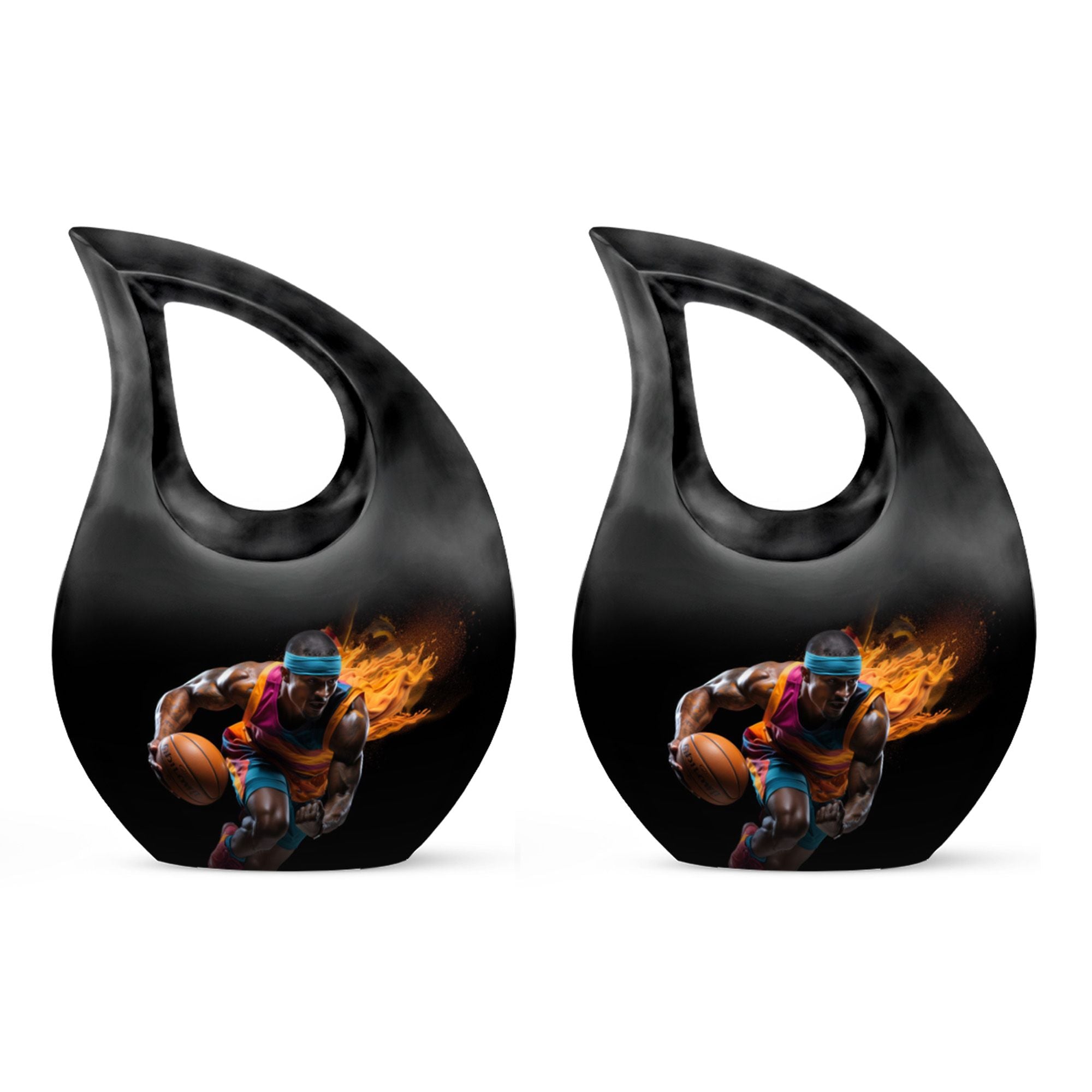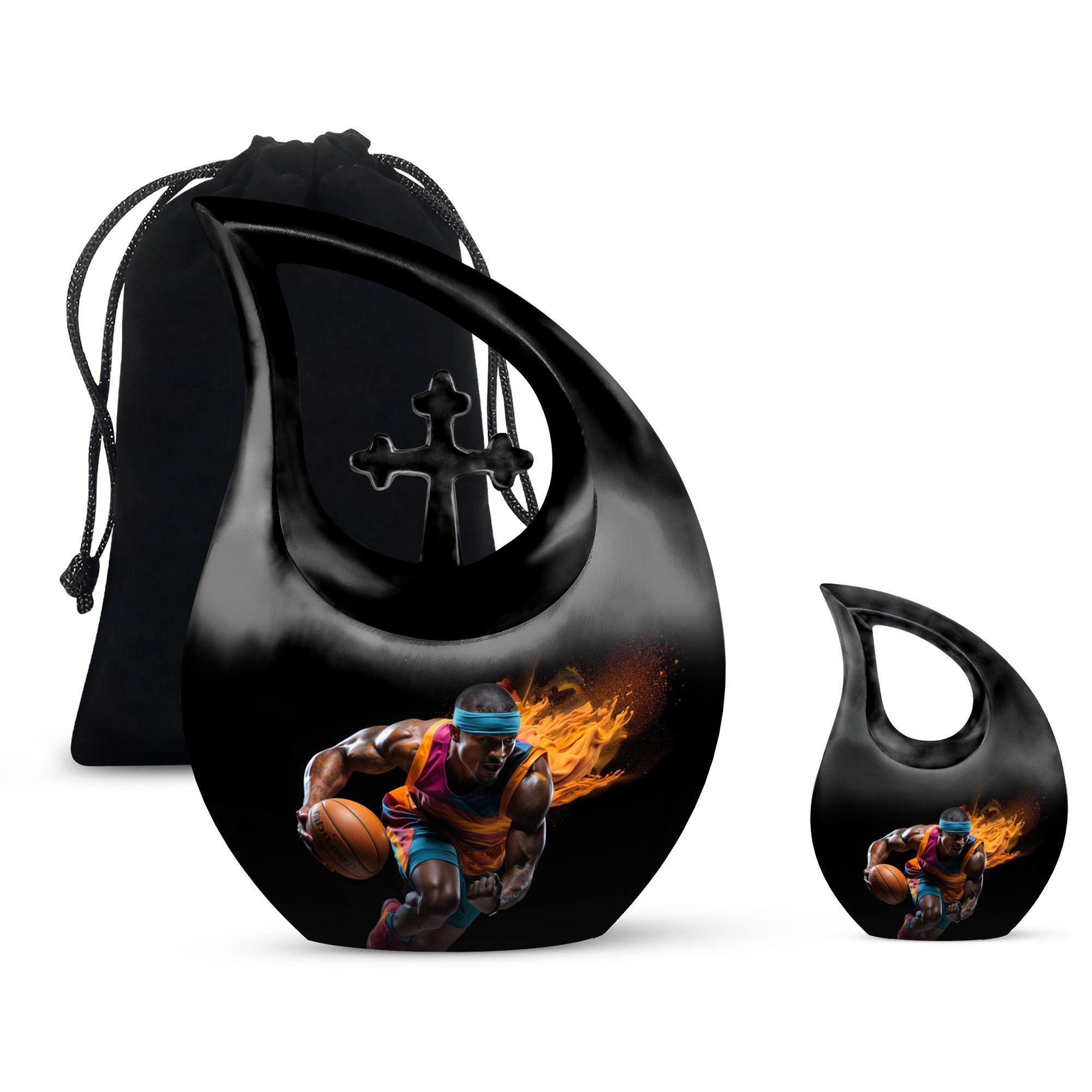 Create a reverent final homage to a beloved football enthusiast with our impressively crafted 10-inch Football Urn. This large-sized, yet affordable, cremation and burial urn beautifully combines the rugged charm of football with the serene motif of a simple cross drop design. Made from high-quality aluminium, this urn weighs a sturdy 3.3 pounds and has a substantial capacity of 200 cubic inches. The size and weight make it a fitting repository for the ashes of an adult or senior. The urn comes with a velvet pouch for respectful containment of ashes. What sets our football urn apart is the option to personalize each piece with engraved names, adding an extra touch of intimacy to this memorial item. Our urns are more than just cremation boxes for burial, they are a tribute to your loved ones' passion and life. While ideal for lovers of the sport, it's also suitable for those searching for companion urns for ashes or marble cremation urns. This unique Football Urn presents a distinct way to keep memories alive.