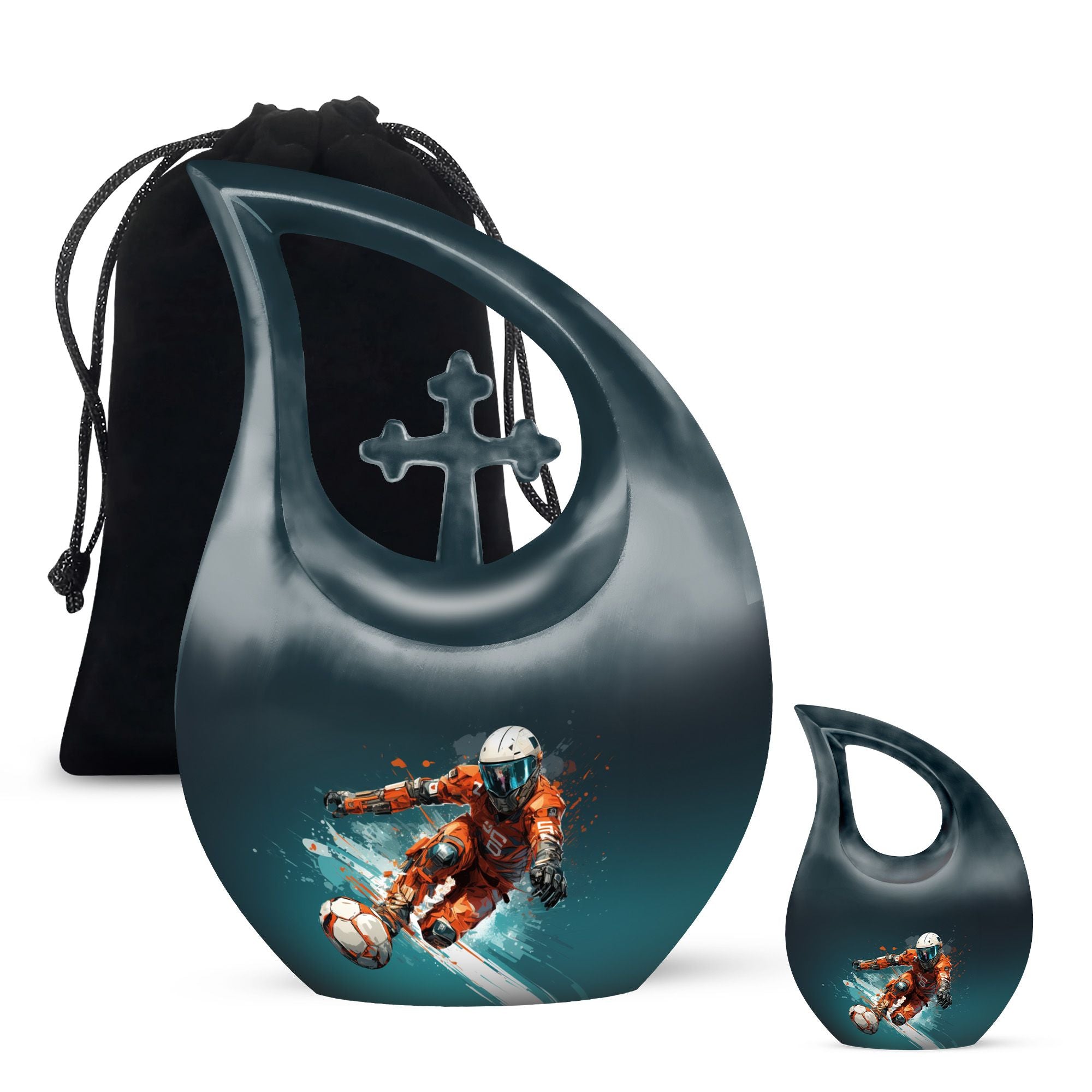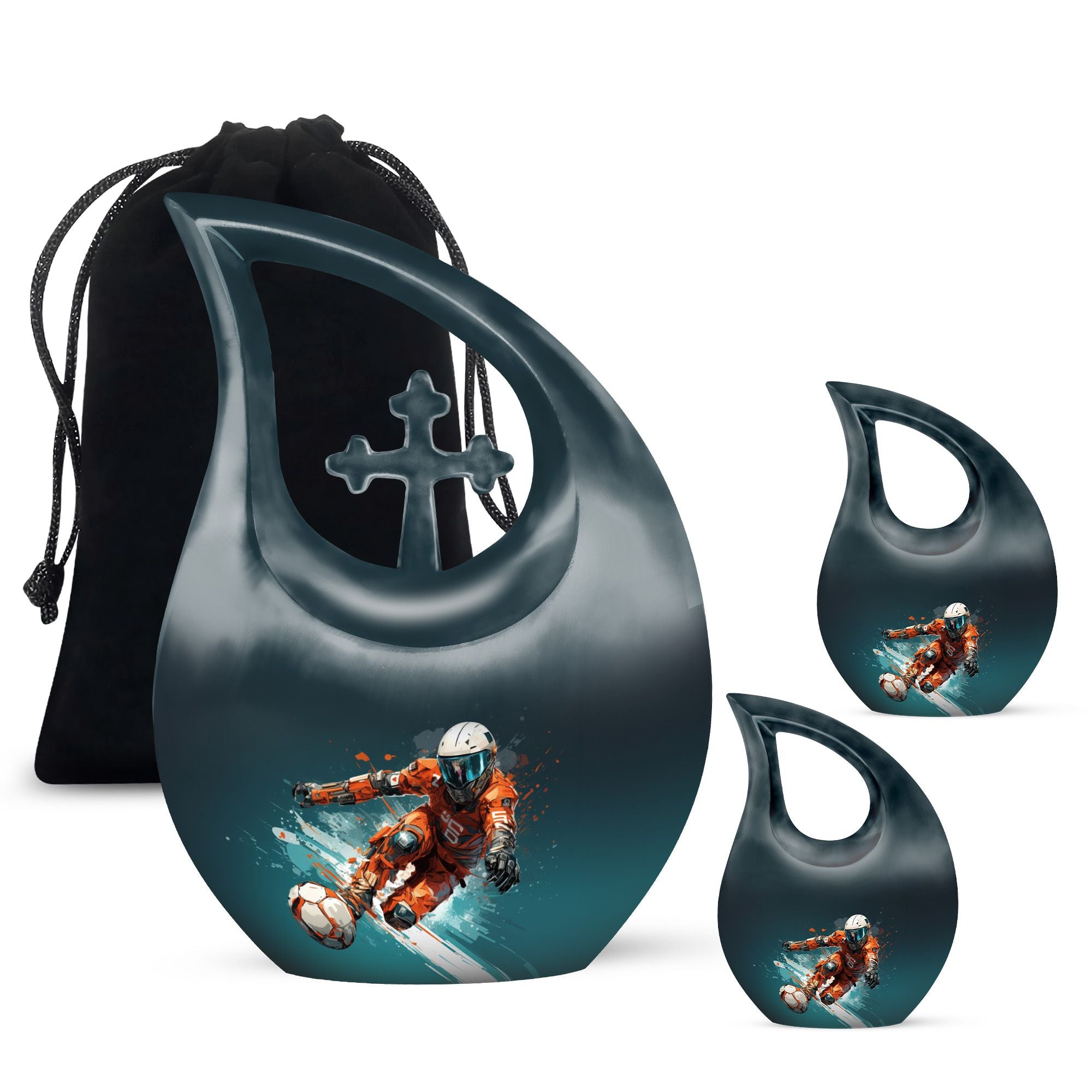 Crafted from durable aluminum, this large and keepsake urn set showcases detailed football-inspired artwork symbolizing strength, dedication, and passion. Its secure screw-top lid ensures long-term protection, while its spacious interior makes it ideal for burial urns for human ashes adult male, large urns for human ashes adult male, or large urns for female & male. For families who wish to share ashes, it pairs beautifully with mini urns for human ashes adult male, urns for adult male small keepsakes, or options such as urn female adult, urn female ashes, urn ash adult female, or urn human ash adult female. Its design supports a wide range of memorial needs while maintaining a unified and dignified style.