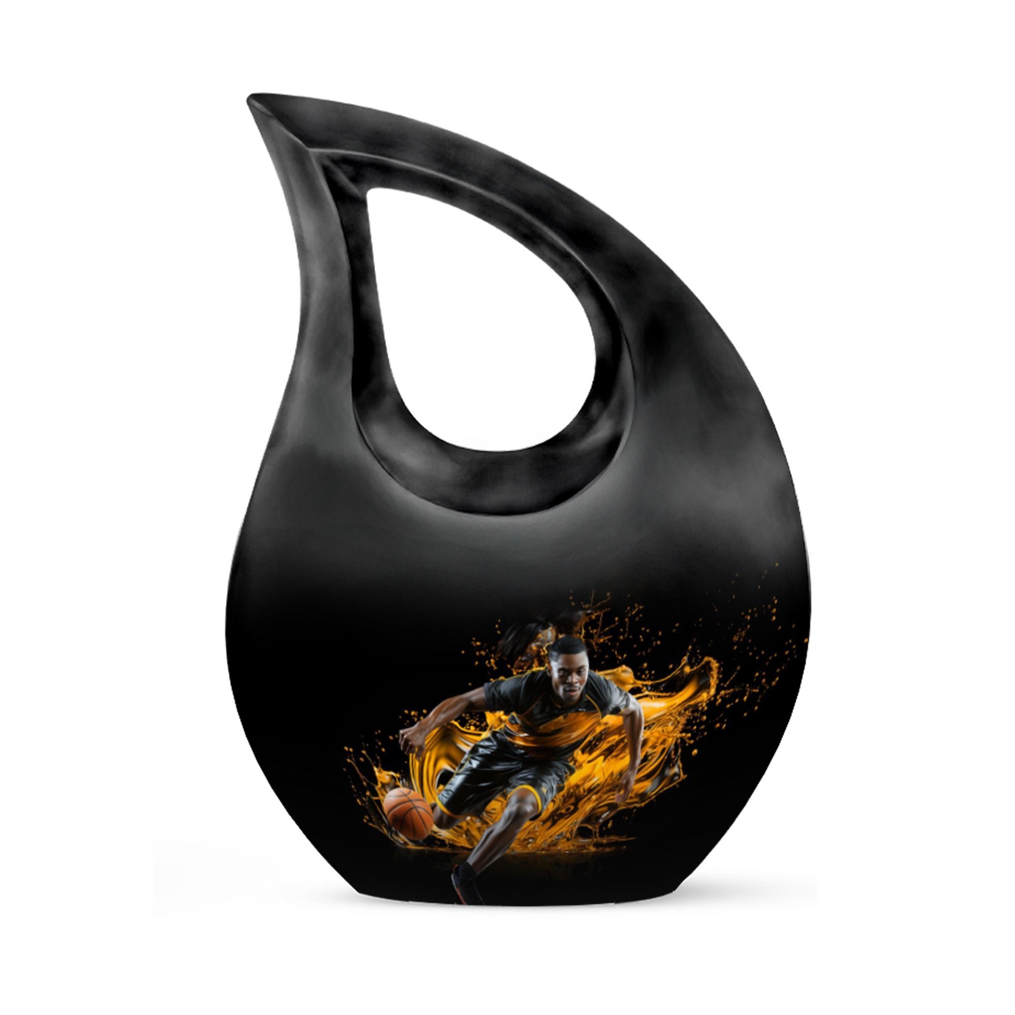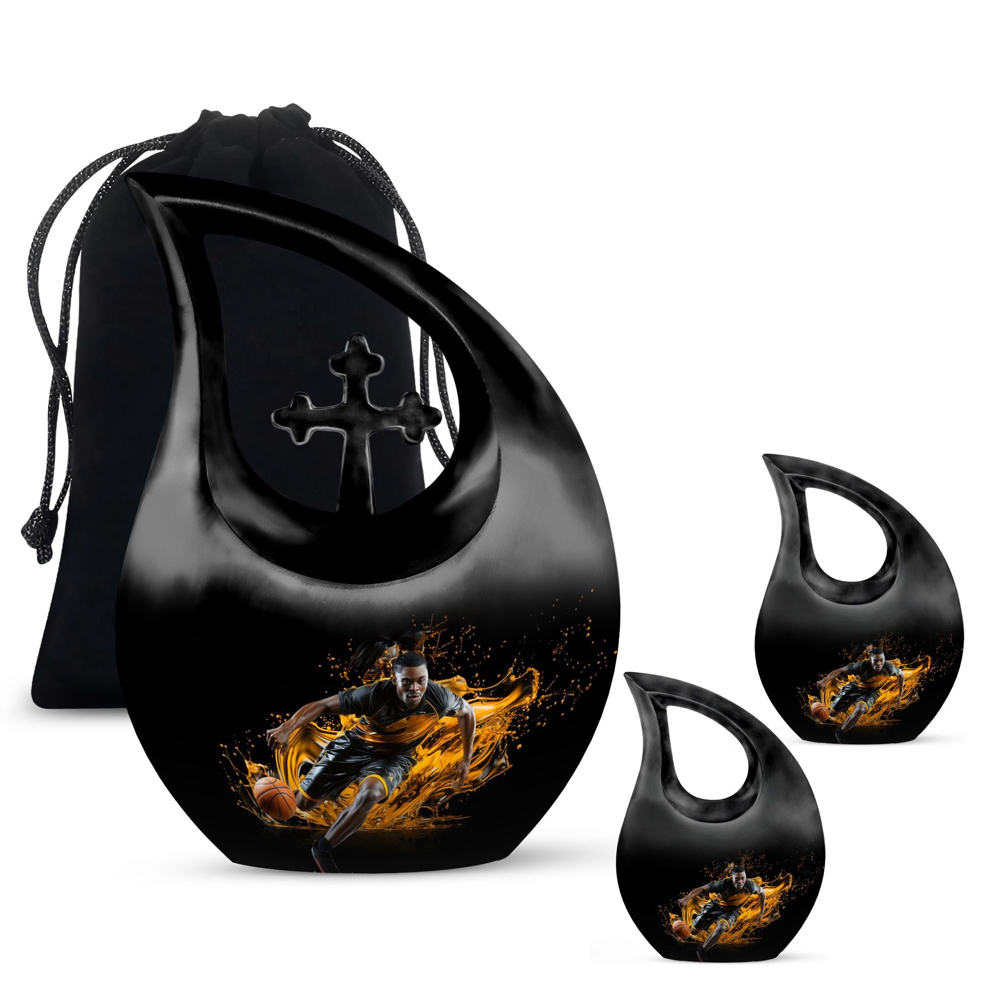 Presenting a uniquely-crafted Football Urn, capturing a blend of warmth, reverence, and a celebration of your loved one's passion for sport. This 'Together Again Companion Urn' is sized at 10 inches and constructed from premium aluminium, weighing 3.3 pounds. Its size can comfortably accommodate 200 cubic inches of ashes, making it ideal for their final resting place. One of the striking features of this memorial urn is the 'Cross Drop' URN DESIGN. Personalization options are also available, appealing to the desire to maintain a strong, memorable connection with those departed. The urn comes with a velvet pouch, adding an extra layer of protection and dignity to the containment of ashes. Your keyword search for 'Personalized Urns For Ashes', 'Urns For 2 Human Ashes', 'Ashes Container Small', and 'Engraved Urns For Human Ashes' comes to an end here. This Large Urn is a touching tribute to life and love, keeping cherished memories close to heart.