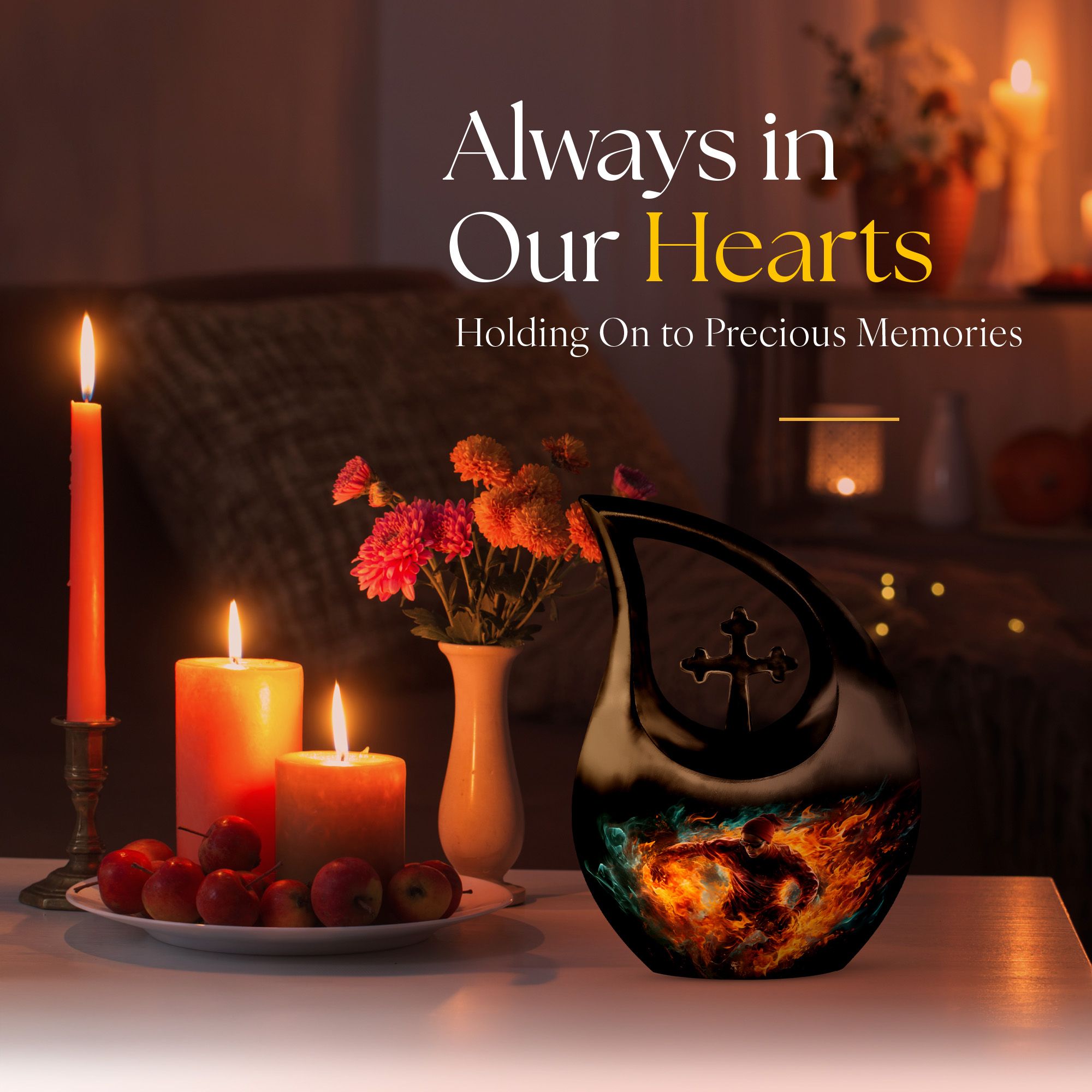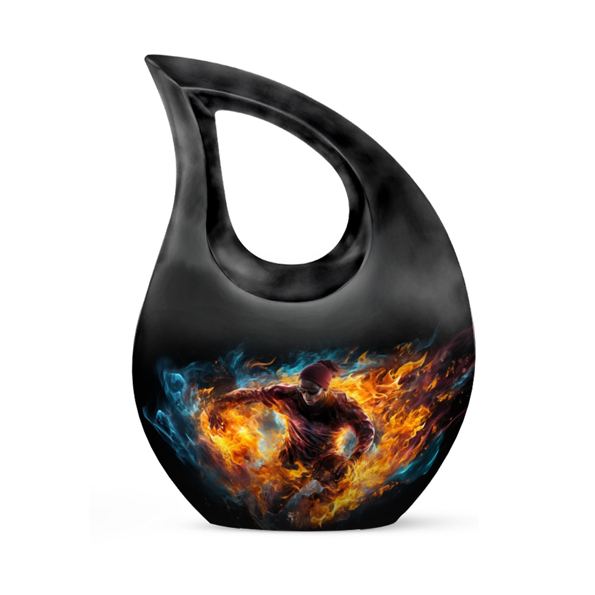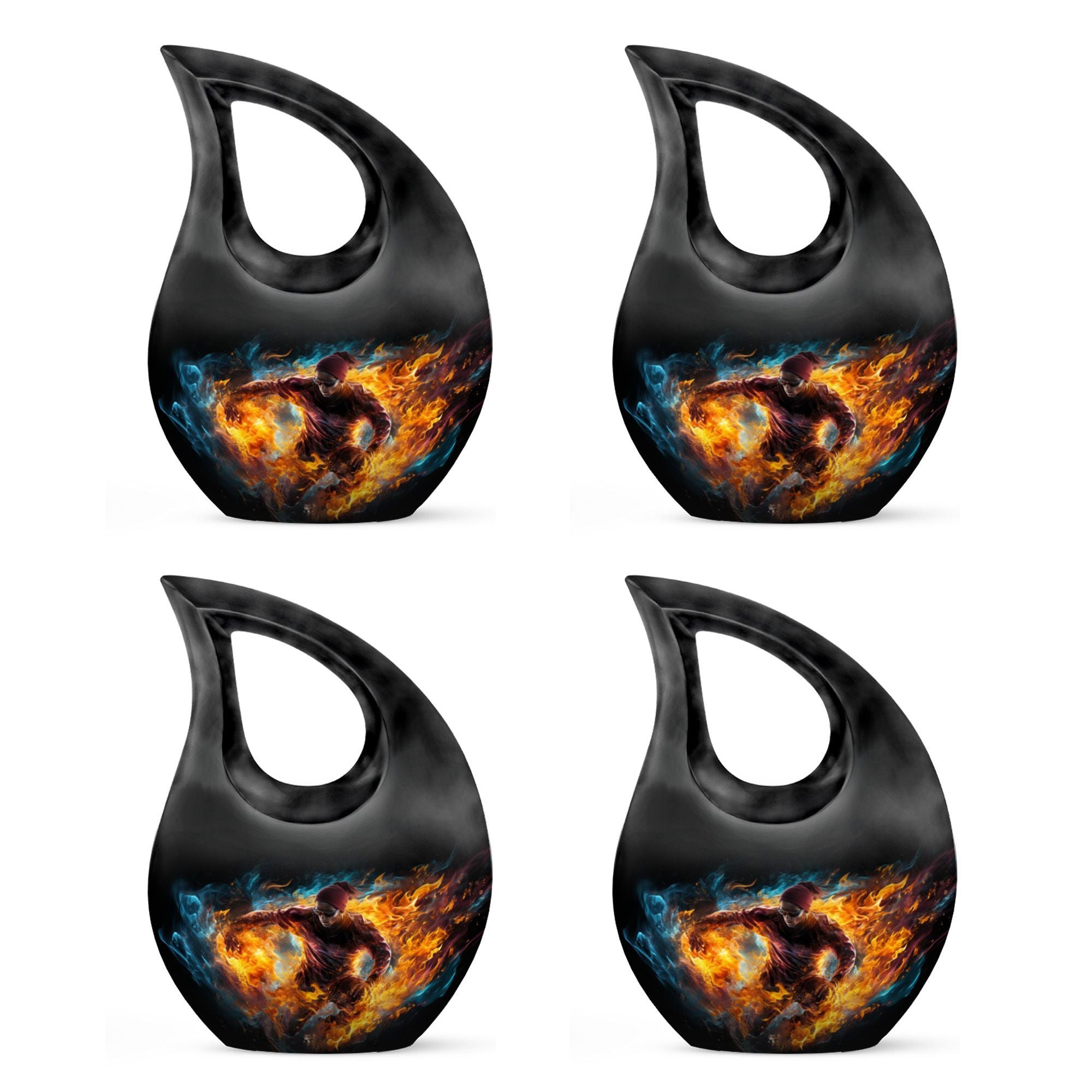 Honor the memory of your departed loved one with our Football Urn, an elegant and tasteful choice within the realm of memorial urns. Lovingly crafted from durable aluminium, this urn features a striking 'Cross Drop' theme, inspired by the shared passion and love for football. At 10 inches in height and with a capacity of 200 cubic inches, this large urn is perfect for holding the remains of someone cherished. It is lightweight yet sturdy, weighing in at just 3.3 pounds. We also offer personalization by engraving names on the urn, making it a truly unique and personal memorial piece. As part of our package contents, the urn comes encased in a delicate velvet pouch, ensuring the safe containment of ashes. Explore choices beyond regular Pet Urns or Personalized Urns, switch to our Nice Urns for Ashes; this urn combines function and fashion, bringing a unique twist to memorial ceremony supplies. Keywords: Beautiful Cremation urns, Personalized urns for human ashes.