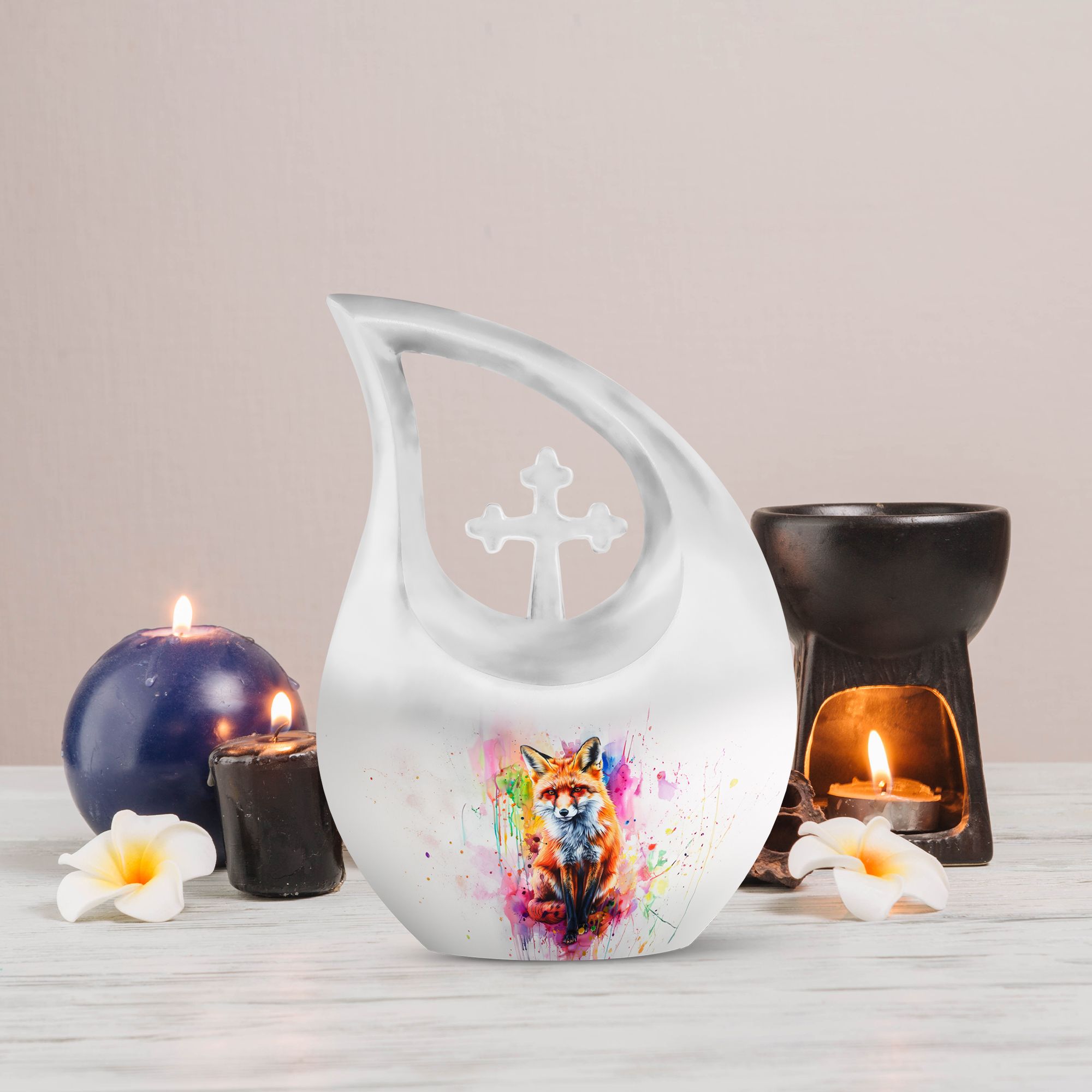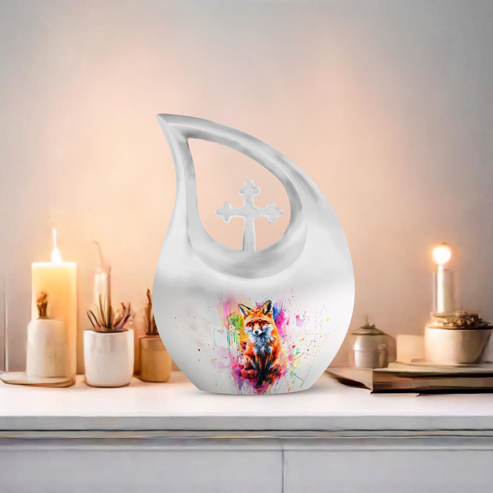 Honor the life of a beloved father or male figure with this Fox Memorial cremation urn, a symbol of loyalty, protection, and eternal rest. Its detailed artwork and vibrant finish create a dignified tribute to your loved one.