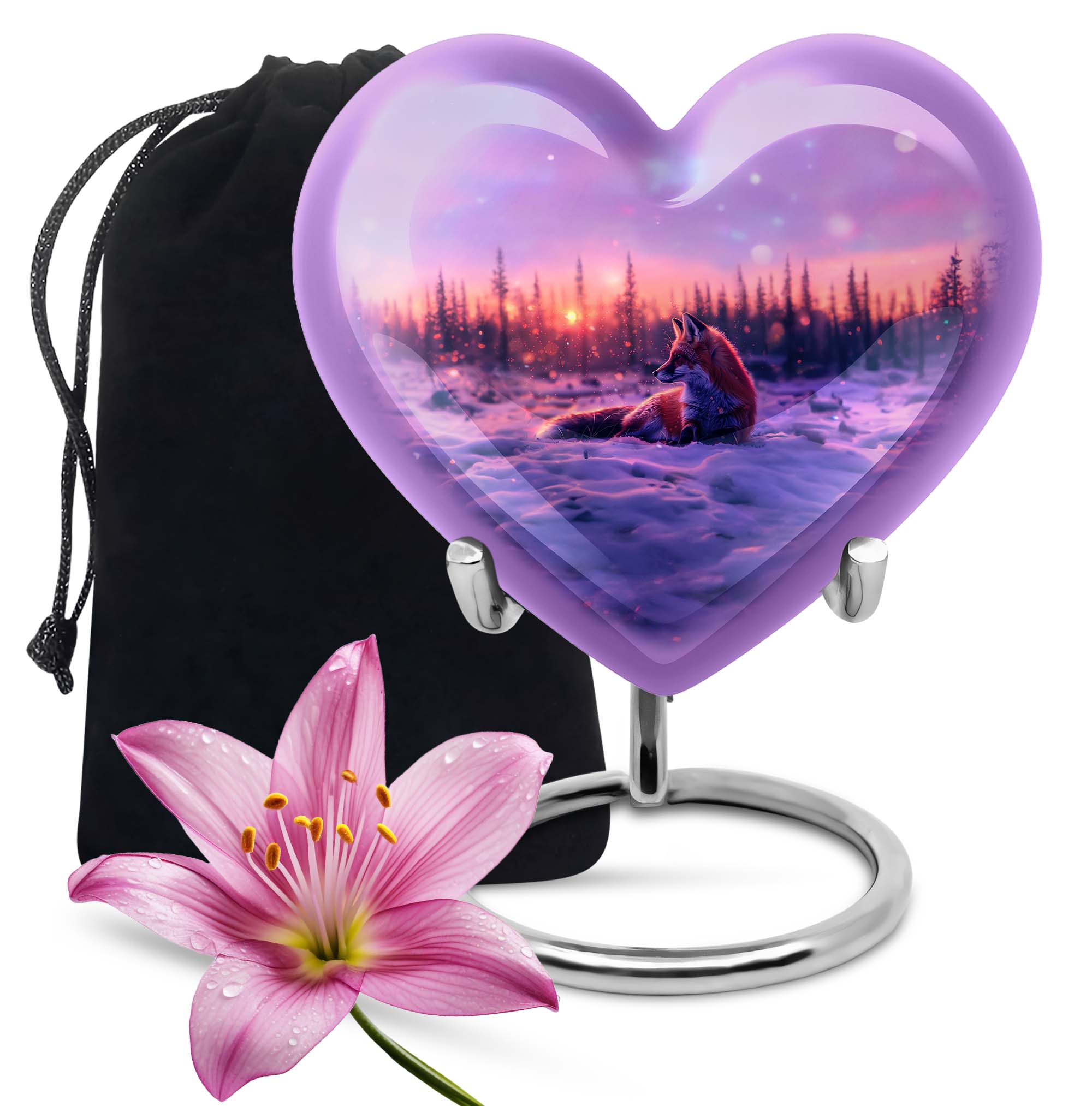 Designed for adults and seniors seeking the perfect tribute, our 10-inch heart urn, artfully crafted from durable aluminium, offers a comforting memorial to honour the departed. Adorned with a serene butterfly theme, this large urn serves as a gentle reminder of your loved one's spirit. Thanks to its 200 cubic inch capacity, this cremation urn can respectfully hold human ashes, making it a touching choice for memorial ceremonies. Furthermore, each purchase comes with a plush velvet pouch, providing secure containment of ashes. With the option to add a personalised touch with engraved names, this memorial urn becomes a unique, one-of-a-kind keepsake. Weighing in at 3.3 pounds and standing 10 inches tall, this cremation casket signifies the enduring love shared. Keywords like 'fox urn', 'cremation urn human ashes', 'Funeral urns for women', 'funeral urns ashes', 'metal', and 'cremation urns for men' can be used to find this product.