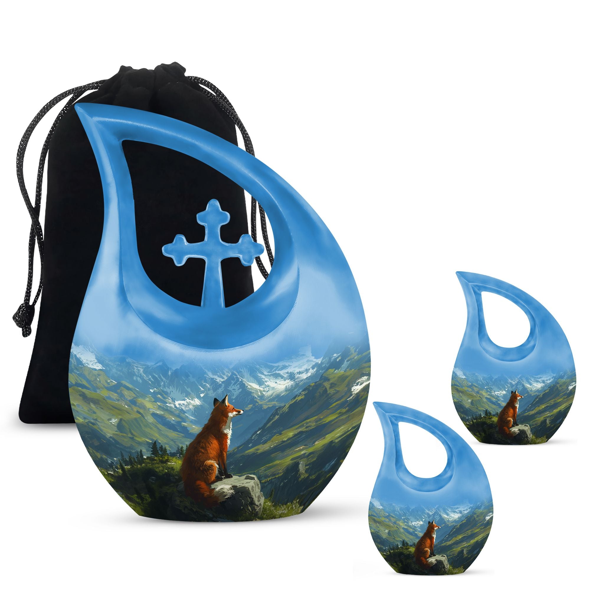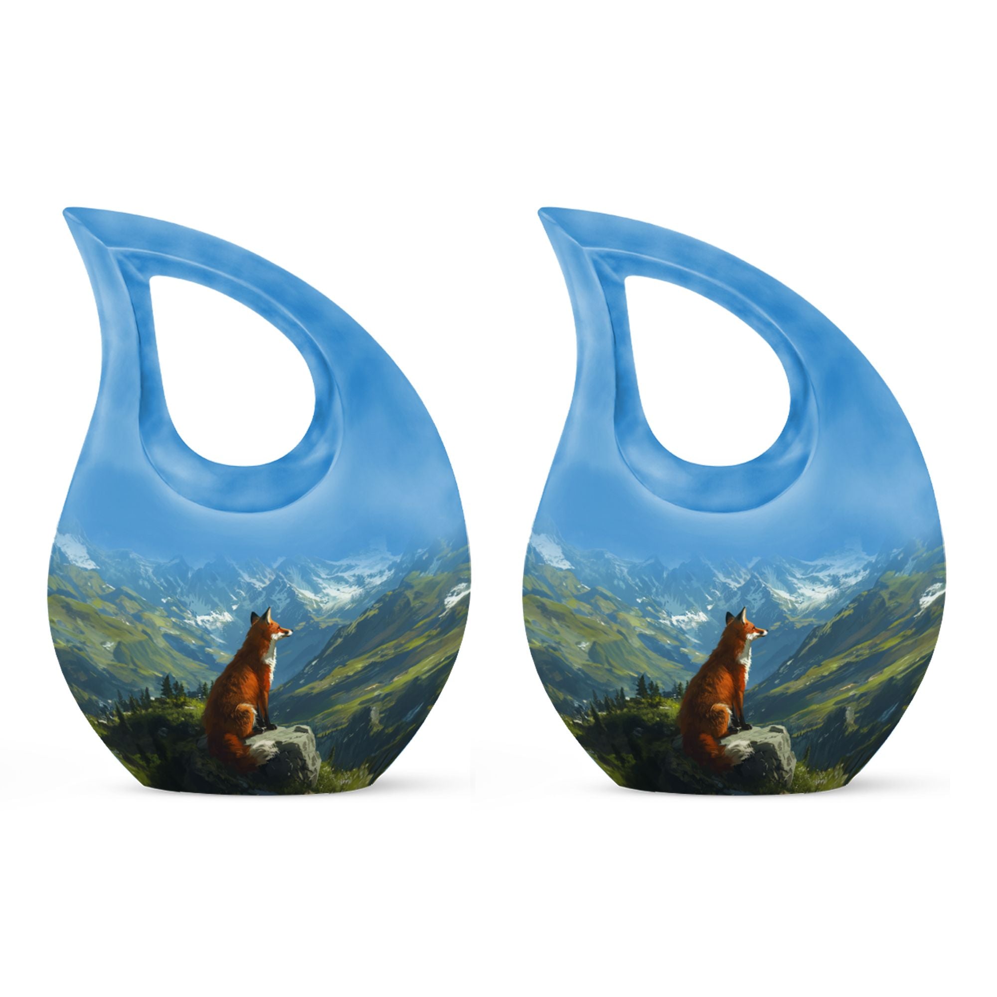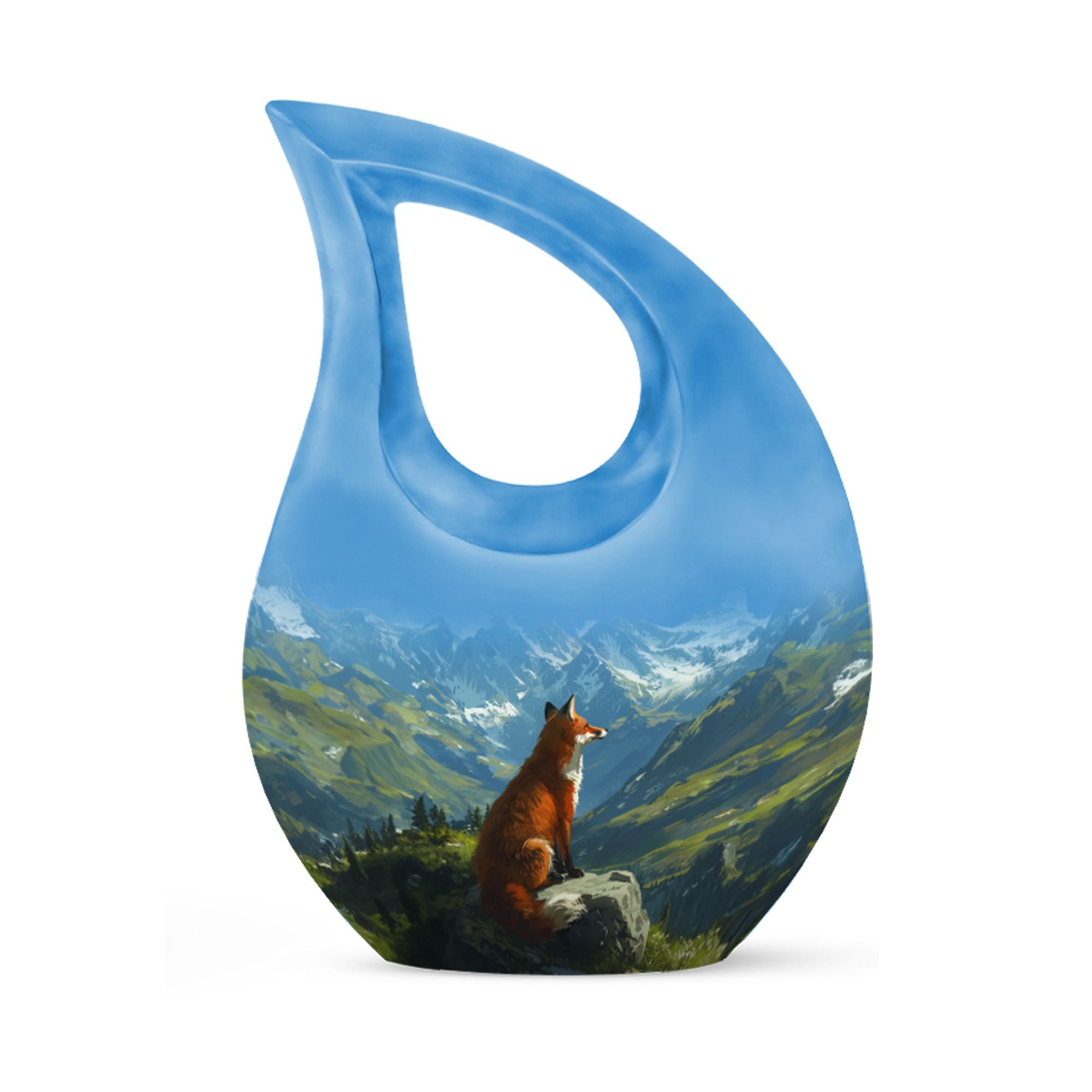Elevate your tribute to your departed loved ones with this 10-inch Fox Urn. This large cremation urn, meticulously crafted from high-grade Aluminium, stands at an expressive height of 10 inches and can hold up to 200 cubic inches of remains, ideal for human ashes. Appealing to the eye and touch, the Fox themed urn sports a compelling Cross Drop pattern, a design metaphor for eternal love and timeless memories. With its accompanying velvet pouch, it securely guards your loved one's ashes, ensuring they continue to be a part of your life. What's more, this urn offers the option of personalization with engraved names, giving it a unique, thoughtfully-tailored touch. Weighing a substantial 3.3 pounds, this urn is durable and designed to last. Ideal for memorial ceremonies, this product is an affordable choice among burial urns. So take solace in this beautiful, lasting vessel, uniquely designed for your journey of remembrance.