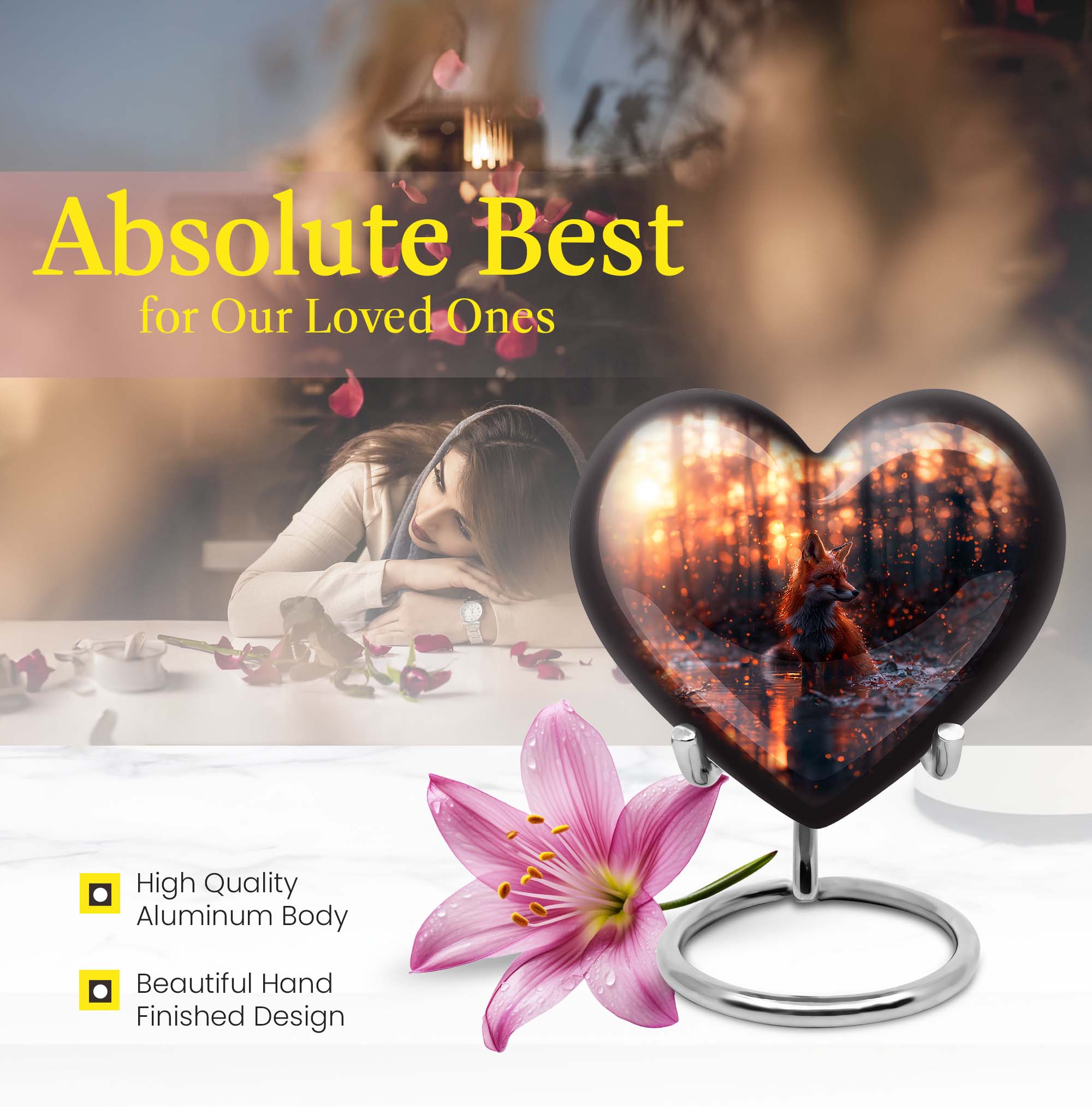 Treasure cherished memories and honour departed loved ones in a profound yet poignant way with our 10-inch Heart Urn, arguably the identifier of the 'cremation urn' category. Legendary for evoking an intimate connection with the departed, this large urn is crafted from high-quality aluminium to ensure durability. Tipping the scales at a sturdy 3.3 pounds, its subtle heft provides an enduring reminder of the presence you miss. Its abundant capacity of 200 cubic inches aptly caters to a vast spectrum, from fox urn to funeral urns for human ashes. This unique urn is adorned with a beautiful butterfly theme, symbolizing transformation and the soul's journey towards peace. As a special touch, you have the option of engraving names on it, thus adding a deeply personal significance to your memorial tribute. The packaging also offers a velvet pouch for discreet and respectful containment of ashes. Our broad range of keywords includes phrases like 'Memorial urns for ashes', 'Timeless Stone Urns for Lasting Memories' and 'shaped urn', which can aid prospective buyers in their search. Note that remembrance need not be somber; it can also resound with the warmth of once-shared joy, kept alive in a heartfelt embrace with our Heart Urn.