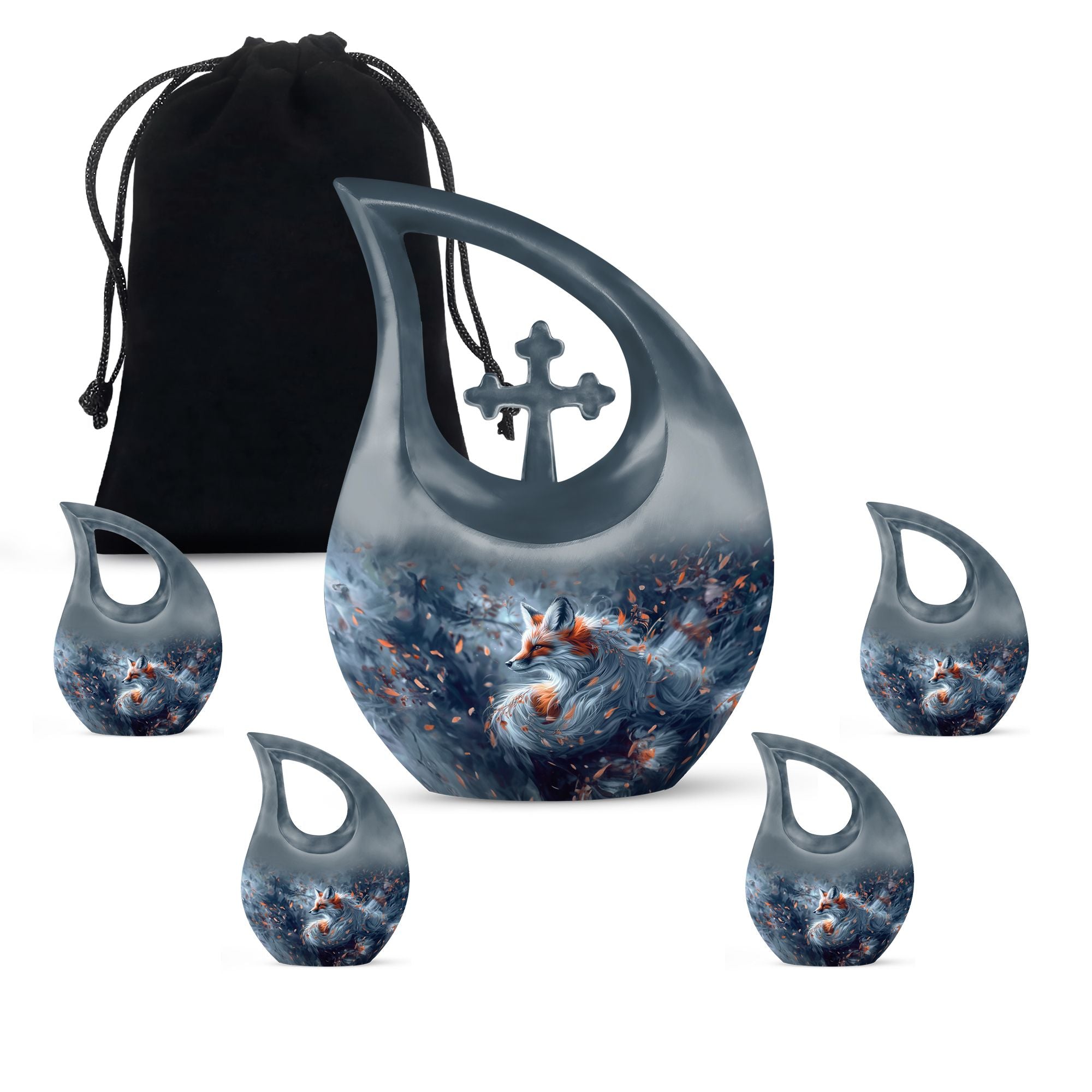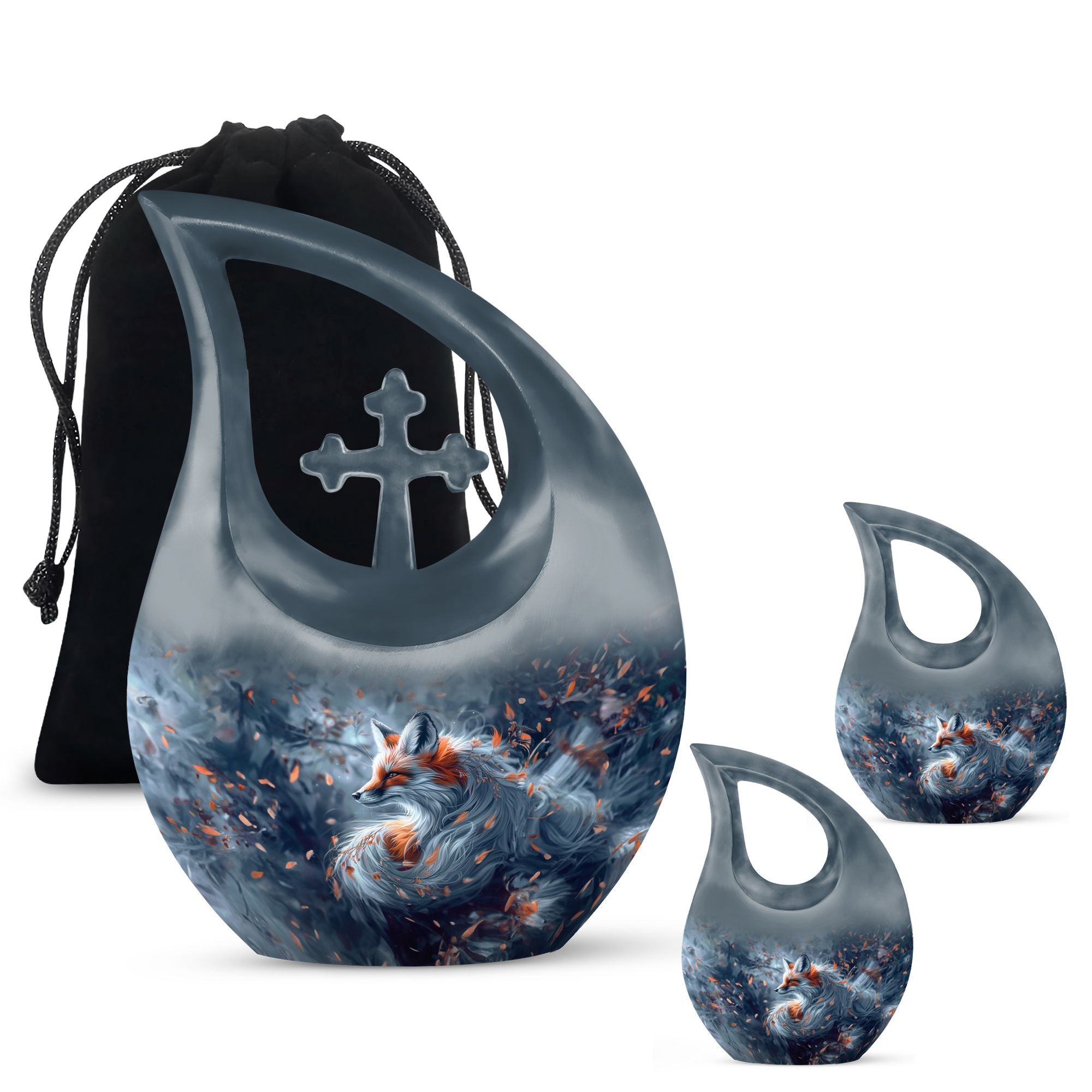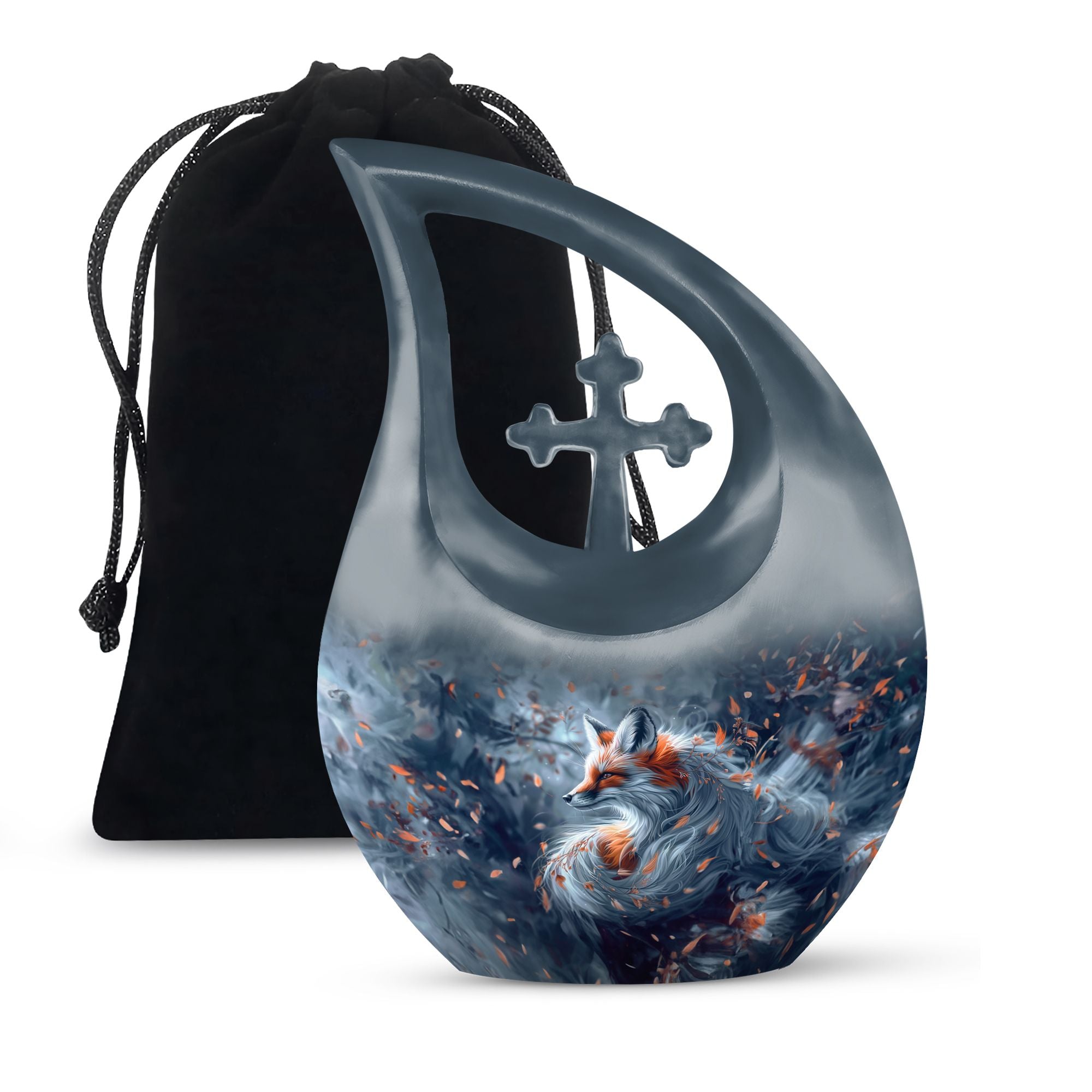 Experience the peace of mind that comes with our striking Large Aluminium Fox Urn. This urn for human ashes combines meticulous craftsmanship with a cross drop theme, presenting a touching tribute to your beloved one. An abbreviation of 10 inches in height and 200 cubic inches capacity, it comfortably houses the remnants of an adult human. This fox urn is feather light at 3.3 pounds, making it easily transportable. One unique factor of this memorial urn is the inclusive velvet pouch, providing an added layer of protection for the stored ashes. For a more personal touch, it can be etched with the name of the deceased, allowing for a more specific honouring. This product is particularly suited for those seeking pink urns for human ashes, urn for mom, butterfly urns for ashes or angel urn. Let this fox urn serve as a dignified final resting place.