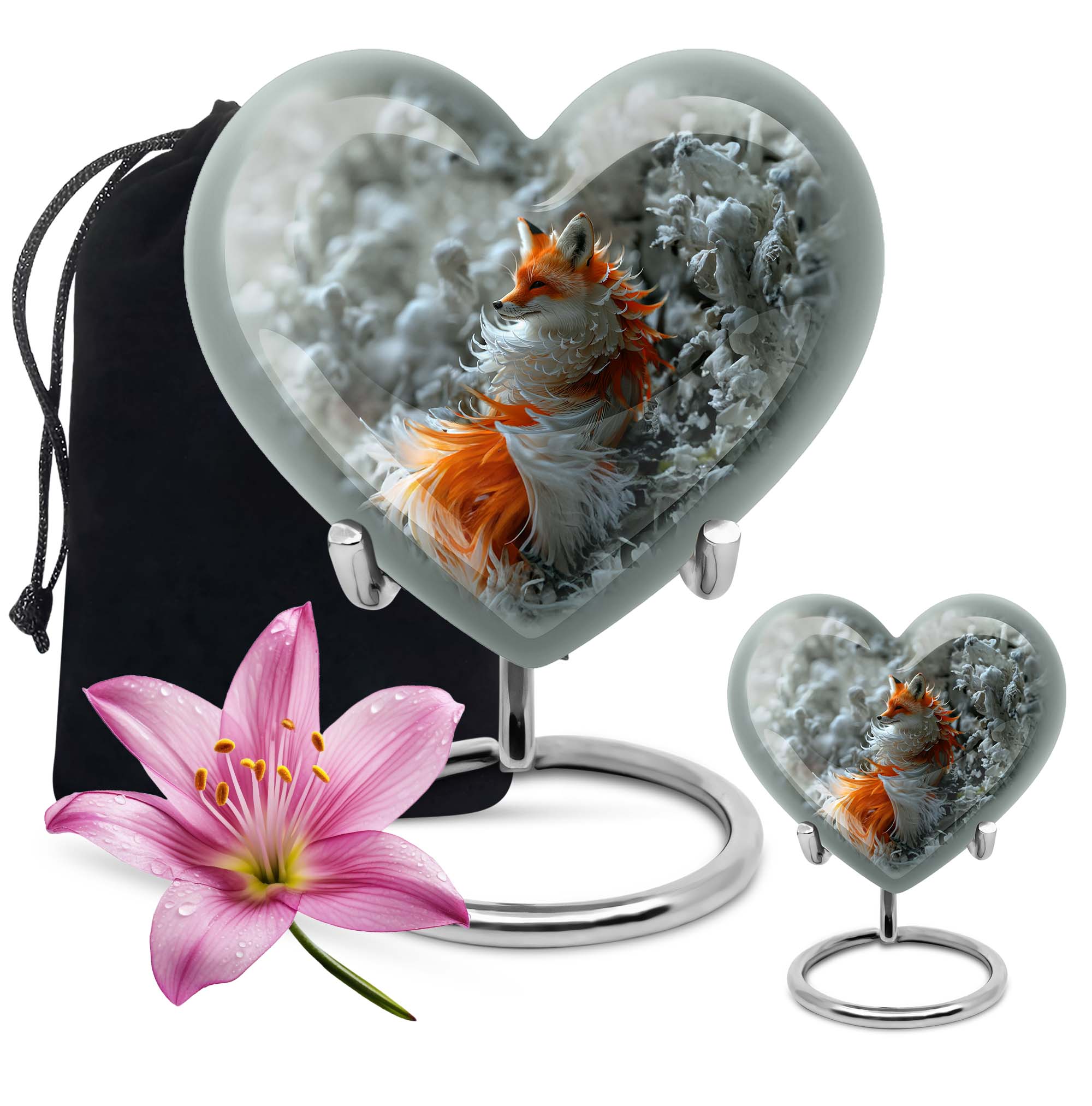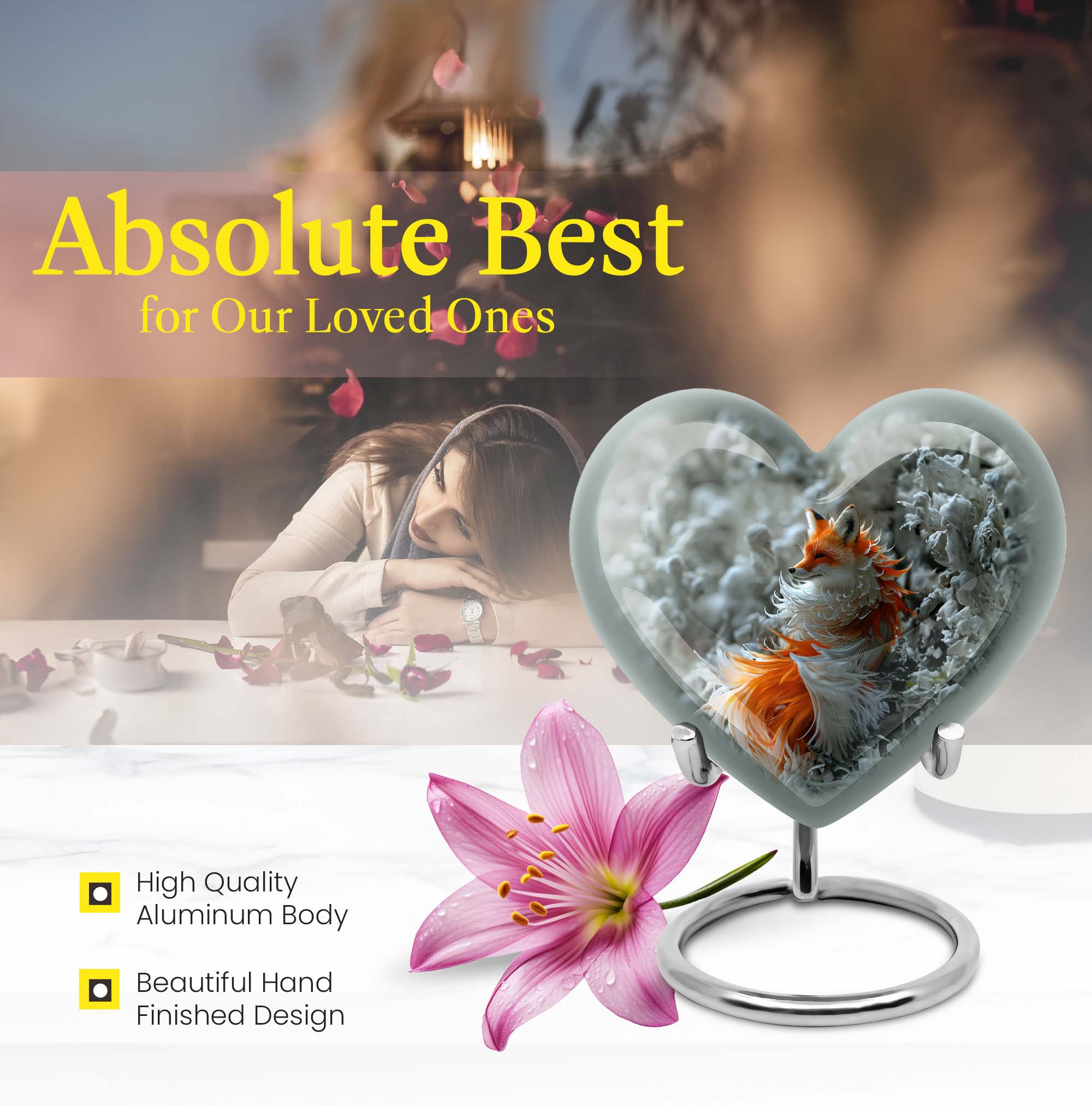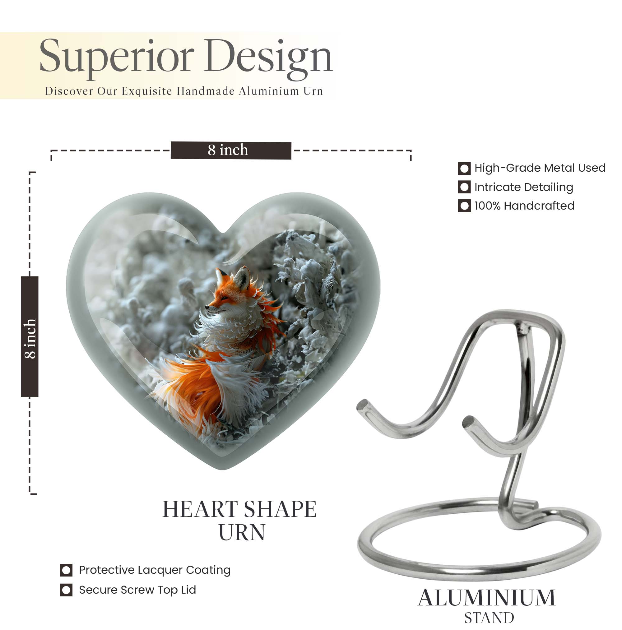 Elevate the sentimentality of your remembrance traditions with our 10-inch Butterfly Heart Urn. Crafted from high-quality aluminium, this large cremation funeral urn weighs a substantial 3.3 pounds and stands tall at 10 inches. With a generous capacity of 200 cubic inches, it can securely hold the ashes of an adult male. Every aspect of this urn from the fusion of primary keywords 'Fox Urn' and secondary keywords 'human urn ashes, urns for ashes, cremation urns for human ashes adult male' is designed to embody respect, love, and honor. The package accompanies a luxurious velvet pouch, making it perfect for containing the cherished ashes. Adding a personal touch, this urn provides an option to engrave names on it. Engaging and devoid of cliched phrases, this urn distinctly stands ahead in the realm of memorial urns. Note: The urn design is not emphasized in this description.