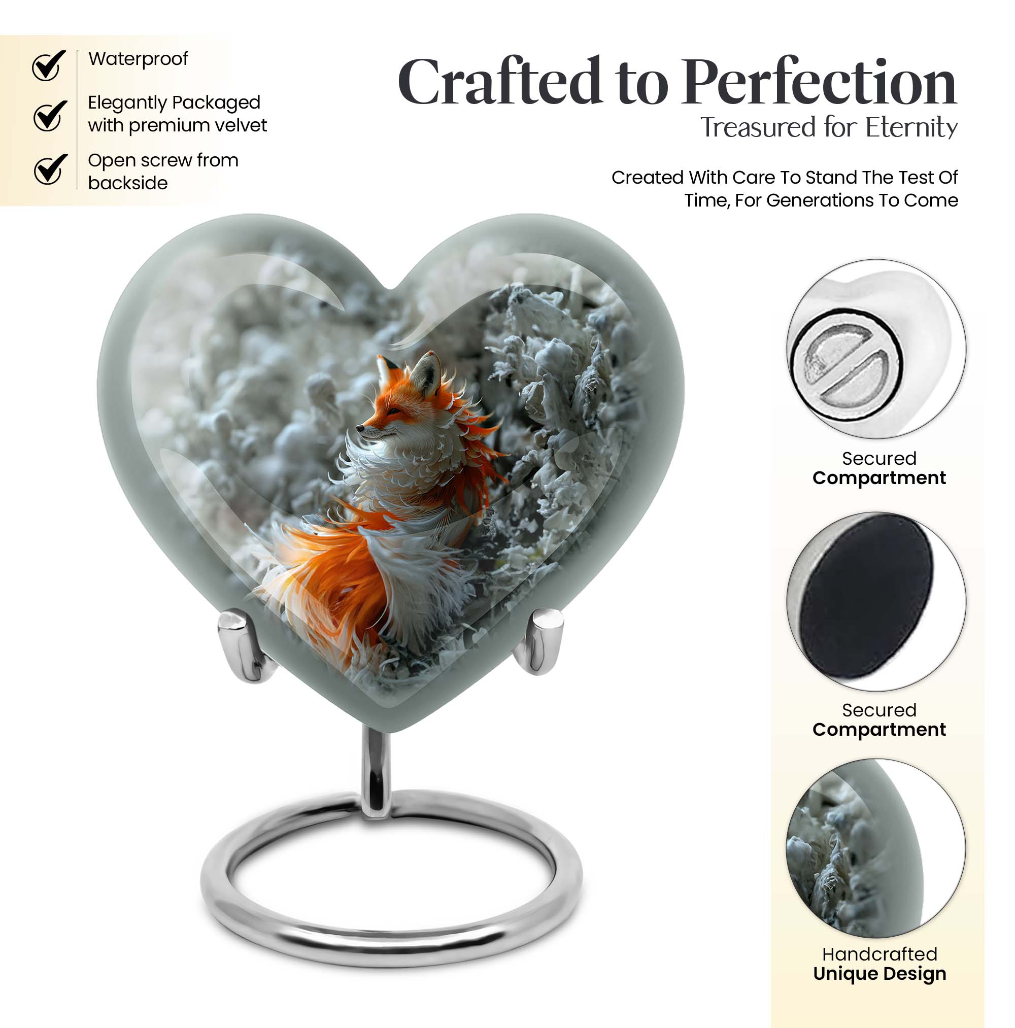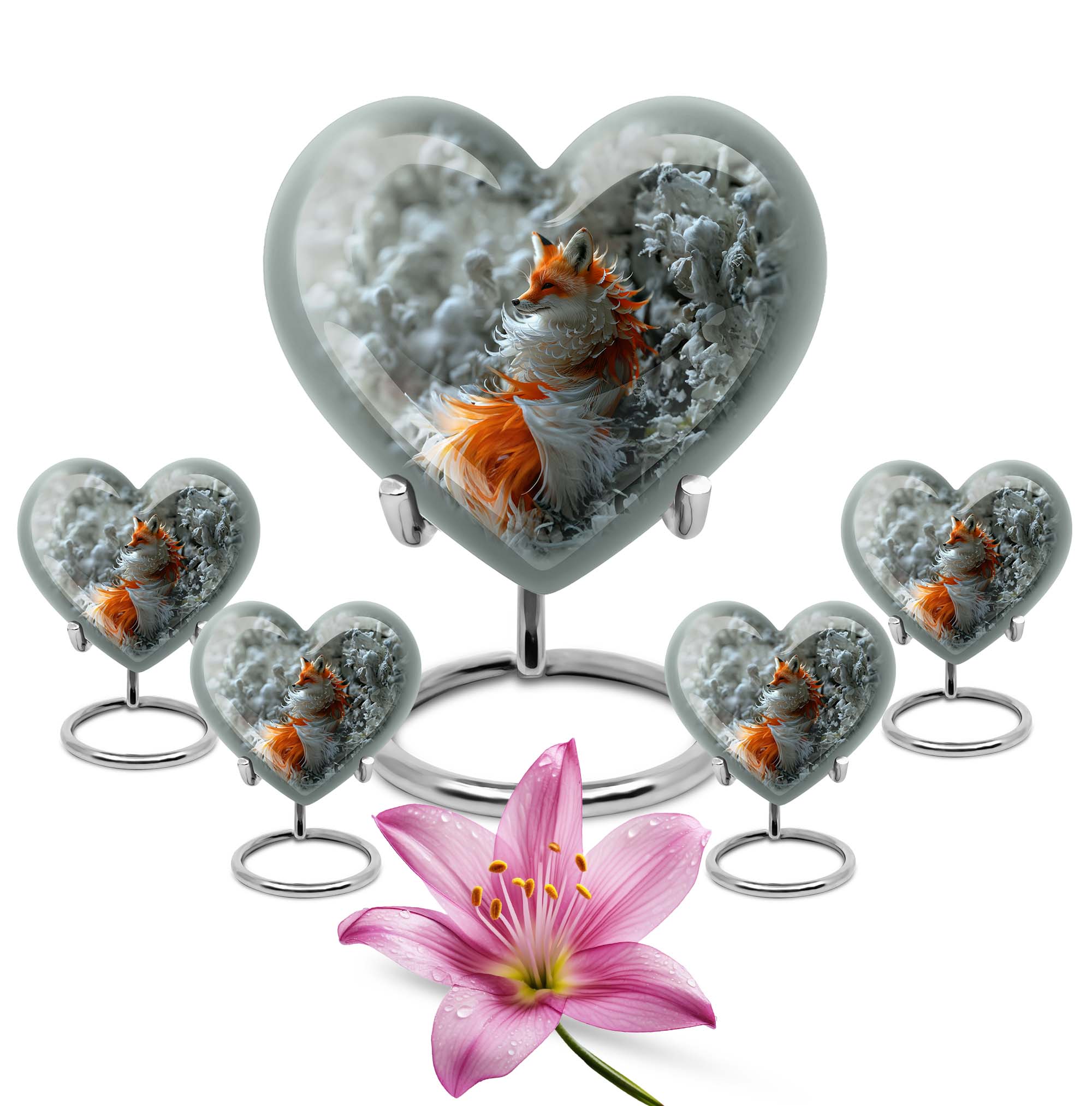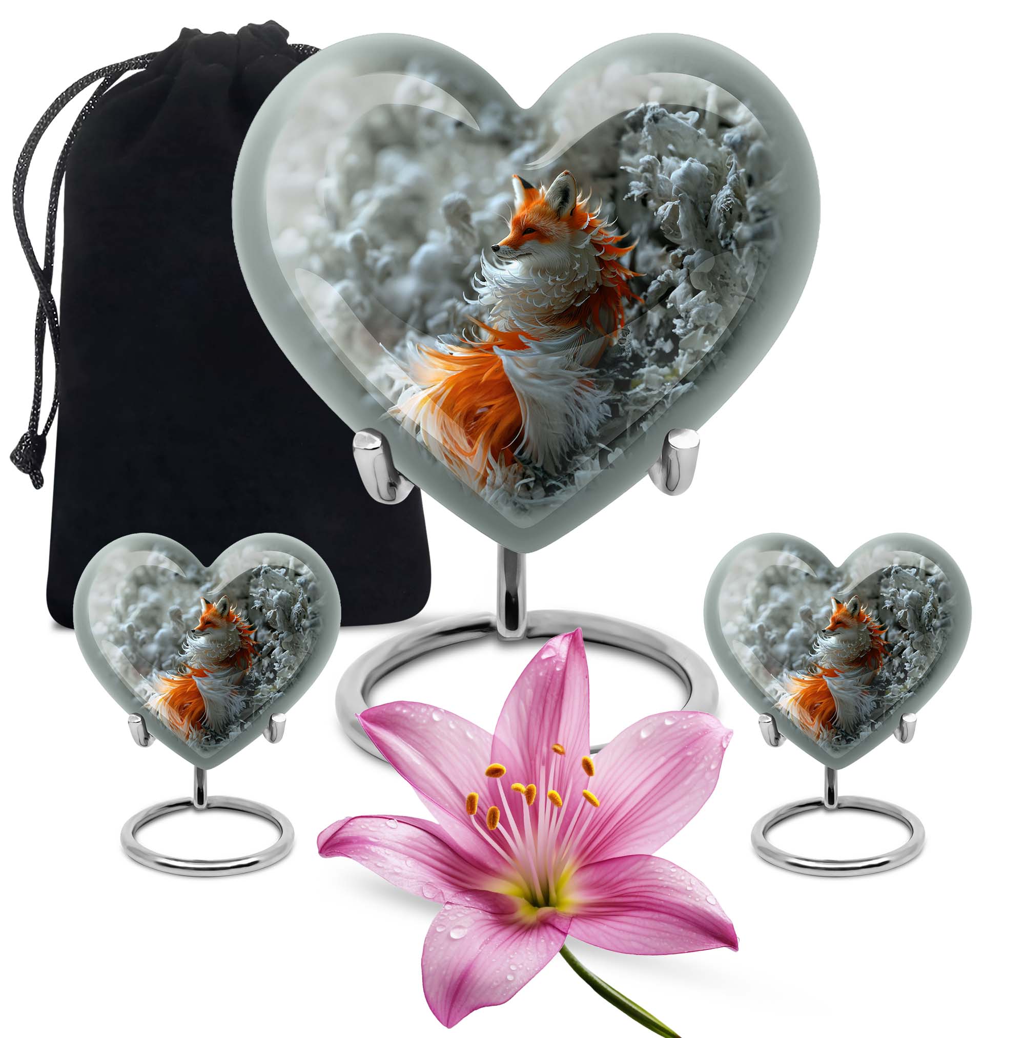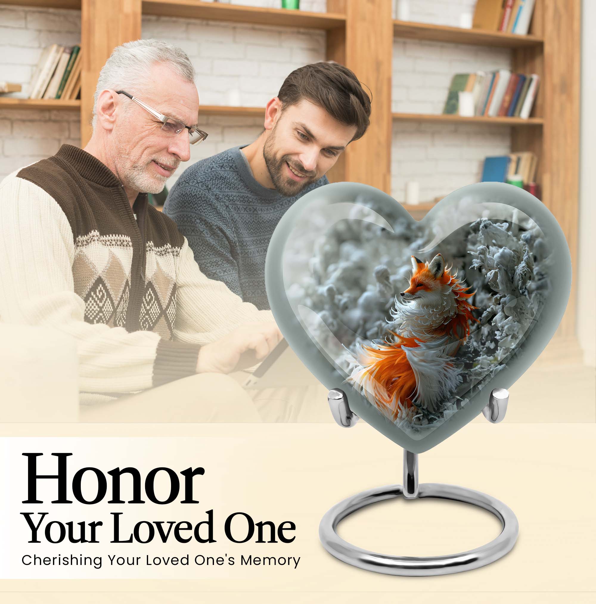 Elevate the sentimentality of your remembrance traditions with our 10-inch Butterfly Heart Urn. Crafted from high-quality aluminium, this large cremation funeral urn weighs a substantial 3.3 pounds and stands tall at 10 inches. With a generous capacity of 200 cubic inches, it can securely hold the ashes of an adult male. Every aspect of this urn from the fusion of primary keywords 'Fox Urn' and secondary keywords 'human urn ashes, urns for ashes, cremation urns for human ashes adult male' is designed to embody respect, love, and honor. The package accompanies a luxurious velvet pouch, making it perfect for containing the cherished ashes. Adding a personal touch, this urn provides an option to engrave names on it. Engaging and devoid of cliched phrases, this urn distinctly stands ahead in the realm of memorial urns. Note: The urn design is not emphasized in this description.