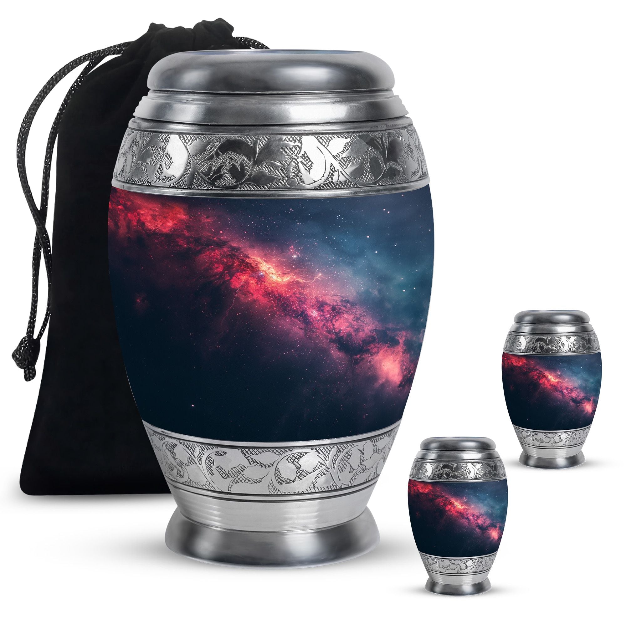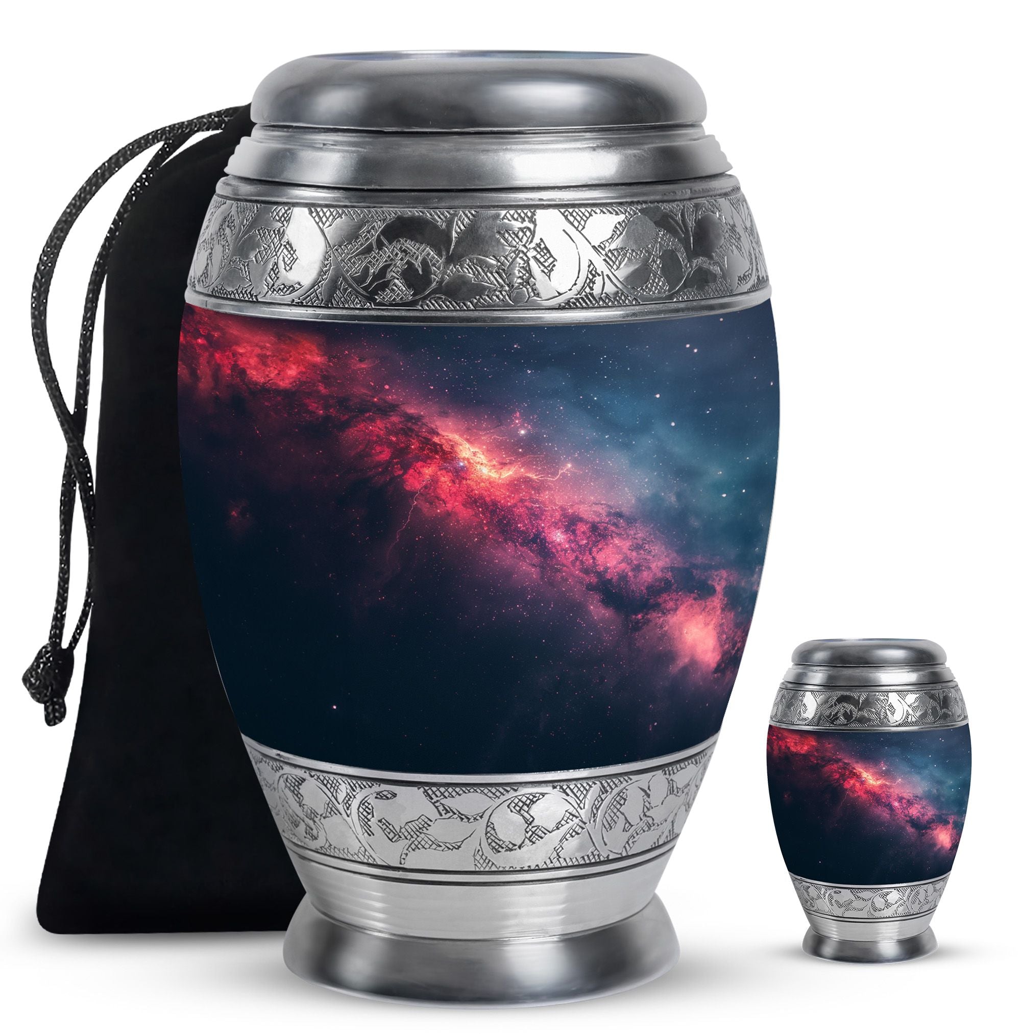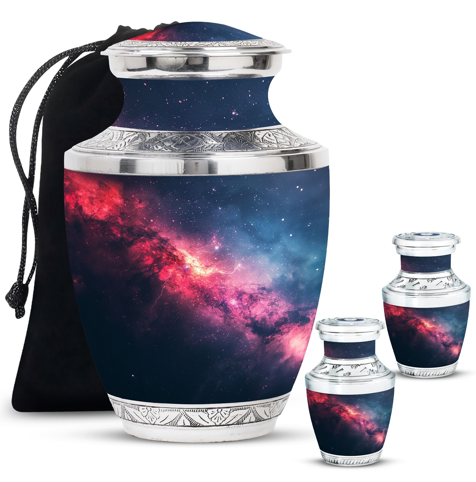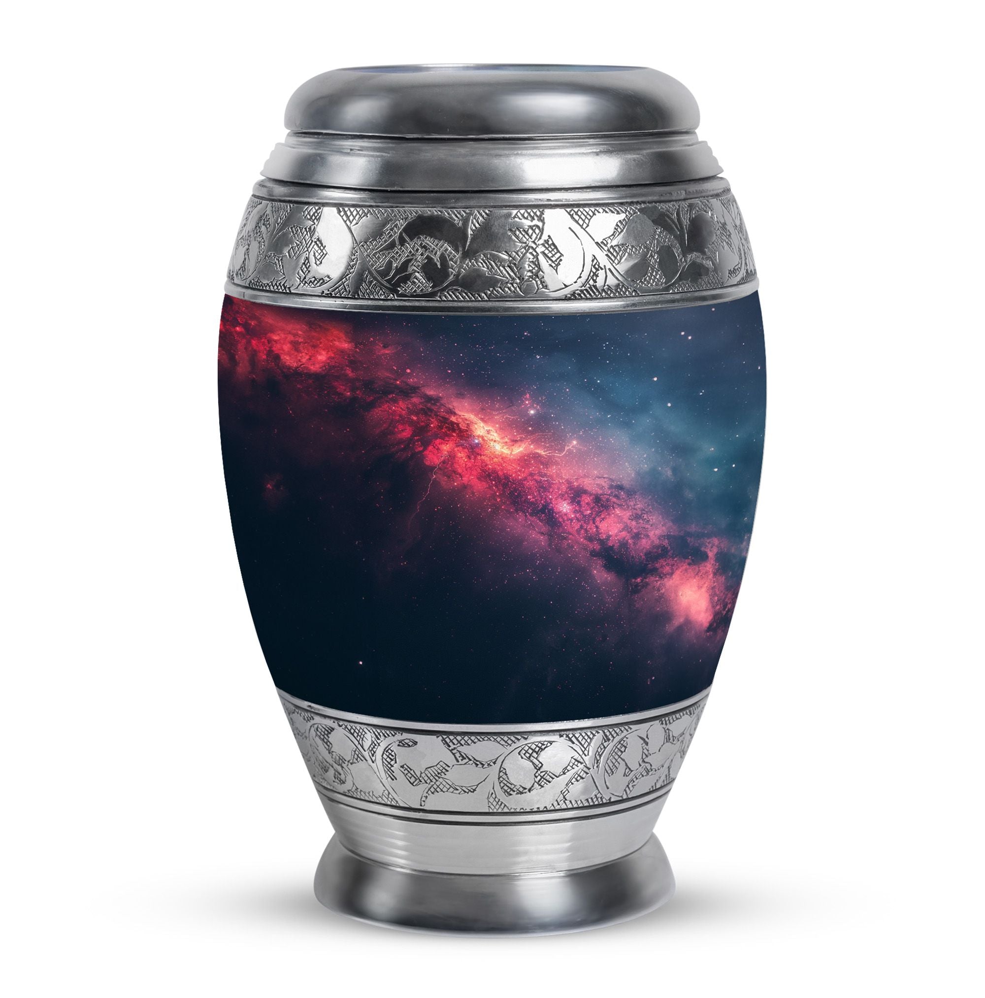 Expertly crafted from premium aluminum, this piece is not just durable but also striking in its cosmic-inspired design. The deep galaxy pattern reflects the vastness of love and memory, making it an ideal choice for both urn ashes women and men. Its smooth finish and secure lid ensure ashes are kept safe. Whether you are searching for small urns women, a women adult urn, or beautiful urns women, this versatile memorial meets every need with compassion and grace.