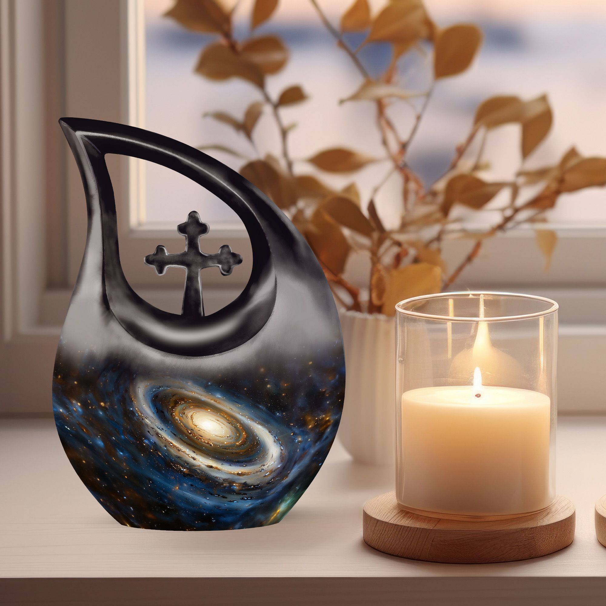 A symbol of infinite love and everlasting presence, this galaxy urn brings serenity, meaning, and cosmic beauty to your remembrance space.