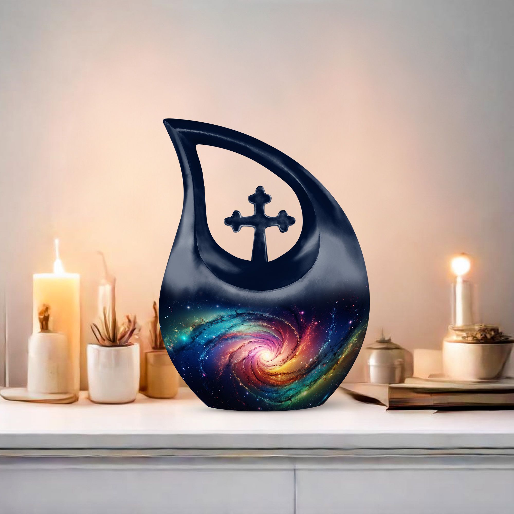 The Colorful Galactic Swirl Themed Urn brings cosmic beauty and emotional warmth together, offering a dignified place of rest for your loved one. Its radiant galaxy-inspired artwork symbolizes eternity, making it a meaningful choice for families seeking adult urns for human ashes men or funeral urns for women with universal appeal.