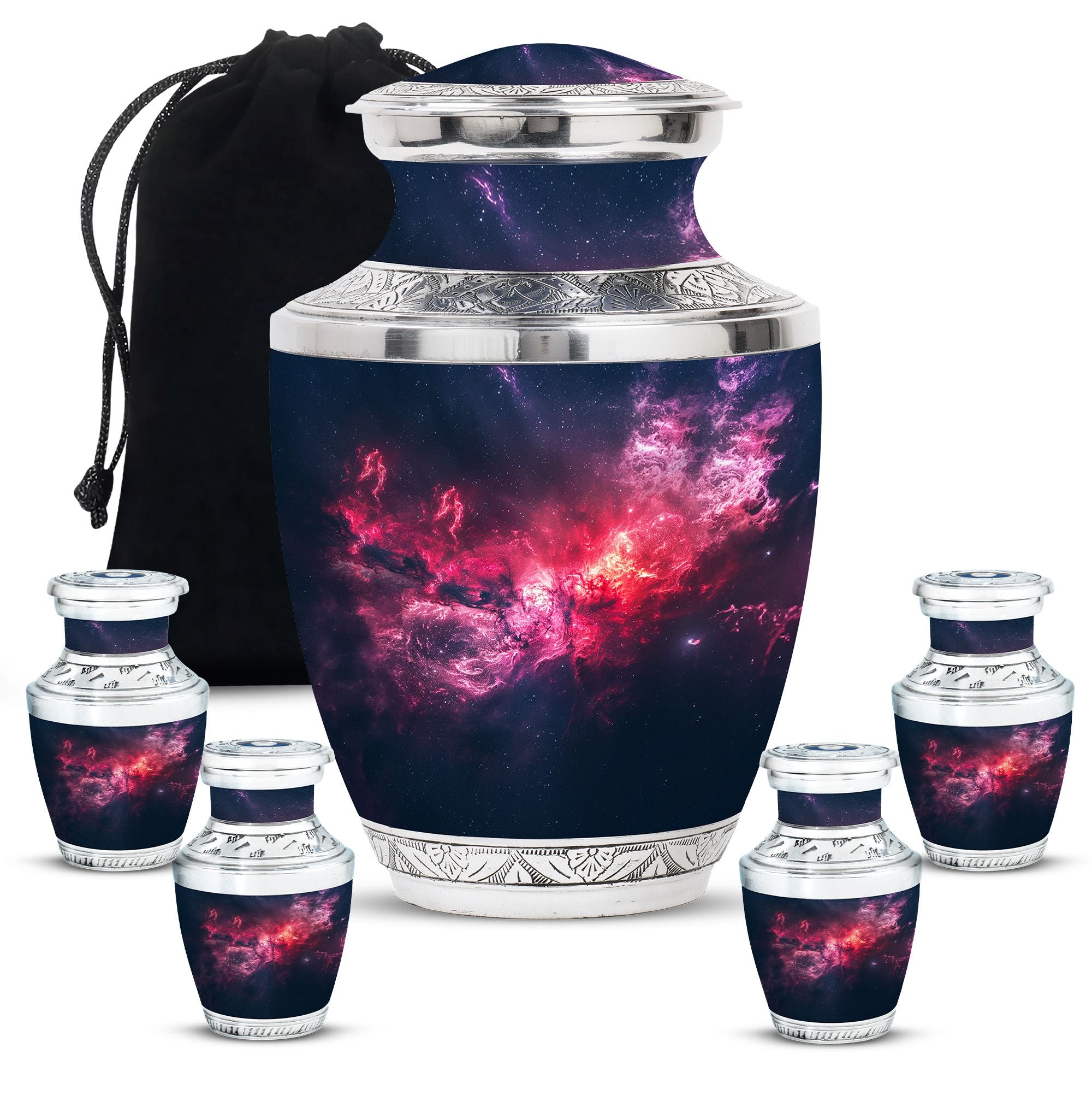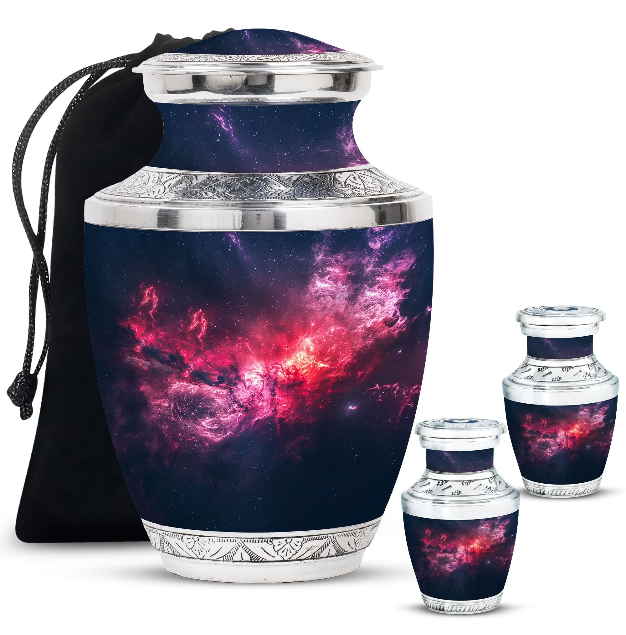 Crafted from high-quality aluminum, this funeral cremation urn is both durable and timeless. The stunning galaxy-inspired design offers a celestial beauty, symbolizing eternity and peace. Its generous capacity makes it ideal for funeral urns for ashes adult, while matching small funeral urns can also be chosen for keepsake sharing. Whether you need a cremation urns large & small combo or a single funeral adult urn, this piece ensures lasting remembrance.