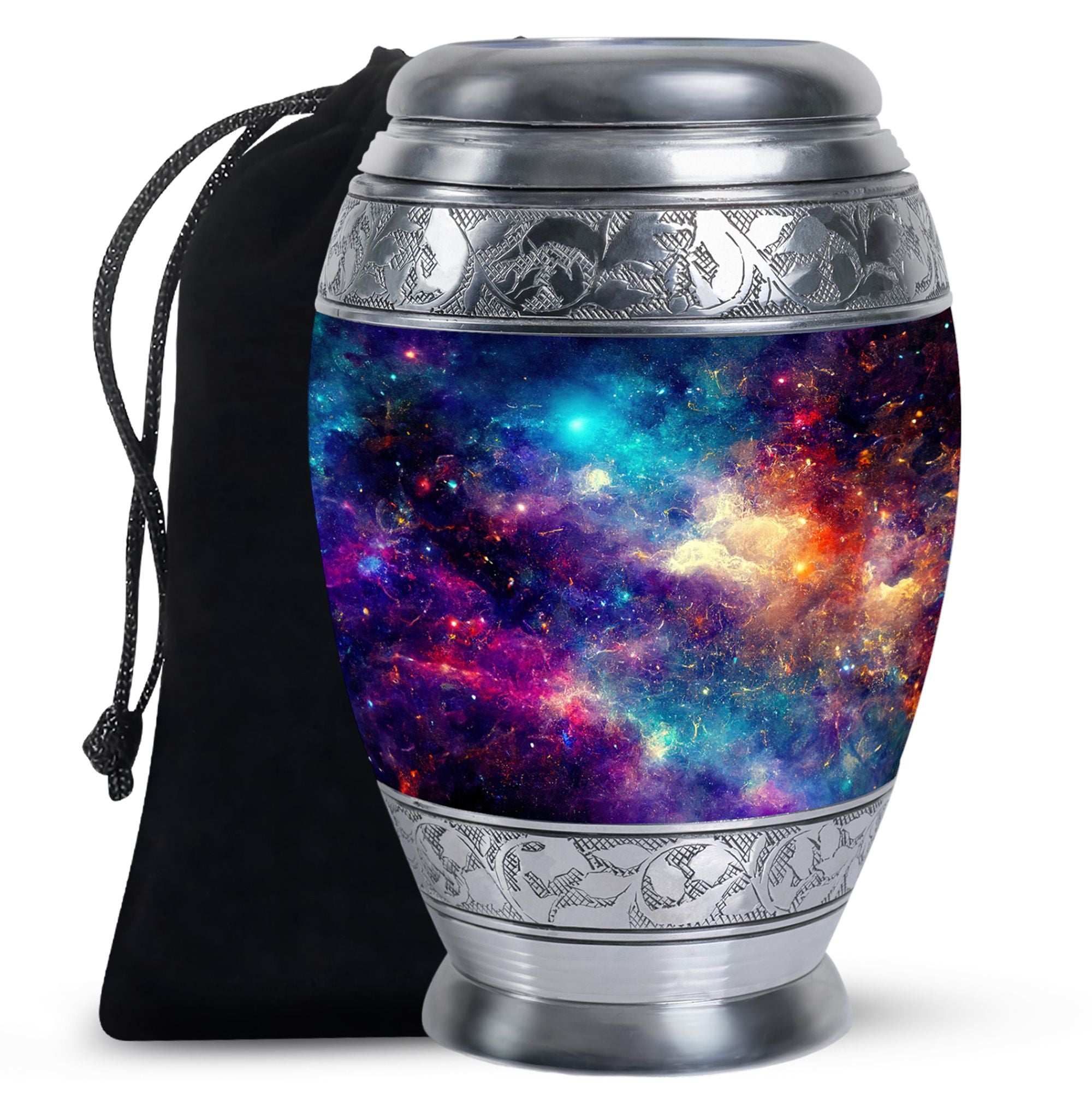 The secure screw-top lid ensures lasting protection, while the cosmic theme brings peace, hope, and comfort. Whether used for display, burial, or as a burial urn for ashes for women, this memorial honors life with dignity and beauty.