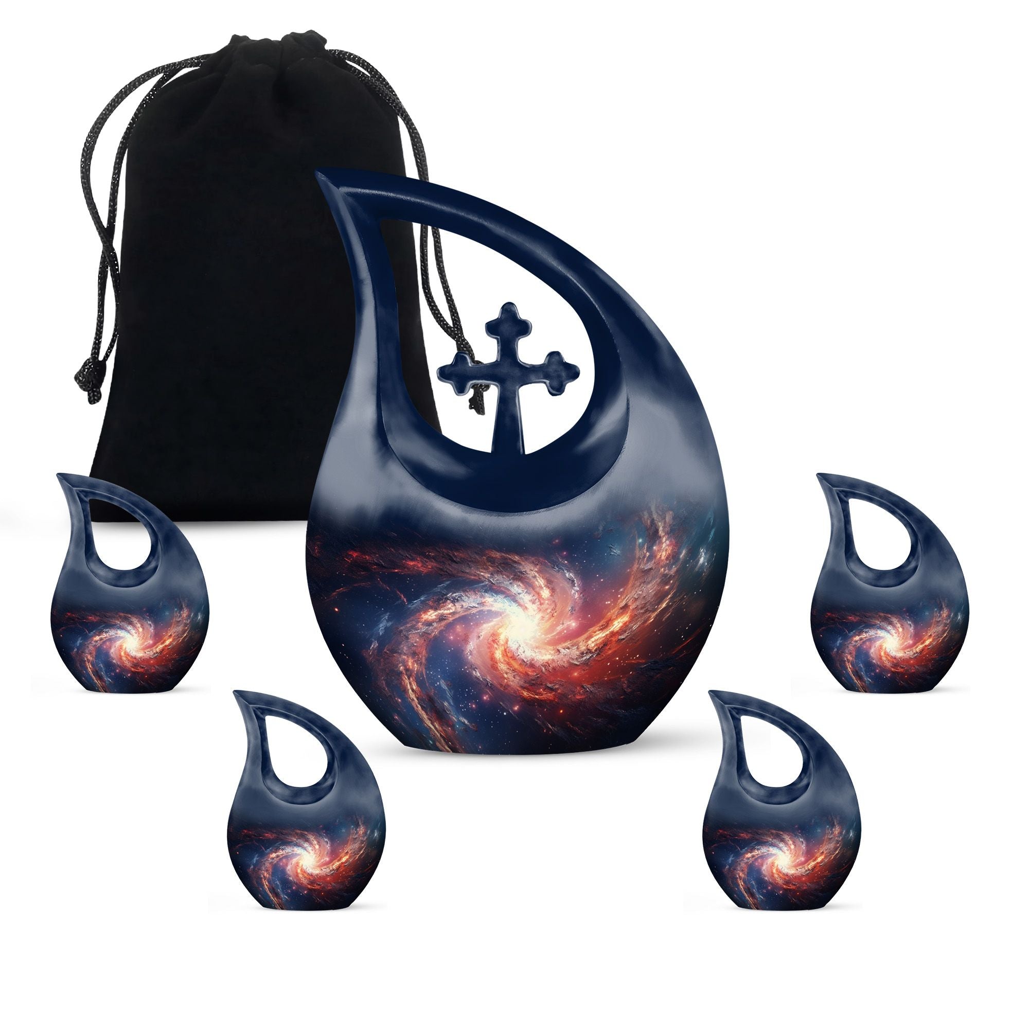 The Cosmic Explosion Urn for Ashes captures the breathtaking beauty of the universe, symbolizing eternity, connection, and the radiant energy of a cherished life. This galaxy swirl design offers families a comforting and dignified way to honor a loved one, whether seeking human urns for ashes adult female or a meaningful tribute for a father, such as urns for adult male dad.
