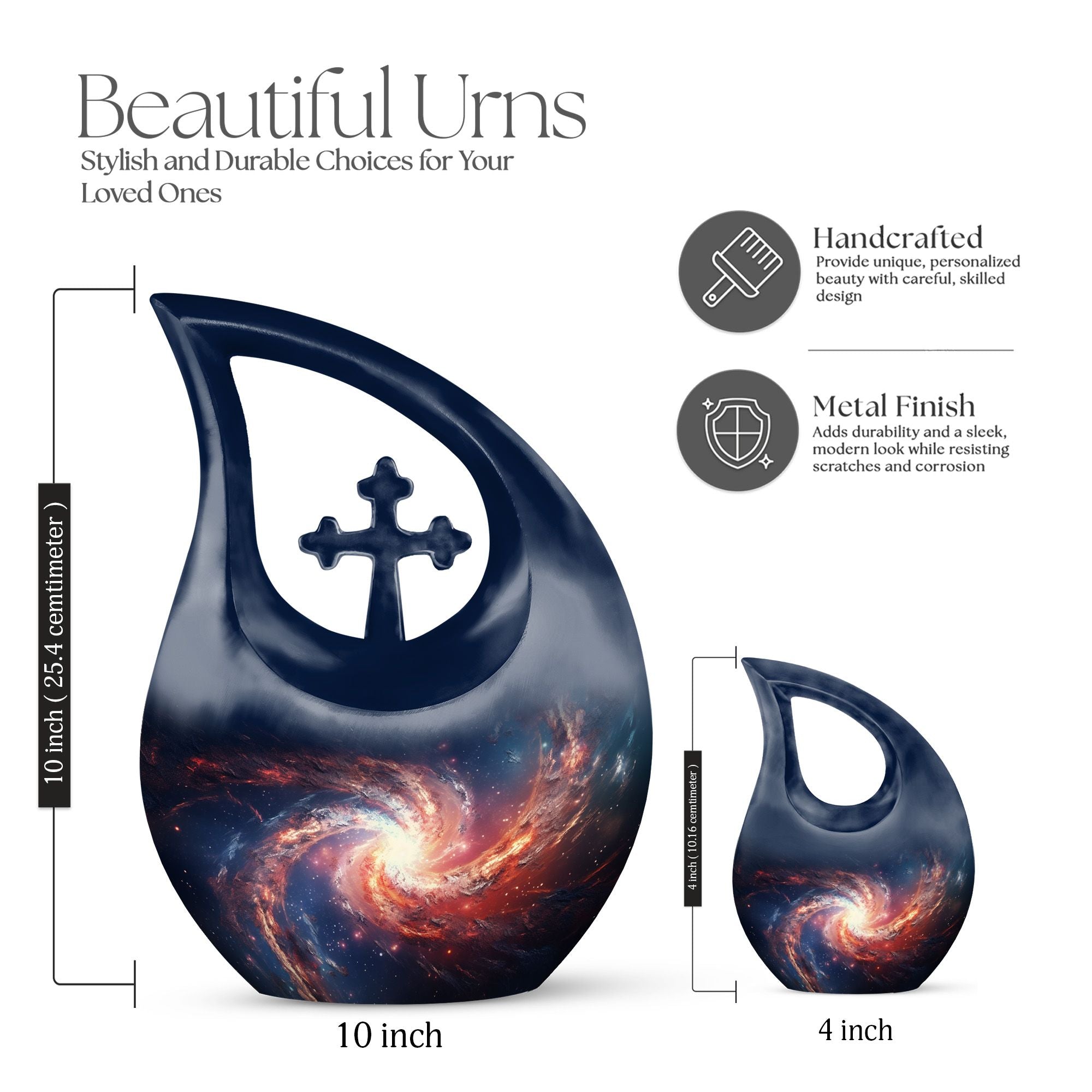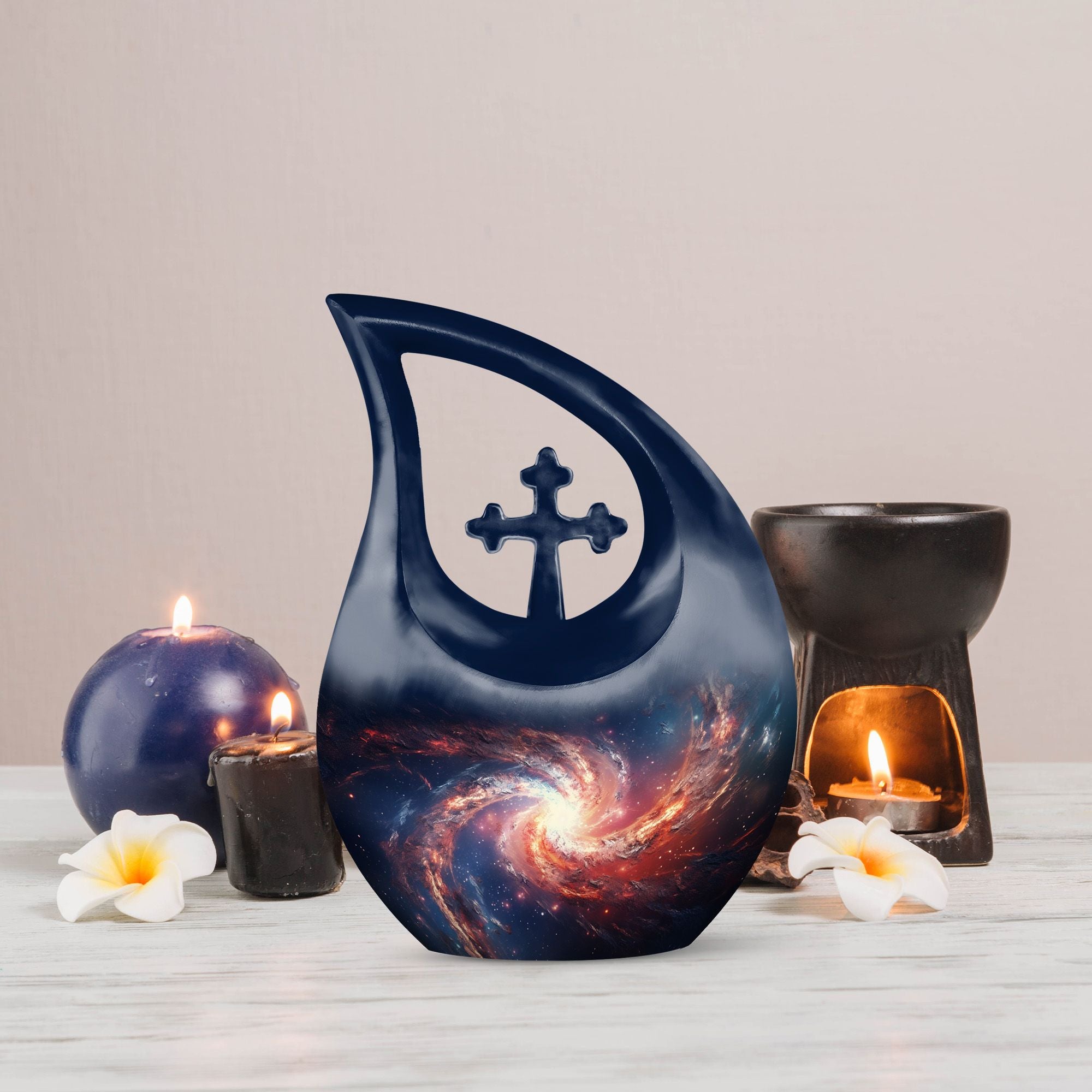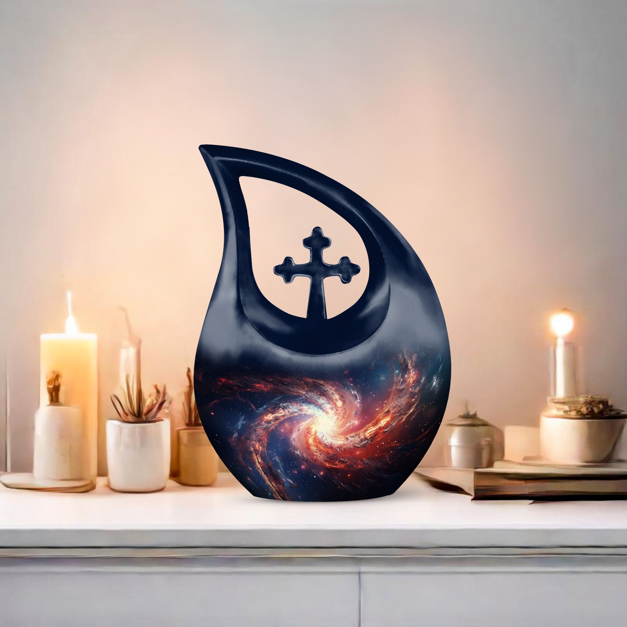 A brilliant blend of color and meaning, this galaxy urn stands as a powerful tribute to a life that continues to shine beyond the stars.