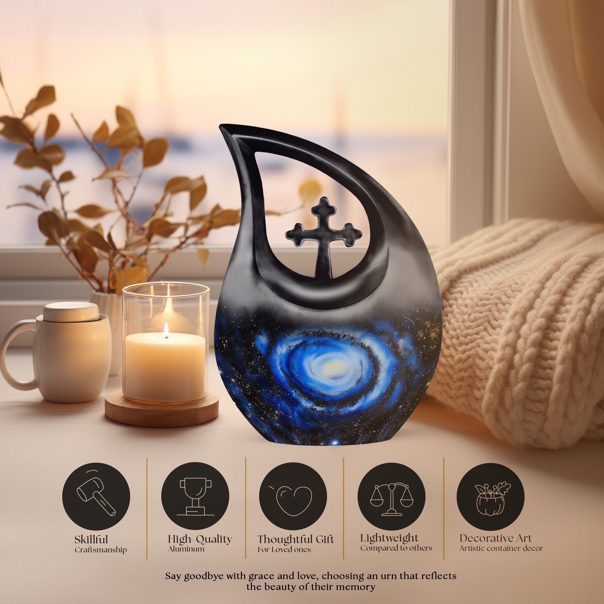 A life filled with love and memories deserves a tribute as unique as the person it honors. This Galaxy Cremation Urn offers a personalized and uplifting way to remember your loved one, making it ideal for families seeking Cremation Urns Adult, a meaningful Urn for Cremation, or a beautifully artistic memorial piece.