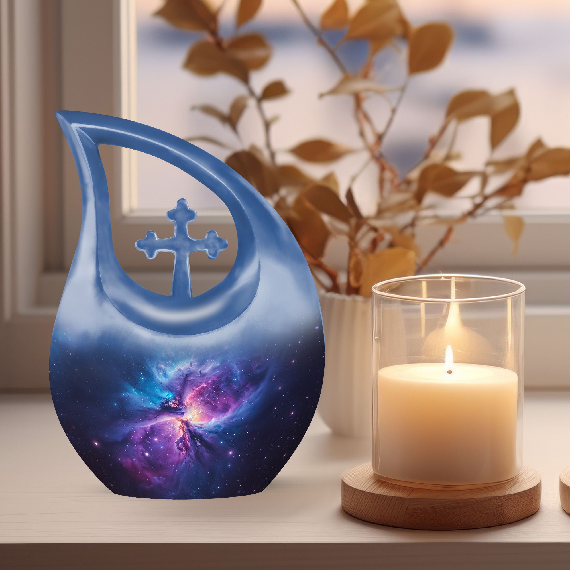 A symbol of eternity, light, and everlasting love, this Galaxy Memorial Urn offers a peaceful resting place for men and women. Its radiant cosmic design makes it meaningful for families seeking Cremation Urns, a beautiful Cremation Urn Human Ashes, or coordinated large and small urn options for shared remembrance.
