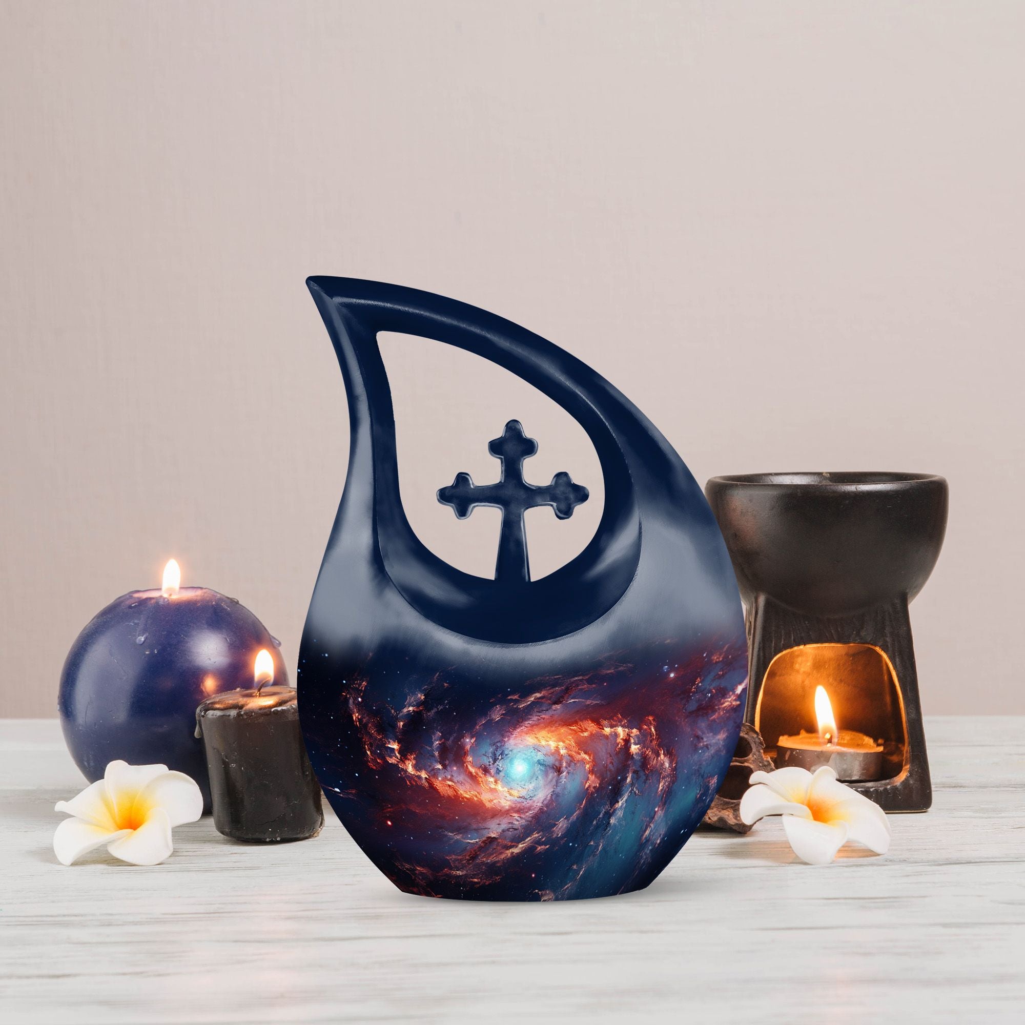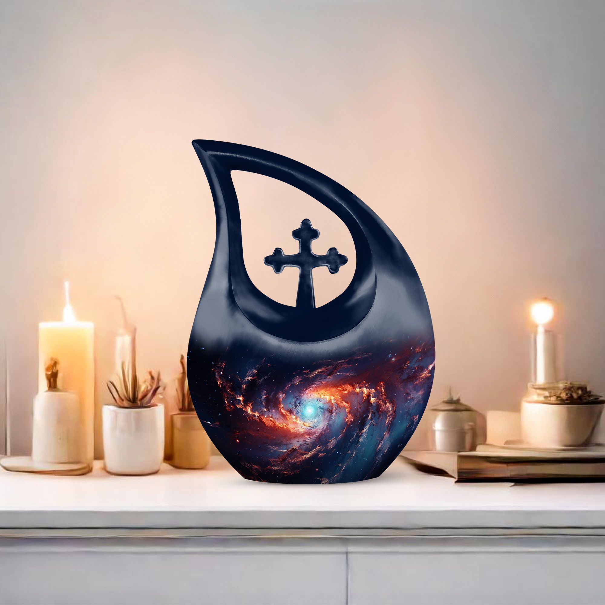 Celebrate a life filled with depth, wonder, and infinite beauty with the Galaxy Swirl Memorial Urn for Adults – Cremation Urn for Human Ashes. Inspired by the swirling colors of distant galaxies, this design brings comfort and a sense of cosmic peace, making it a meaningful choice among adult funeral urns or a dignified funeral urn adult. Its celestial theme symbolizes eternal connection and the boundless nature of love.