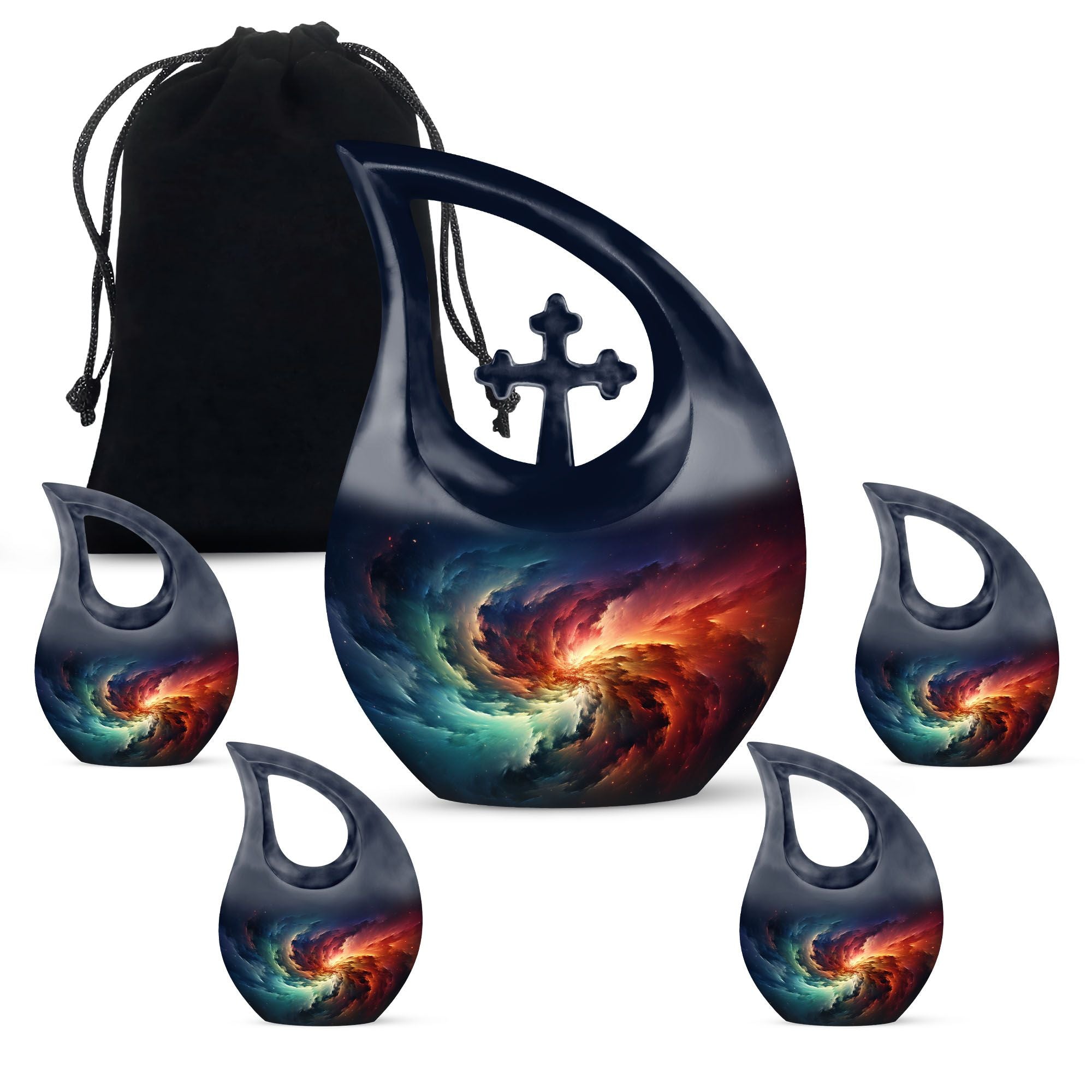 The Cosmic Dust Spiral Urn is a versatile memorial choice — suitable as an urn for ashes for men, adult urn for human ashes women, or funeral urn for adult ashes men. Smaller matching keepsake urns offer family members a way to share remembrance through mini urns for ashes for women or mini small urns for men.