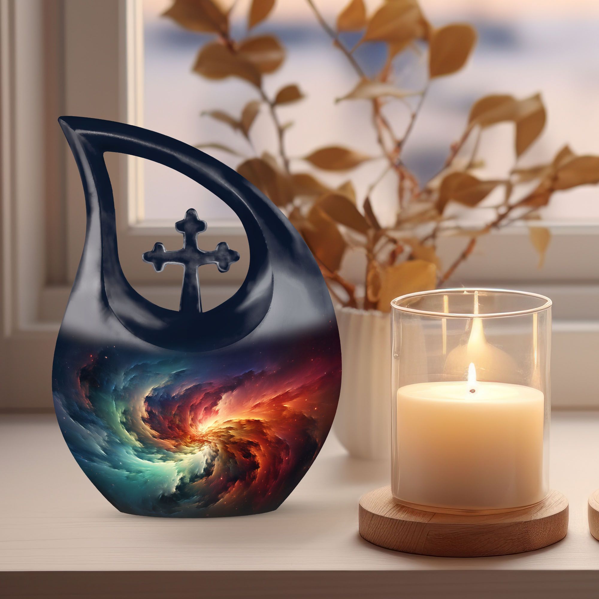 The Cosmic Dust Spiral Urn for Loved Ones captures the serene beauty of the universe — a stunning celestial tribute symbolizing eternal peace and connection. Its swirling galaxy design reflects the cosmic bond that remains between loved ones beyond time and space. Ideal as a large urn for human ashes or as part of a galaxy large & keepsake urn combo, it beautifully honors both men and women with grace and dignity.