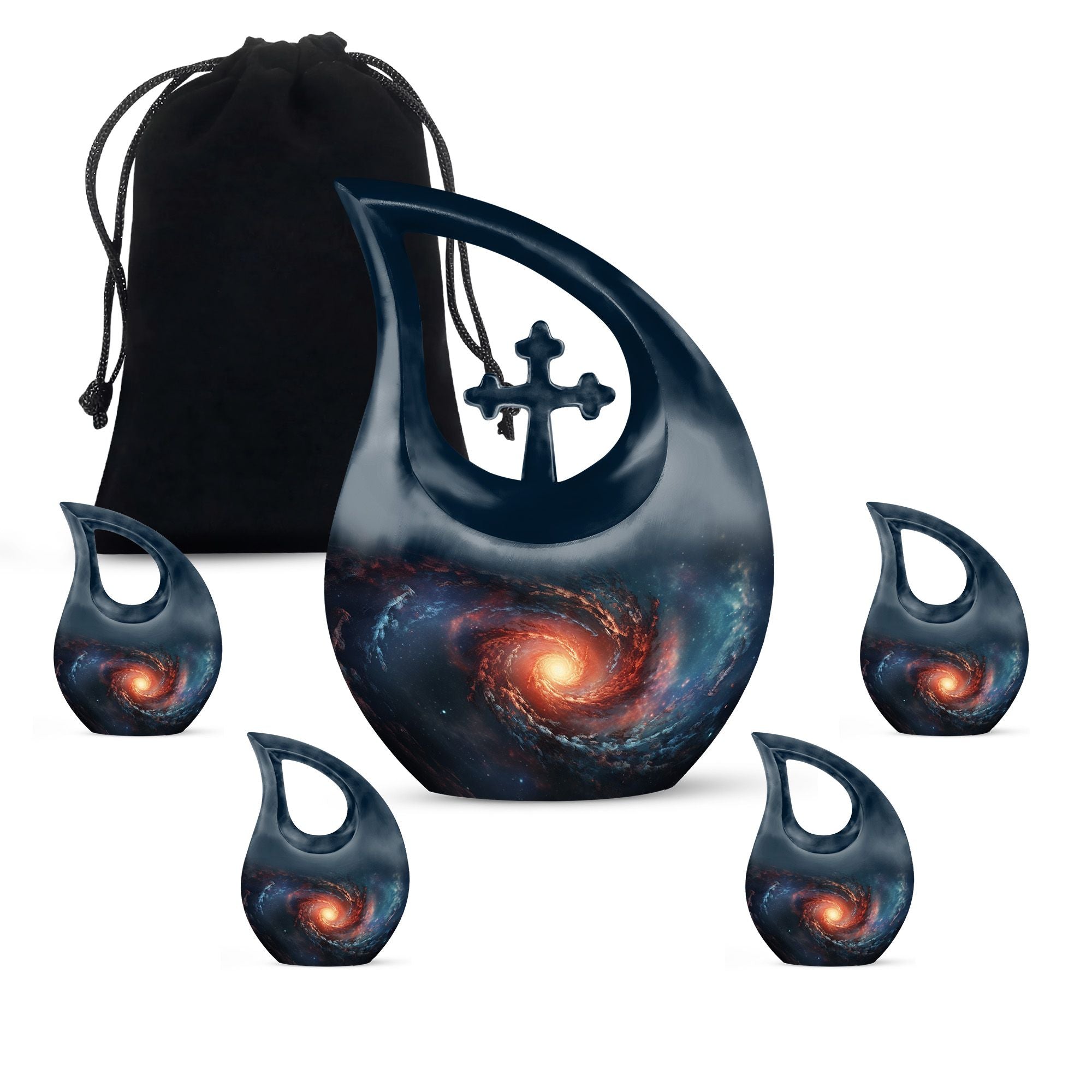 The Galaxy Spiral Themed Urn – Extra Large Cremation Urn for Human Ashes offers a powerful celestial tribute for honoring a cherished life. Designed for families seeking funeral urns for human ashes or urns for human ashes male, this radiant memorial captures the beauty of eternity through its swirling galaxy artwork.