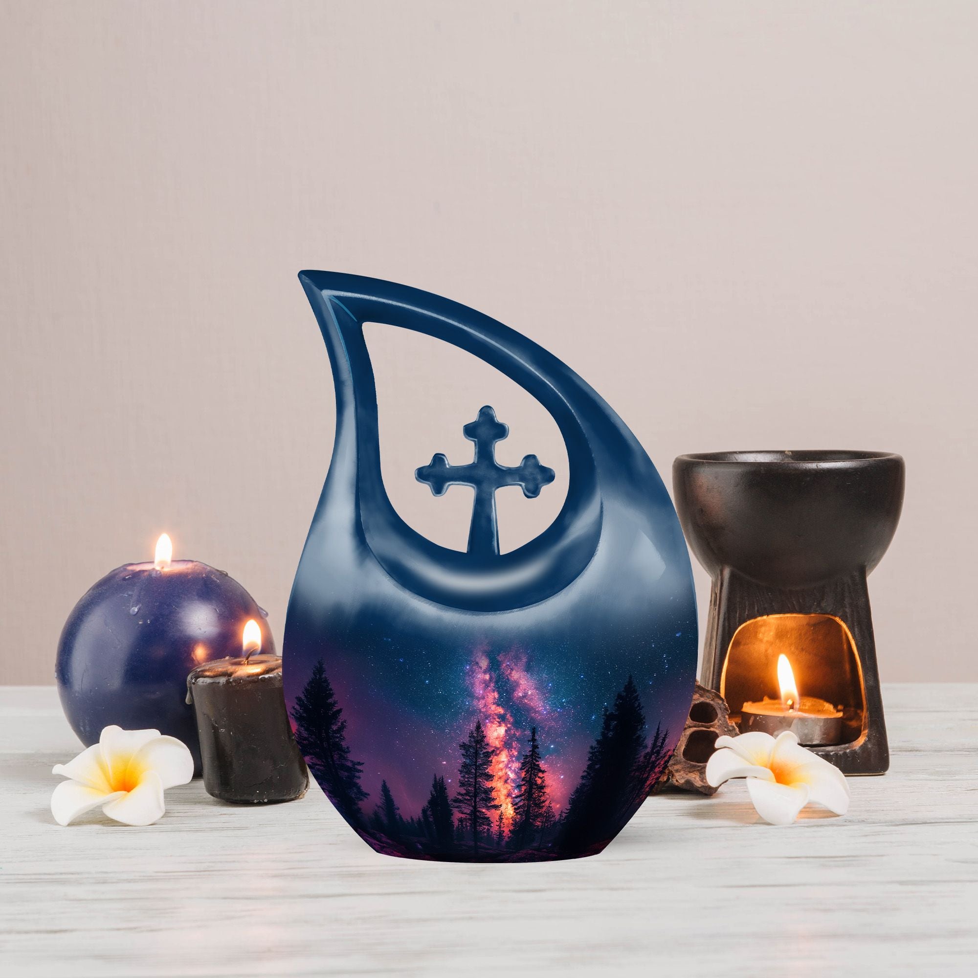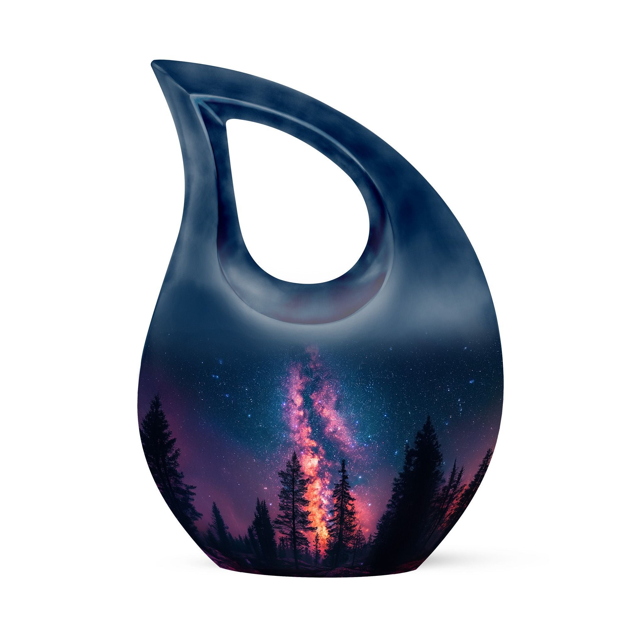 This Galaxy Cremation Urn offers a serene and celestial way to honor a cherished life, making it a meaningful choice for families seeking adult urns for human ashes for men and women. Its cosmic design brings a sense of peace and eternity, beautifully complementing options like funeral urns for women, an urn for ashes for men, or unique cremation keepsakes for men and women.