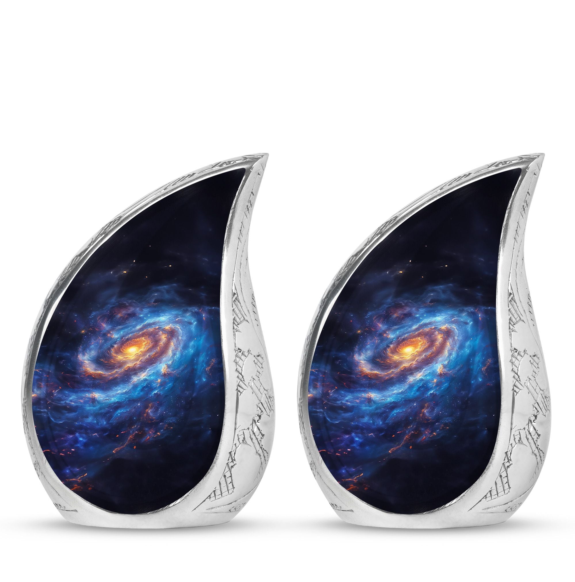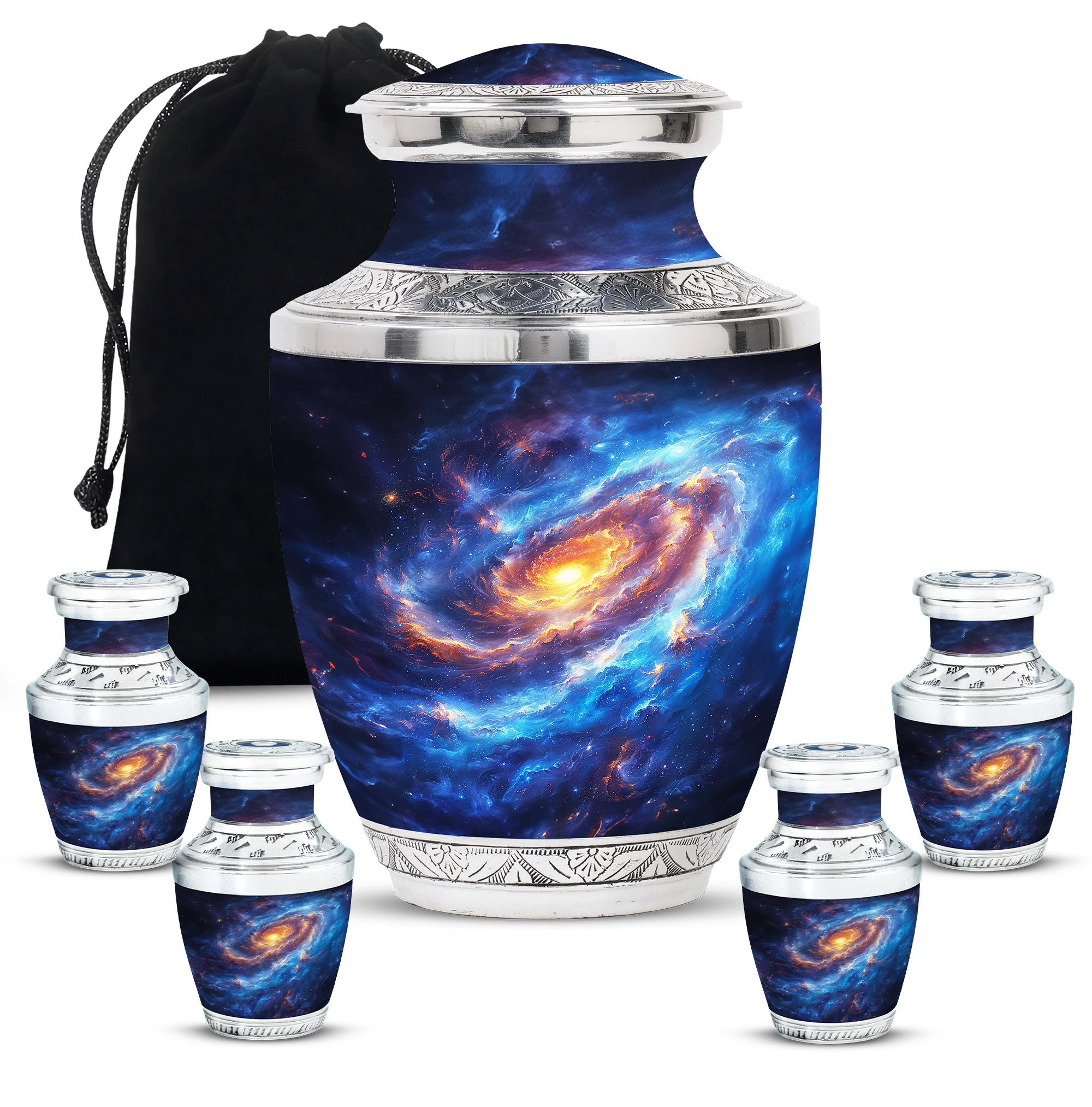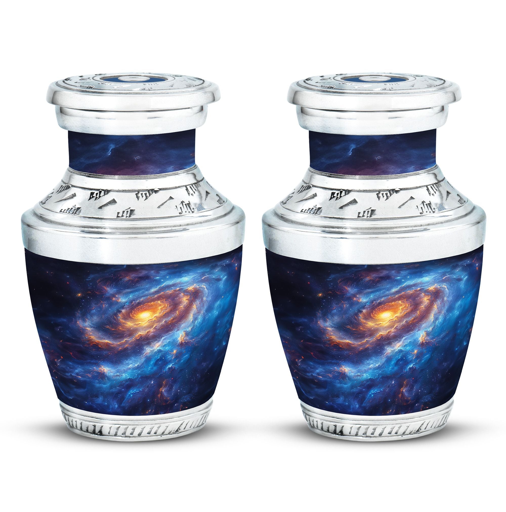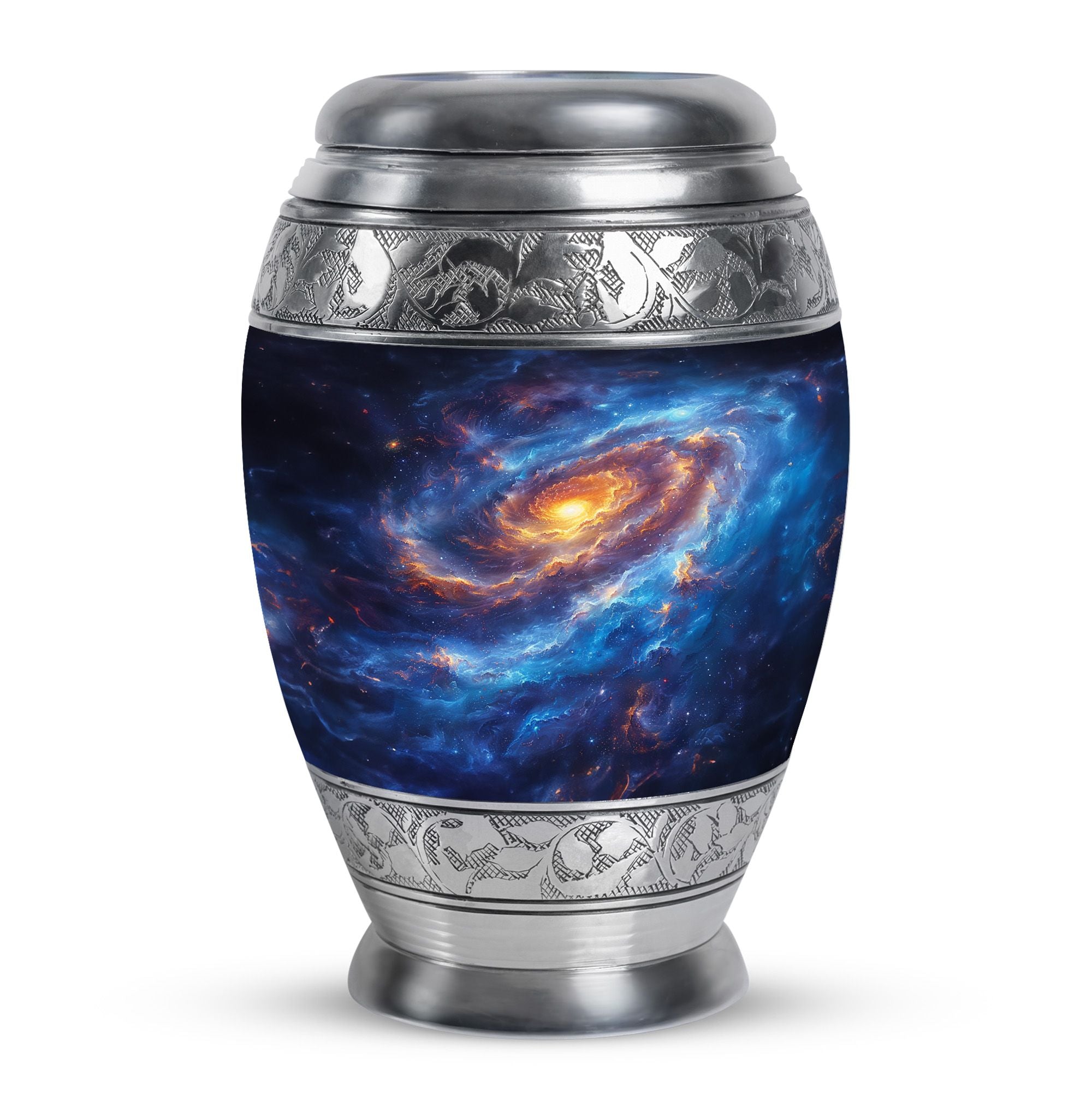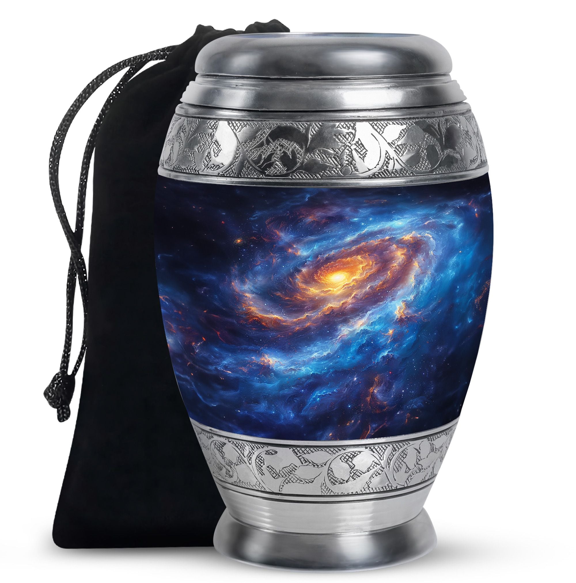 Expertly crafted from durable aluminum, this urn reflects the mysteries and elegance of the cosmos. The deep galaxy pattern creates a unique, comforting presence in any setting. Whether chosen as a burial urn men or a women adult urn, it stands as a timeless piece of remembrance. Designed for functionality, the secure screw-top lid ensures ashes are kept safe, while its size and finish make it suitable as both keepsake urns for men ashes and small urns women.