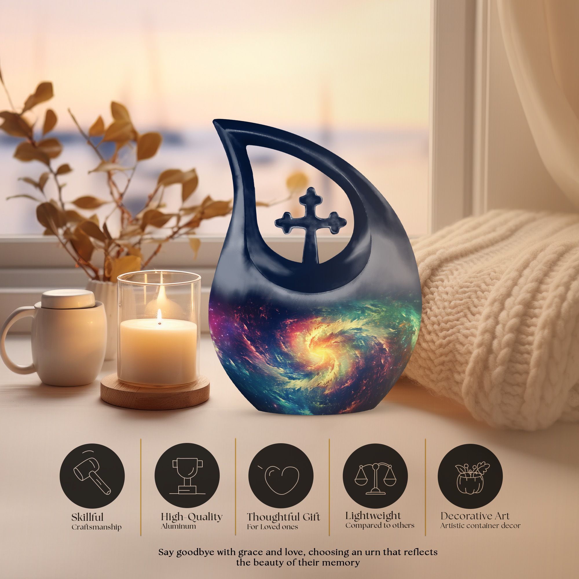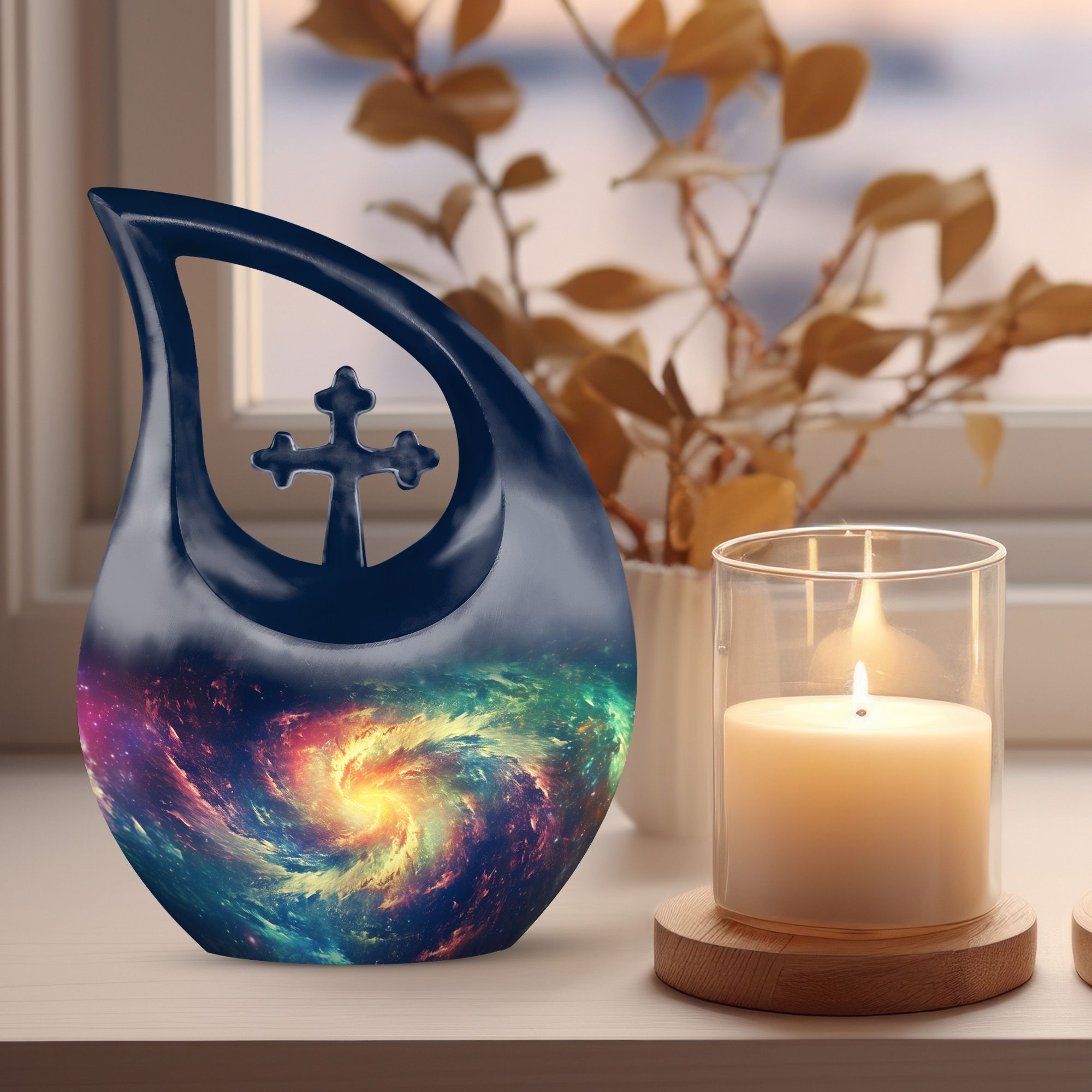 The Colorful Galaxy Urn for Burial offers a radiant and heartfelt way to honor a cherished life. Designed for families seeking urns for human ashes adult male or urns for adult female with emotional significance, this celestial cremation urn brings comfort through its bright, cosmic-inspired design.