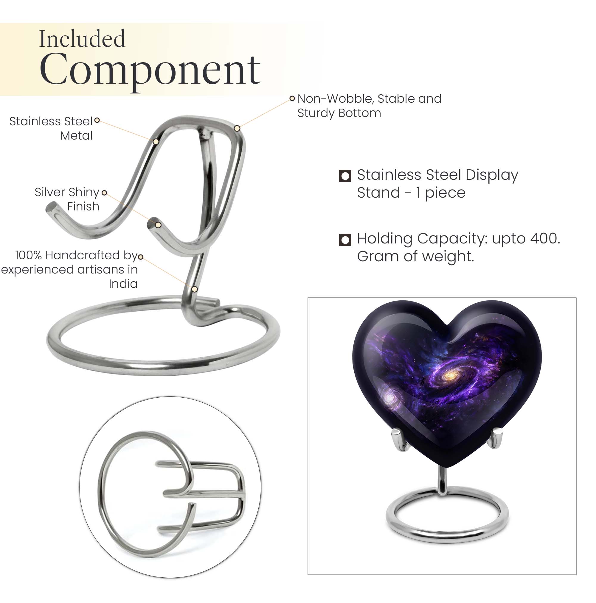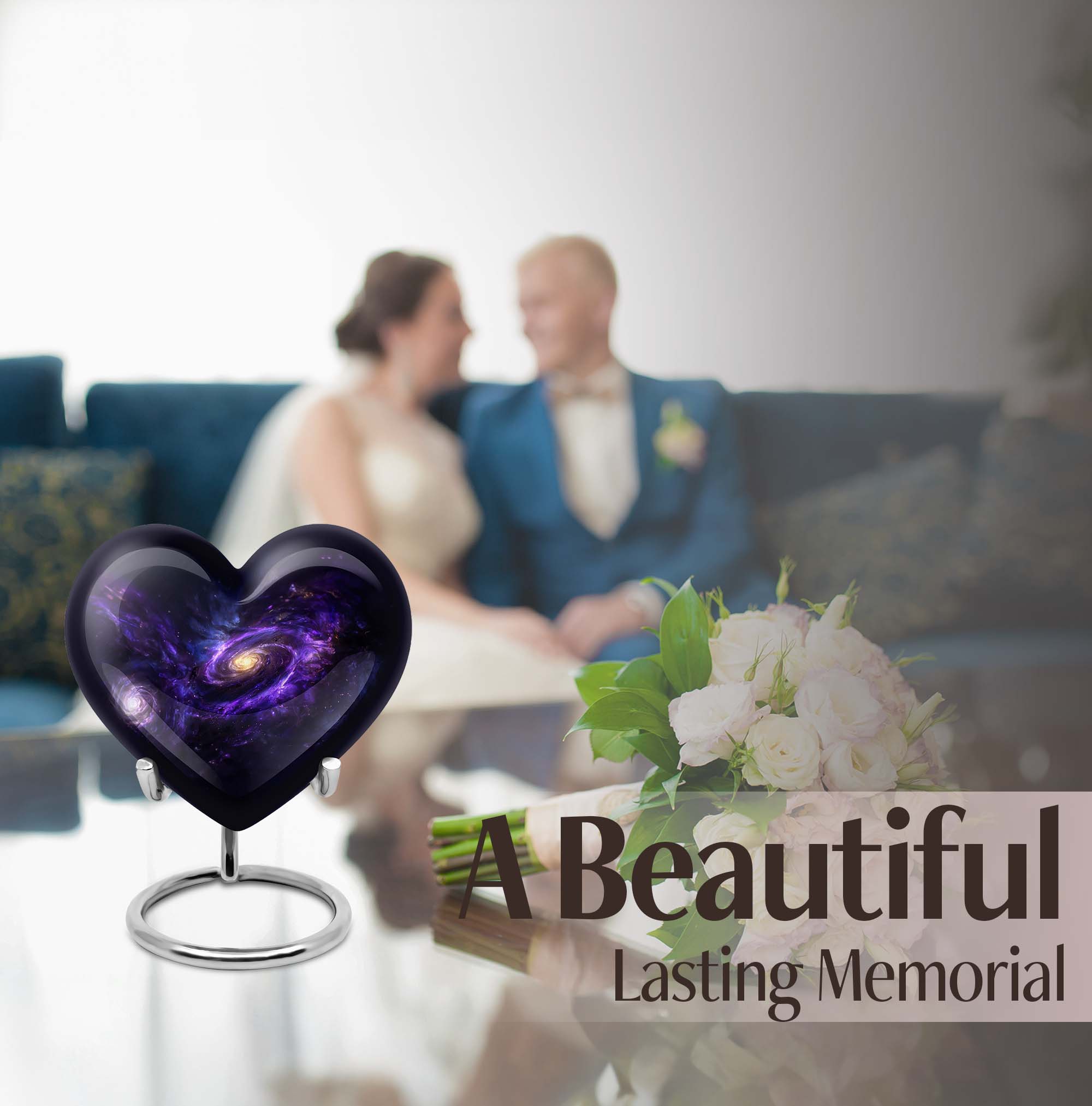 Experience a serene and respectful way to preserve the memory of your loved ones with our Purple Meadow Galaxy Urn - a large, heart-shaped cremation urn for ashes. This meticulously crafted product exudes a charm that transcends beyond the ordinary memorial urns. With its enchanting Purple Meadow theme, it serves as a beautiful homage to the departed. Crafted with robust aluminium, the urn measures 10 inches in height, making a statement of dignity and respect. It can gracefully accommodate up to 200 cubic inches of ashes, allowing you to keep your cherished ones close. Never feel the distance with the option to personalize this burial urn with engraved names, lending it a unique touch of fond memories. The package includes a velvet pouch that provides a secure space for containing ashes. Weighing at 3.3 pounds, the urn stays firm and stable. Enhance your commemoration with our multipurpose urn, a fitting tribute to honor your loved ones.