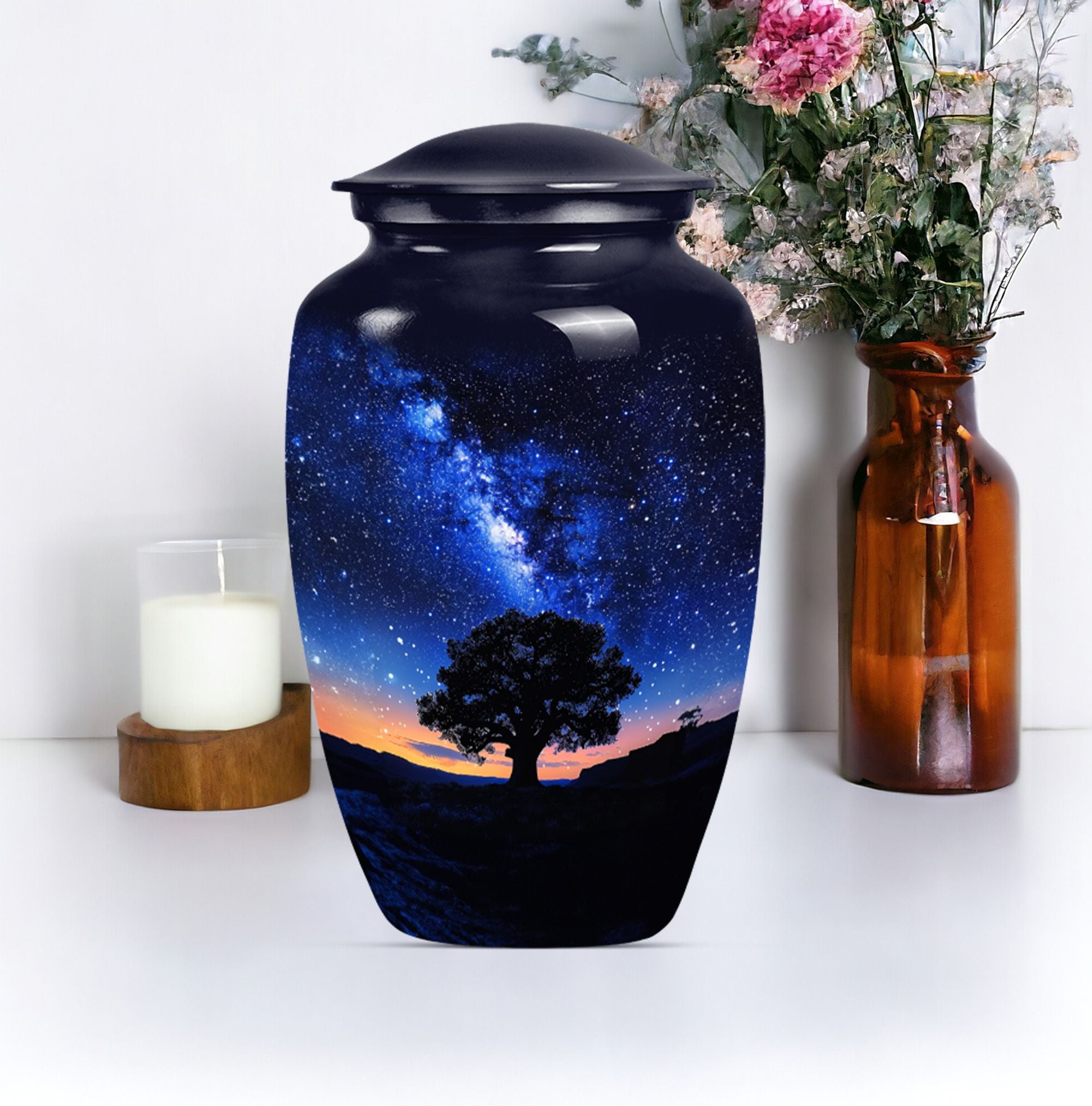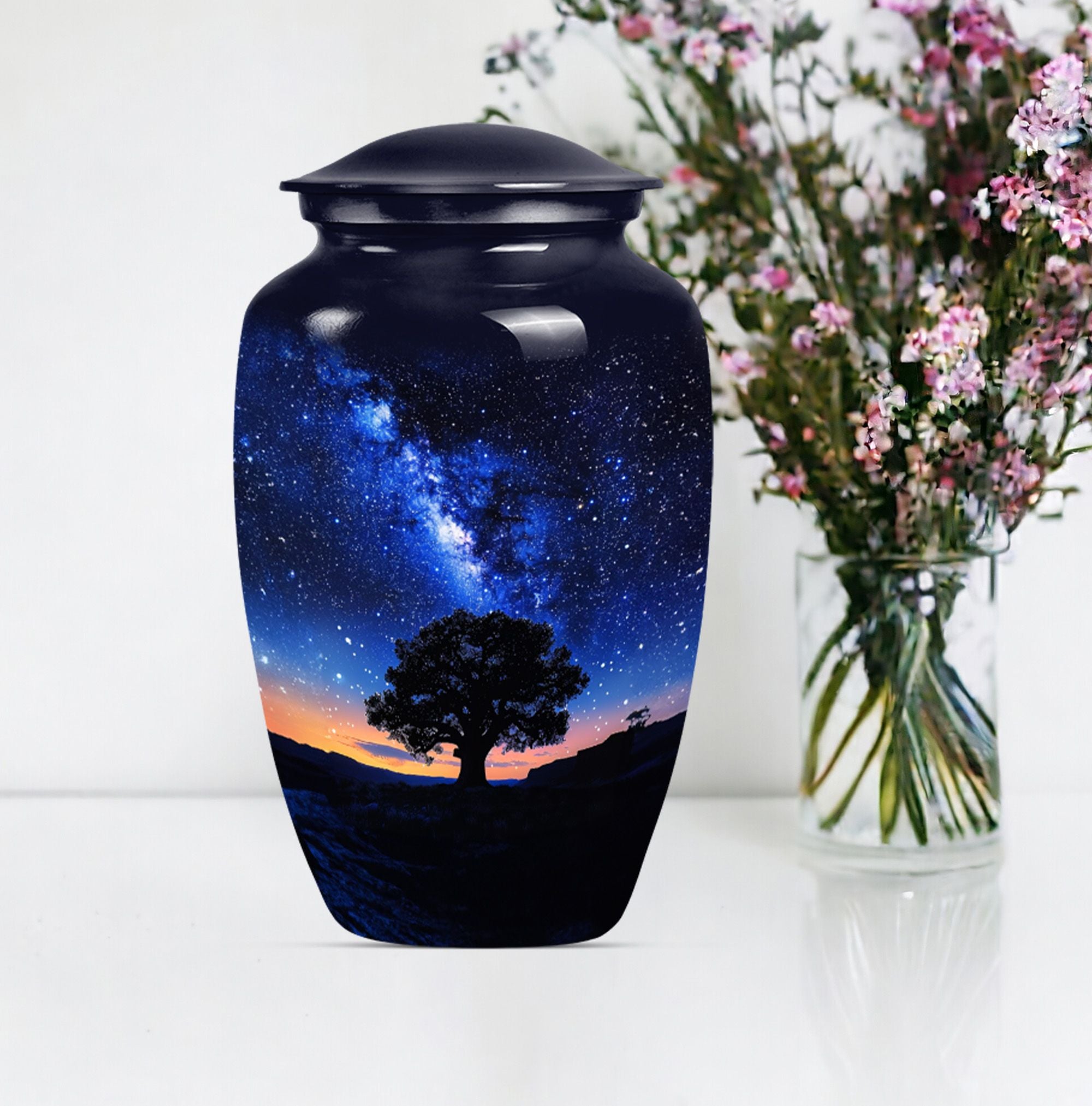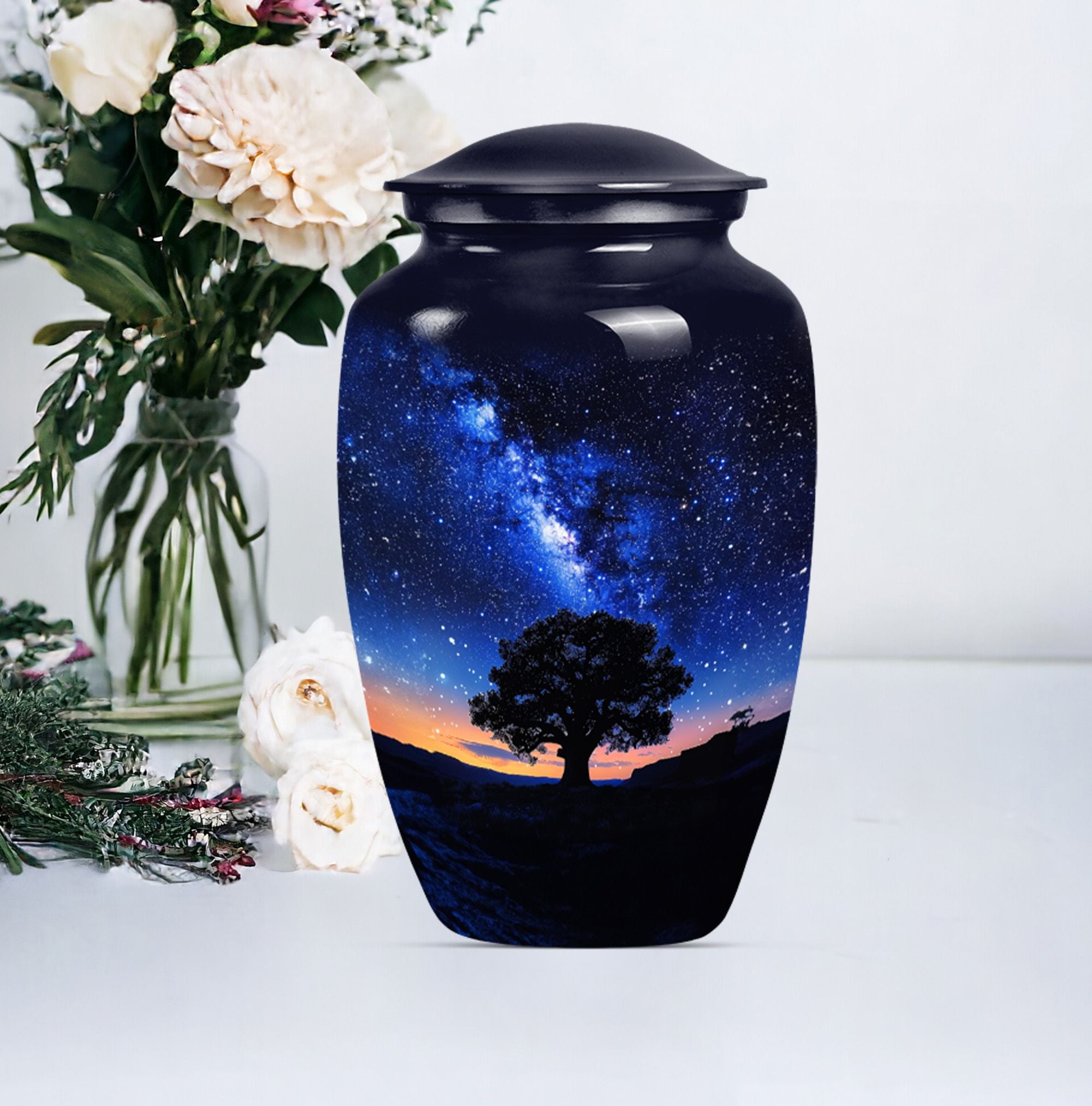 This large funeral urn offers ample capacity for adult remains, symbolizing a final resting place as vast and infinite as the stars. Families searching for large cremation urns for human ashes will find comfort in its timeless design, which reflects the eternal nature of love and memory.