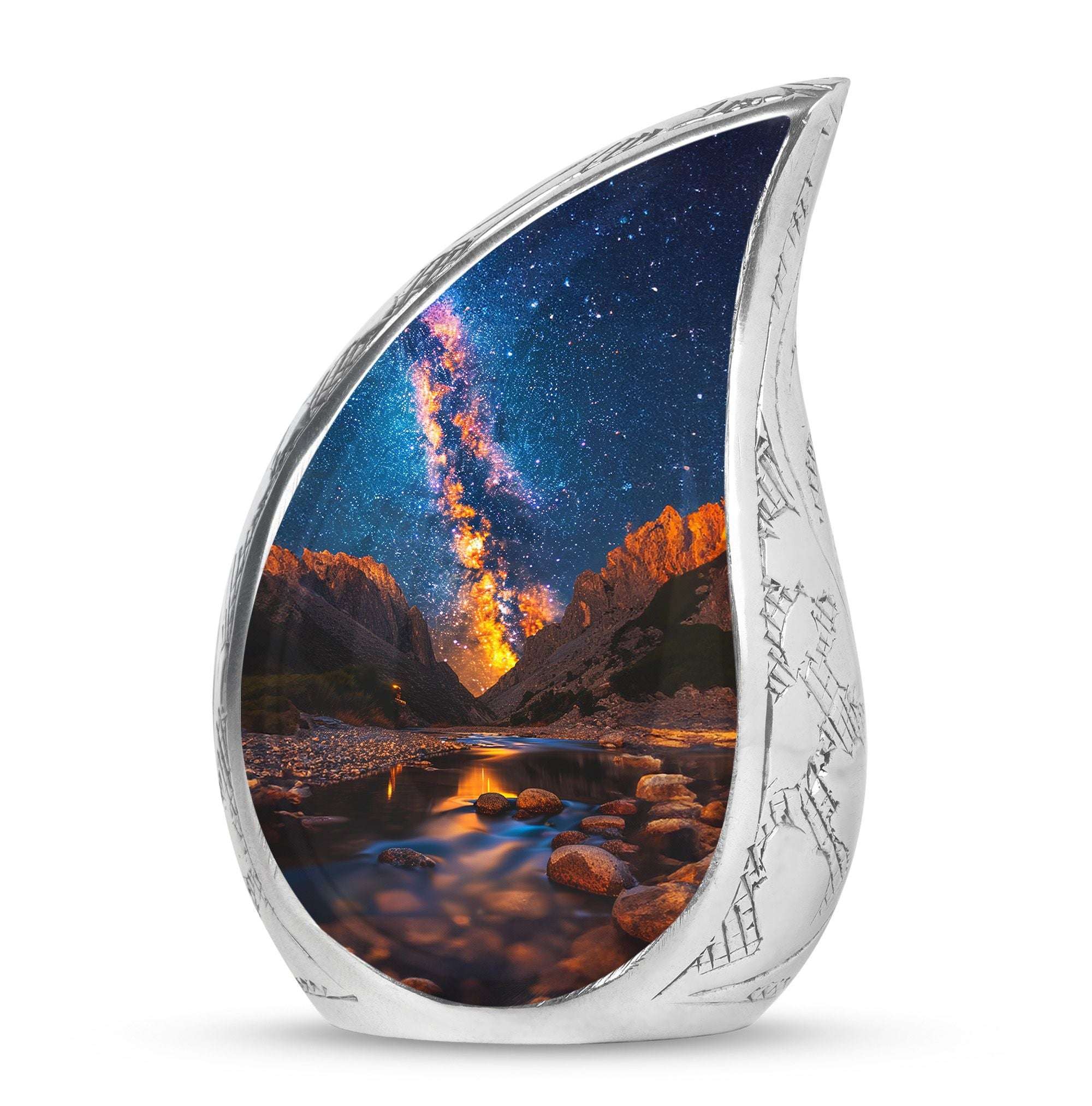 Celebrate a life that was truly out of this world with the Milkyway Urn For Ashes, inspired by the awe-inspiring beauty of the galaxy. This cremation urn offers a celestial tribute to your loved one—whether you're remembering a parent, partner, or dear friend. With its swirling galaxy finish and spiritual design, it’s a meaningful way to honor a soul that continues to shine.