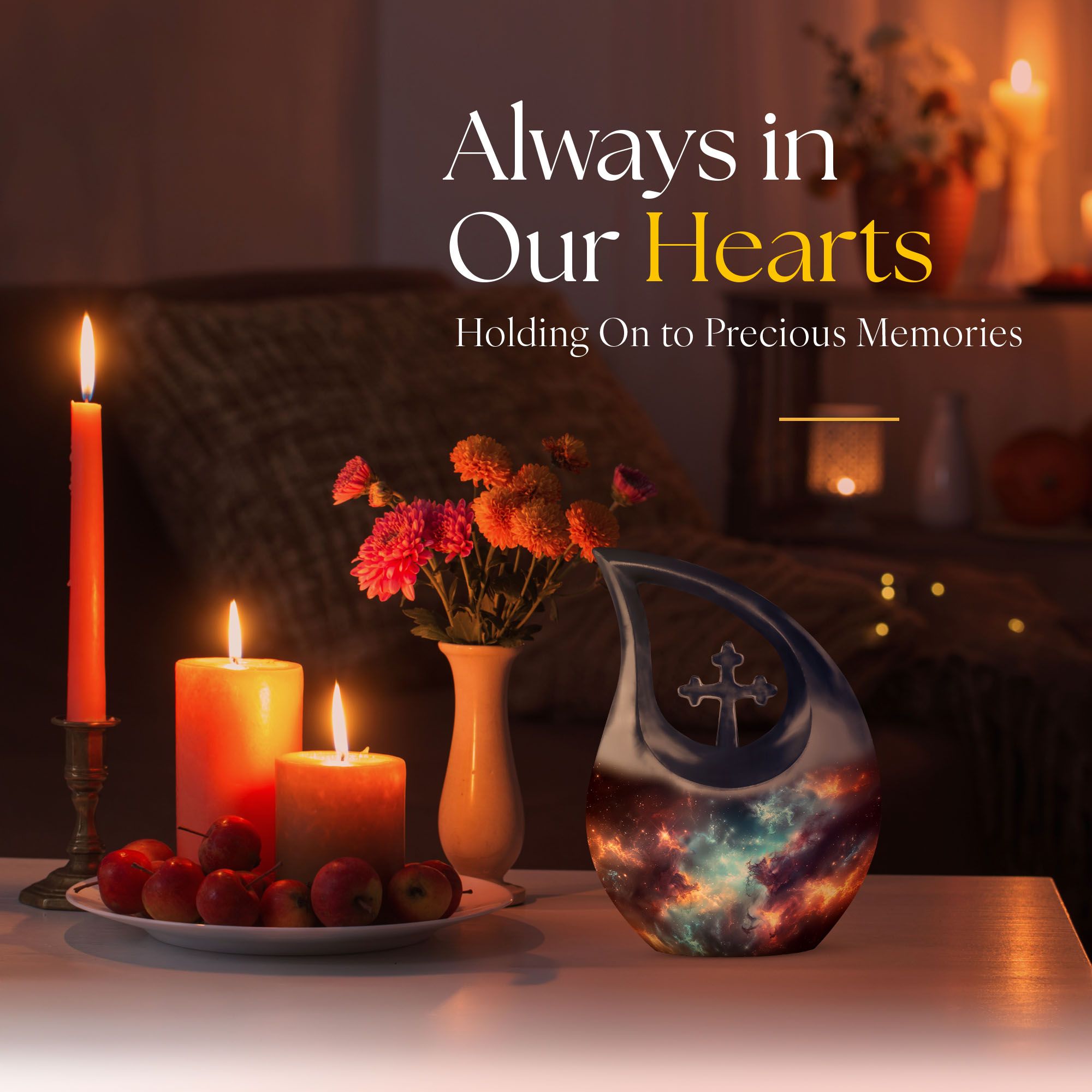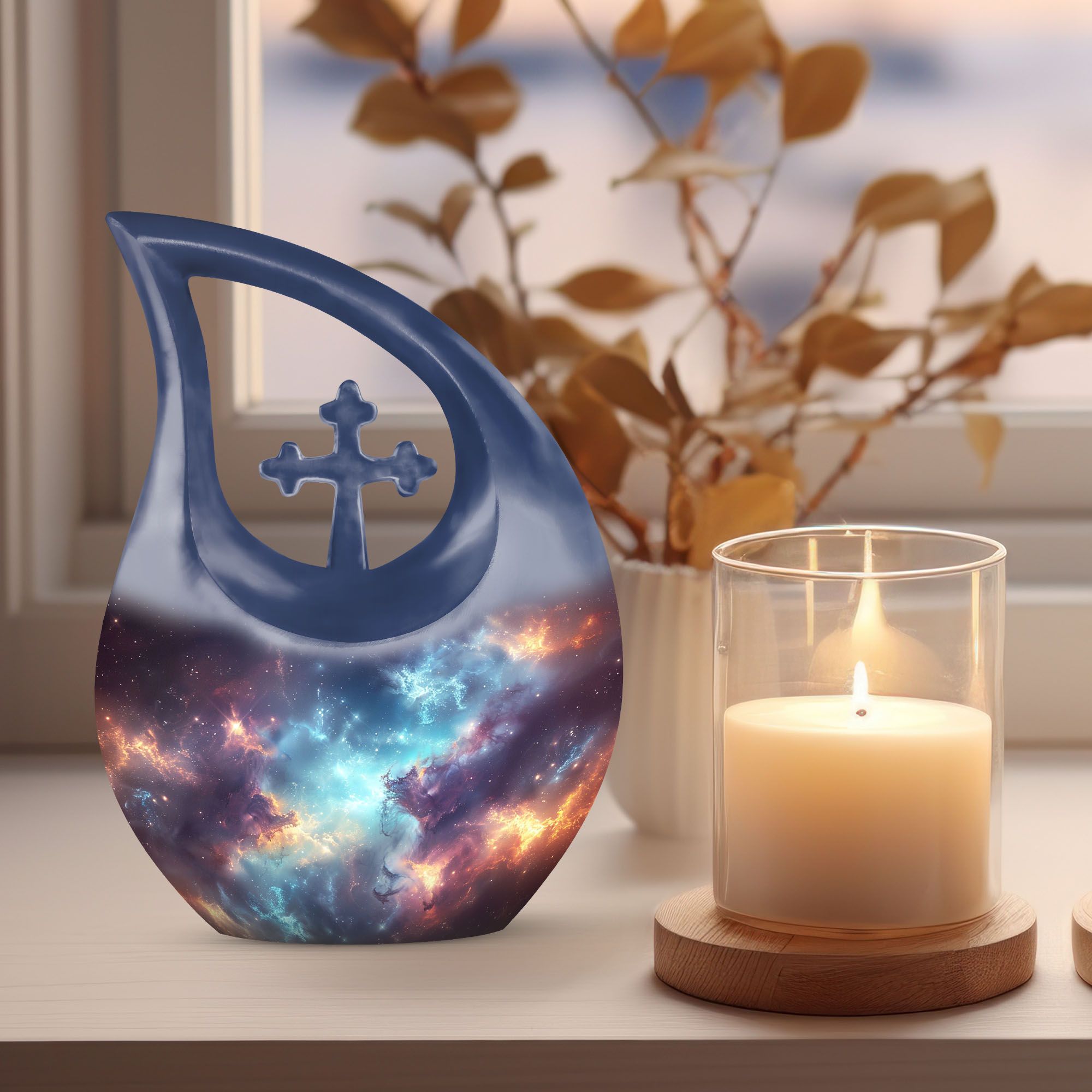 The Nebula Galaxy Burial Urn provides a peaceful and meaningful way to honor a cherished life, offering comfort to families seeking funeral urns for human ashes adult. Its celestial design symbolizes eternal connection, making it a beautiful choice for those needing urns for human ashes large or a dignified large funeral urn.