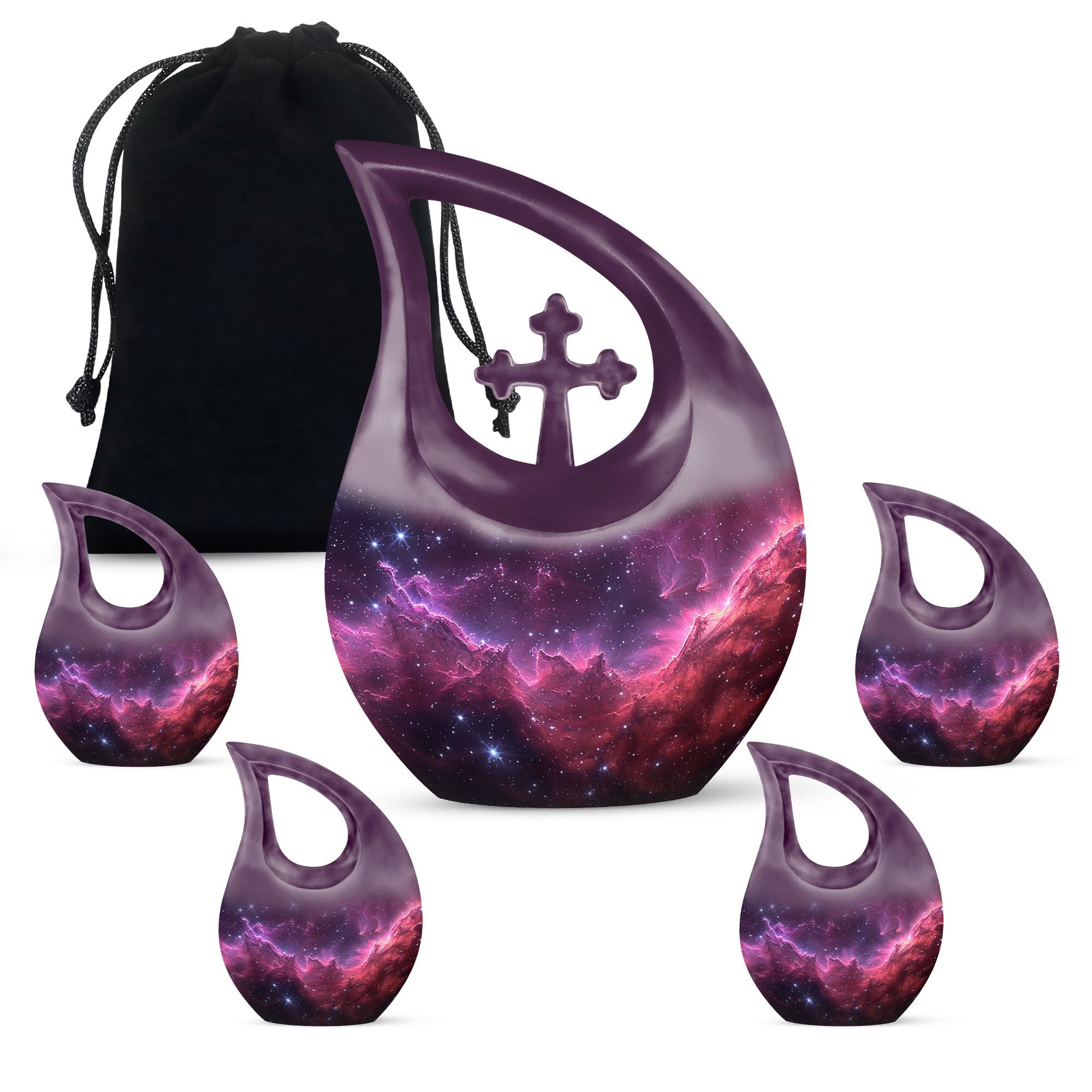 Crafted from durable aluminum, this 10 inch urn features a vivid cosmic pattern with rich blues, purples, and star-like accents. Its secure screw-top lid ensures ashes remain safe, making it a trusted option for families needing cremation urns women, a dignified burial urn men, or smaller matching memorials such as keepsake urns for men ashes or tiny urns for women & men. Designed for full adult capacity, it also supports those seeking an urn ashes for women or a unifying urn for adult male & female suitable for any loved one.