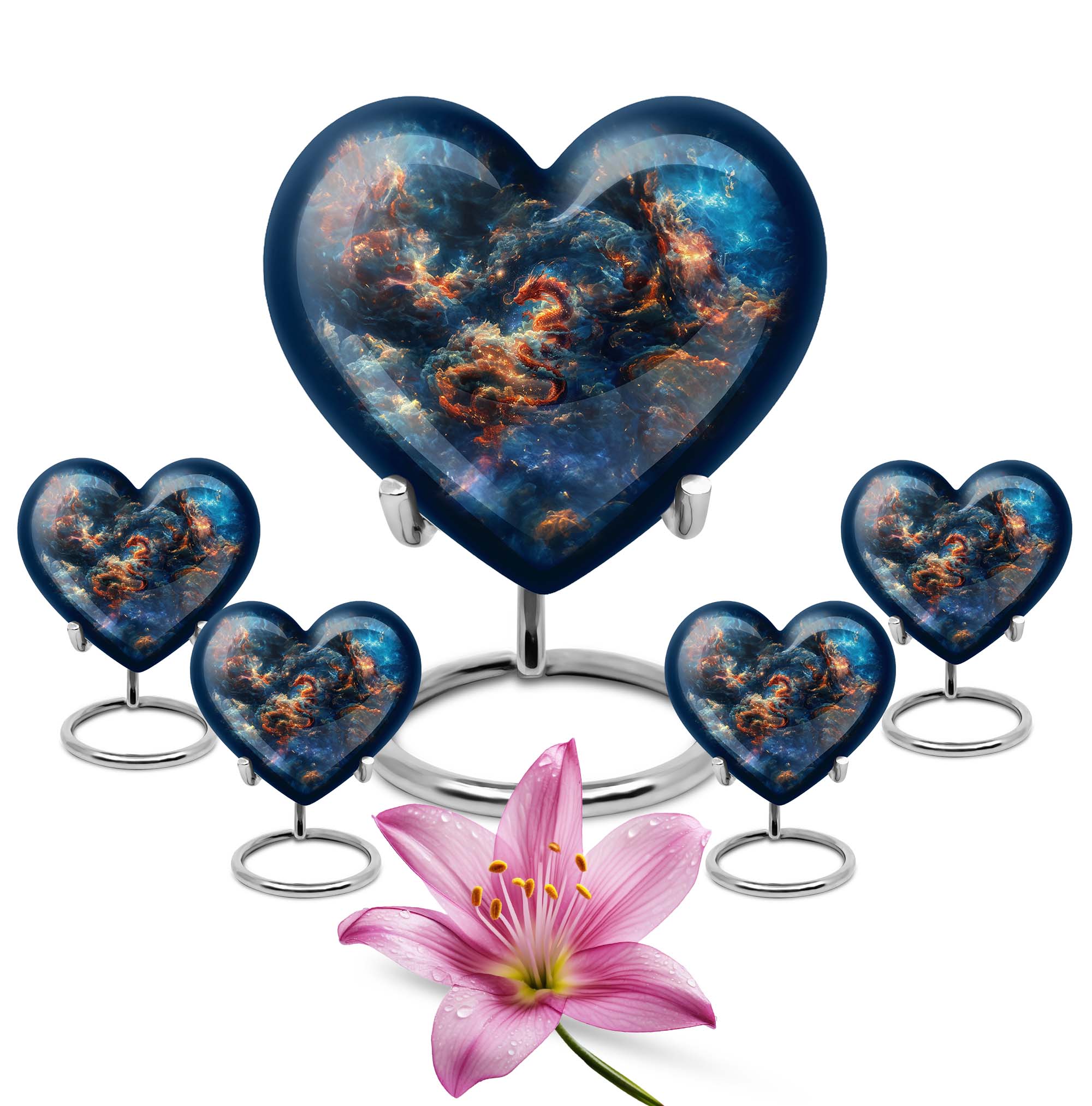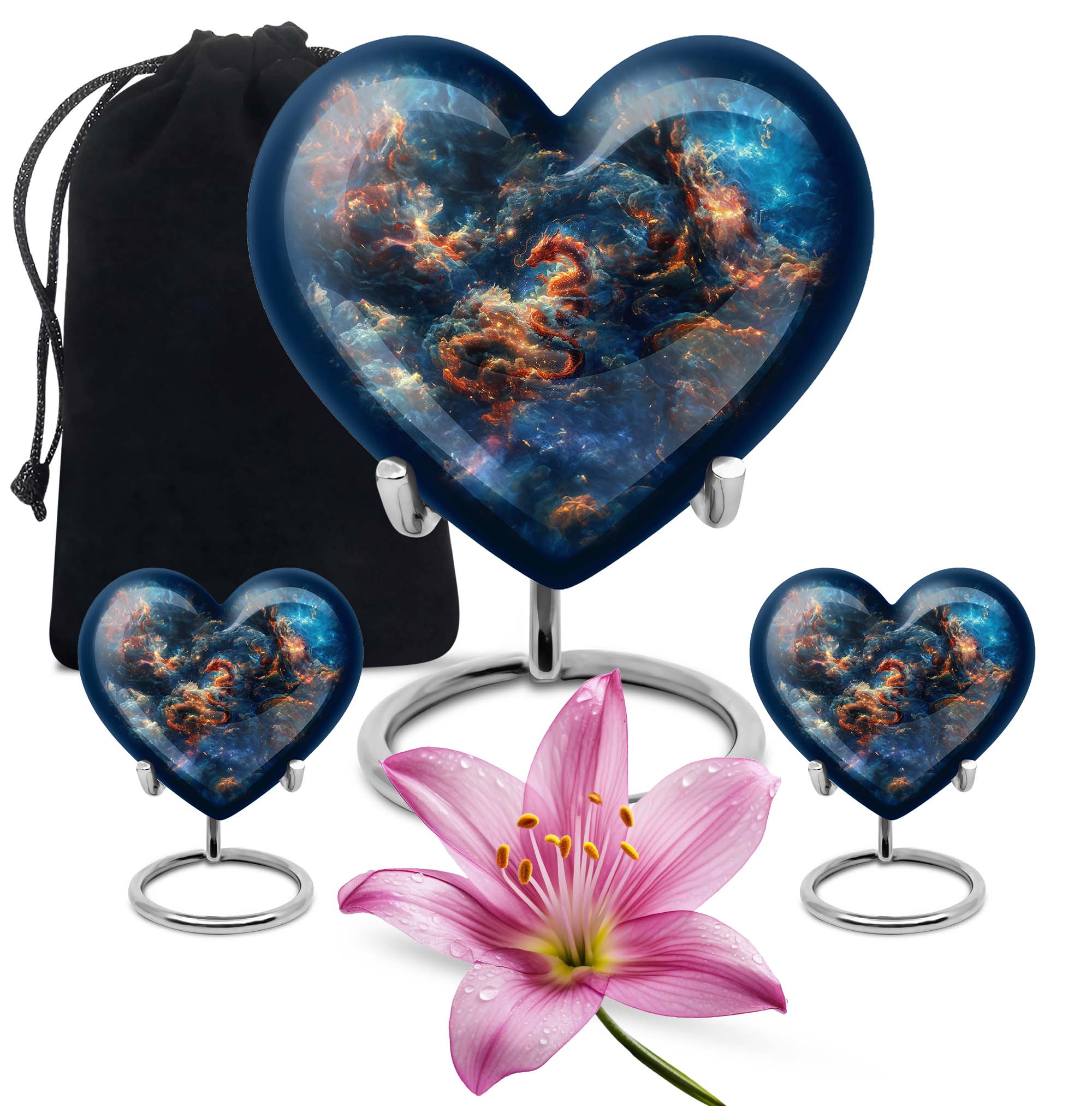 For those looking for elegant cremation urns for women, this heart-shaped galaxy urn provides both beauty and security. It is also available as keepsake urns for women, allowing each family member to hold a personal memorial close by.