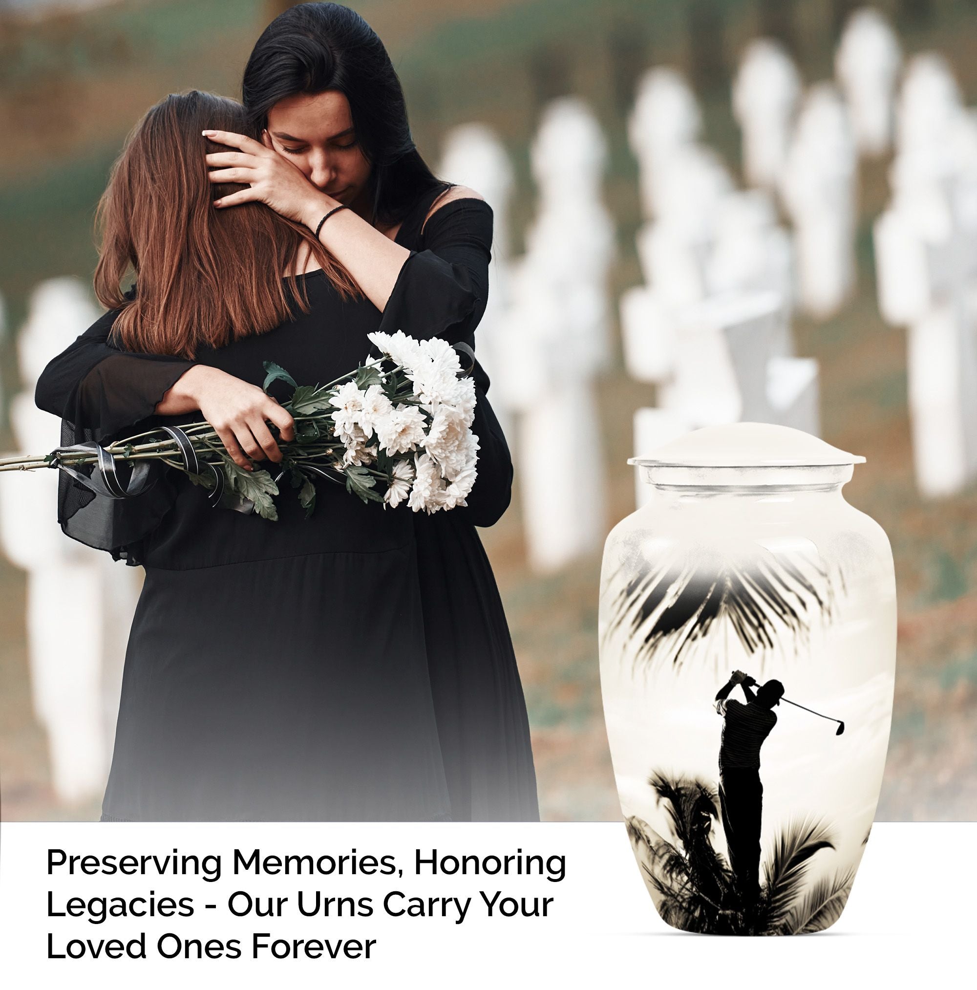 Made with an abstract theme, our large, 10-inch cremation urn stands as an unequivocal choice for your memorial ceremony supplies. Known as the Classic Urn, this tribute hails from durable Aluminium material, ensuring your cherished memories with your loved one are preserved for years to come. Suitable for both mom and golf lovers, our product extends a capacity of 200 cubic inches, effectively accommodating human ashes of an adult in size. As a testament to our focus on enhancing your commemoration, this beautiful golf urn comes with a luxurious, velvet pouch to effortlessly contain the ashes. Personalization options are available to etch your beloved's name making it truly unique. Weighing only 3.3 pounds, this 10-inch memorial urn coincides comfort with remembrance, staying light in weight, but heavy in sentiment. Ideal for adults and seniors, make this cremation urn a part of your memorial ceremony, keeping enduring love and cherished memories alive.