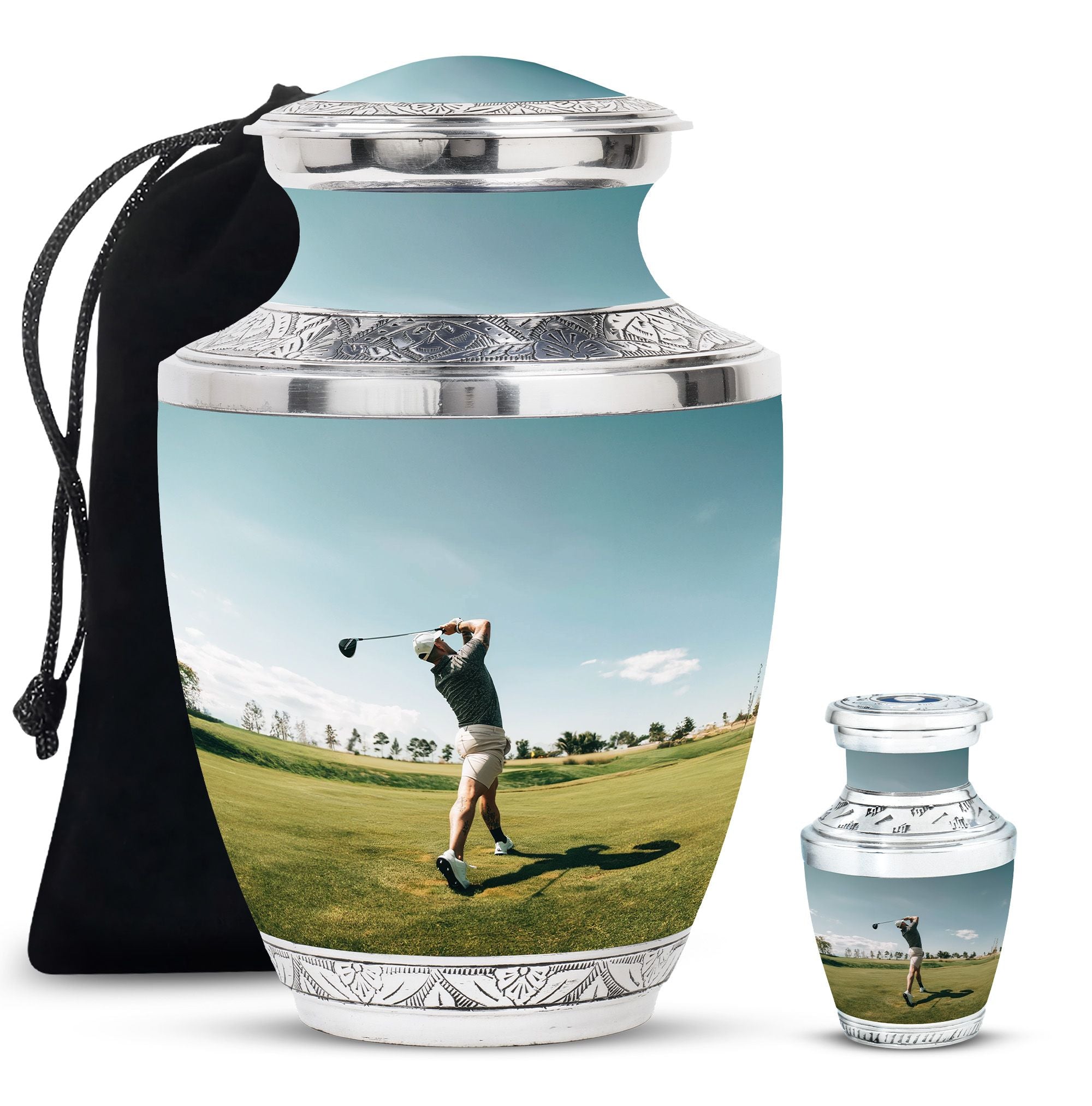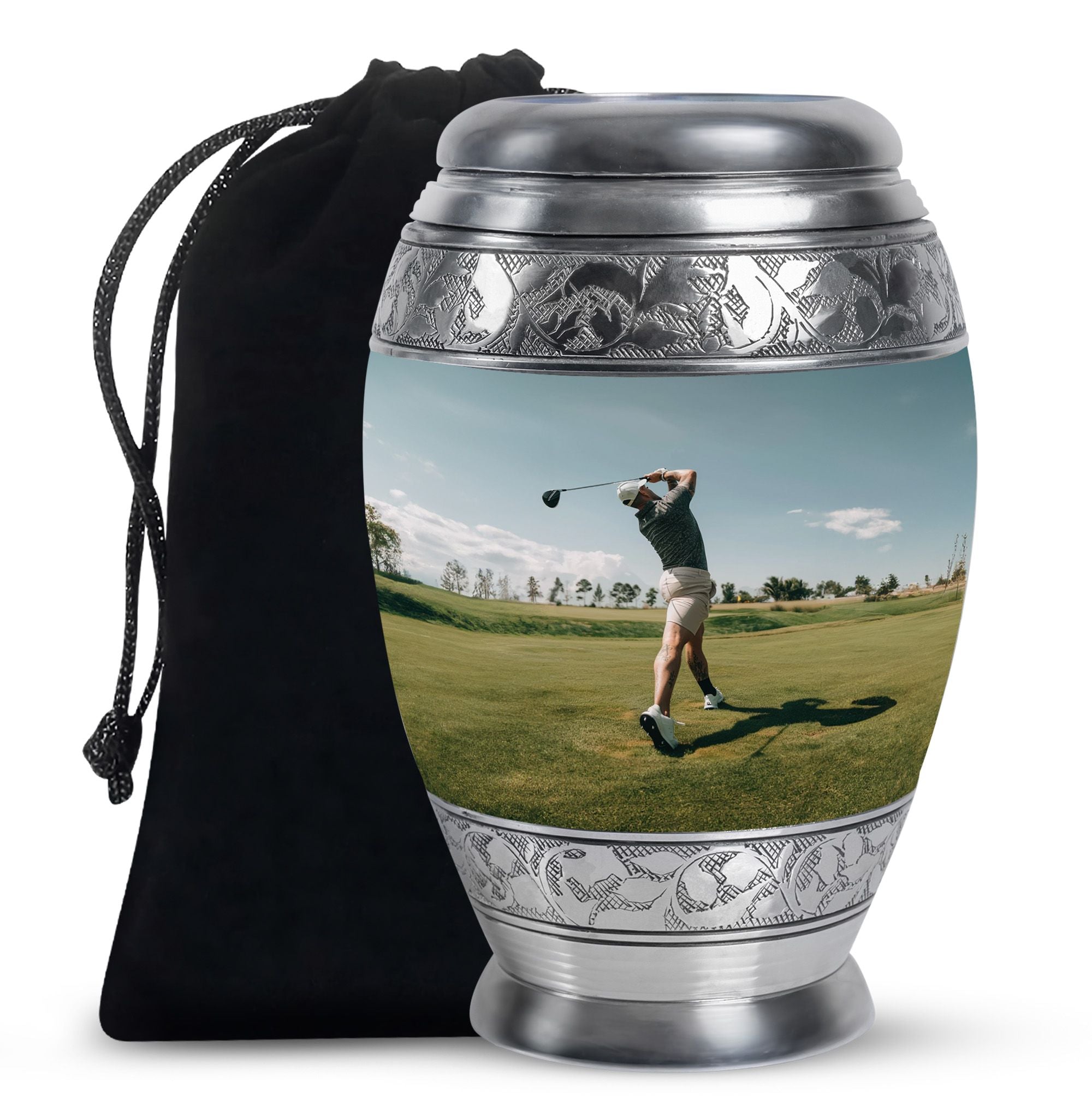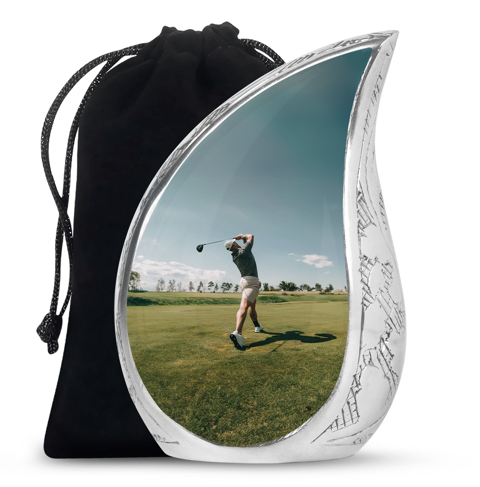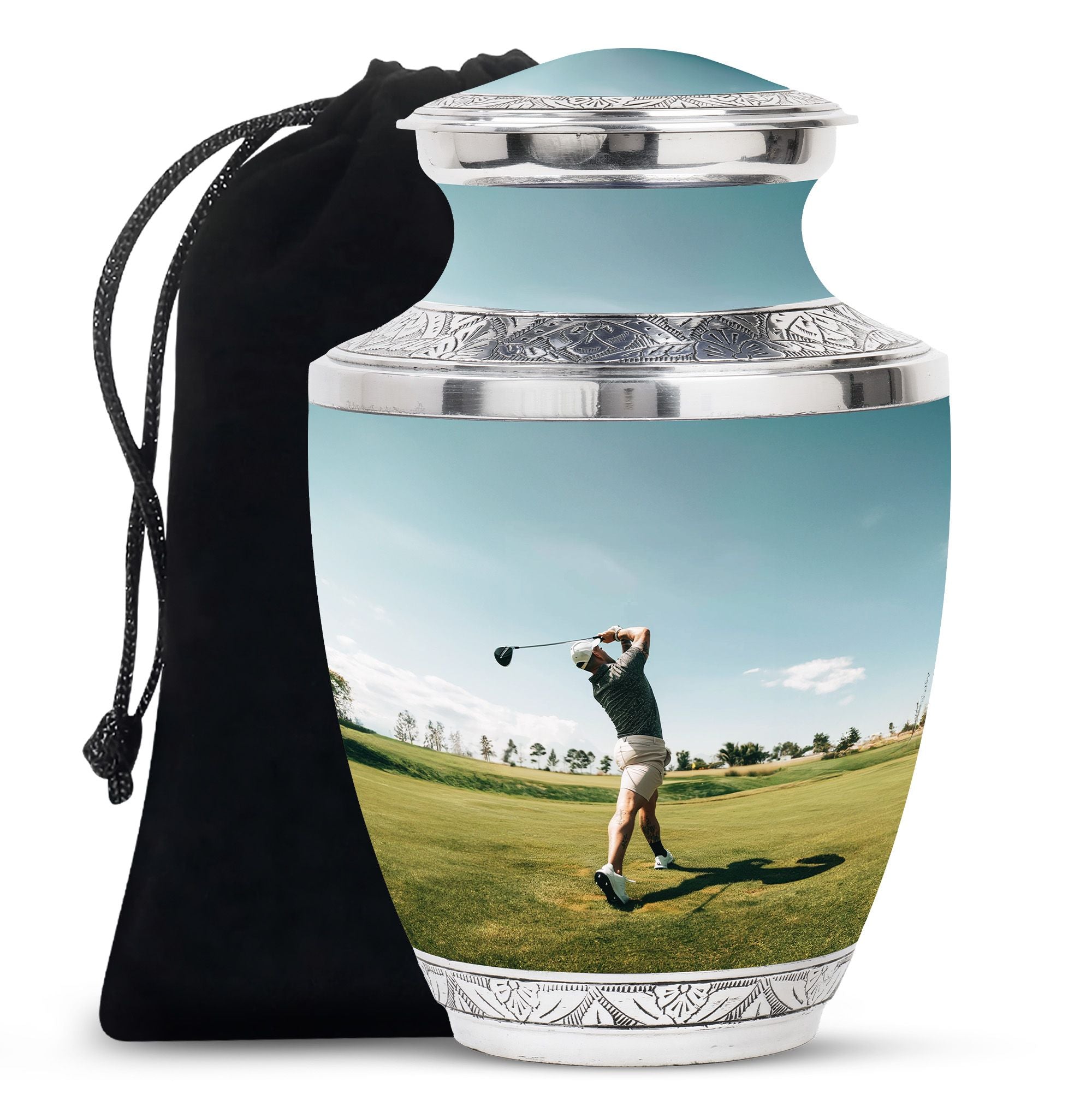 Honor a life filled with love and cherished memories with this golf cremation urn for human ashes. Thoughtfully designed, it provides families with a dignified way to preserve and celebrate the legacy of a loved one. Whether chosen as one of our adult cremation urns or as a small cremation urn for ashes, this design offers comfort and remembrance.