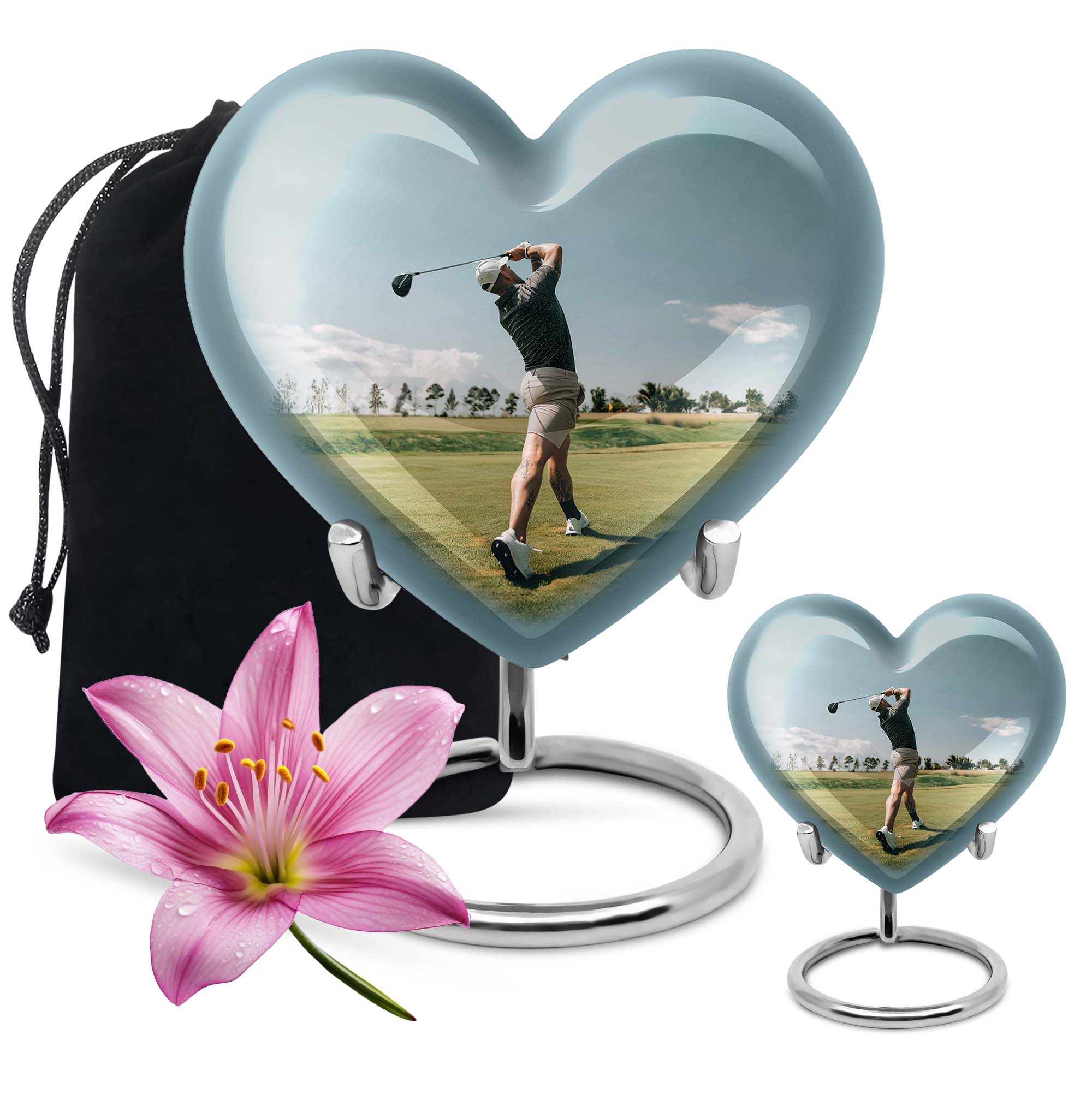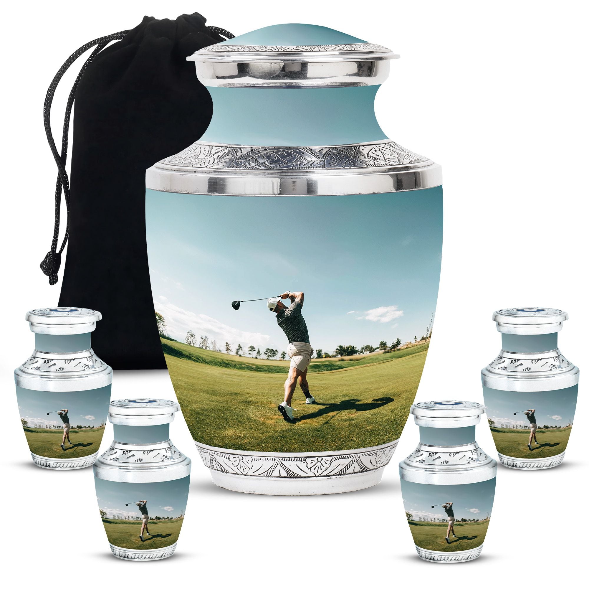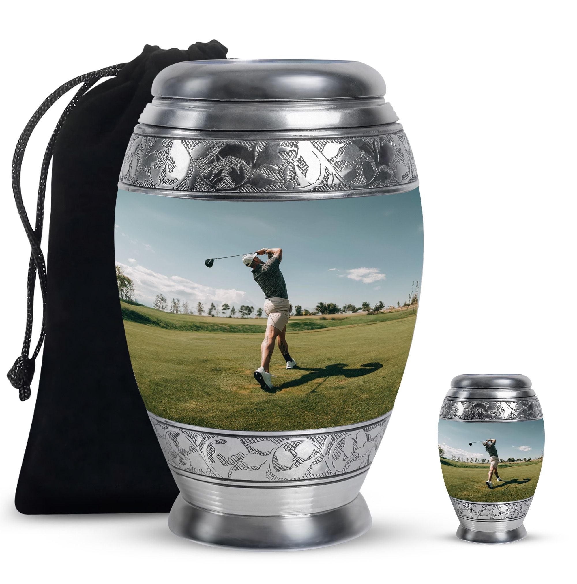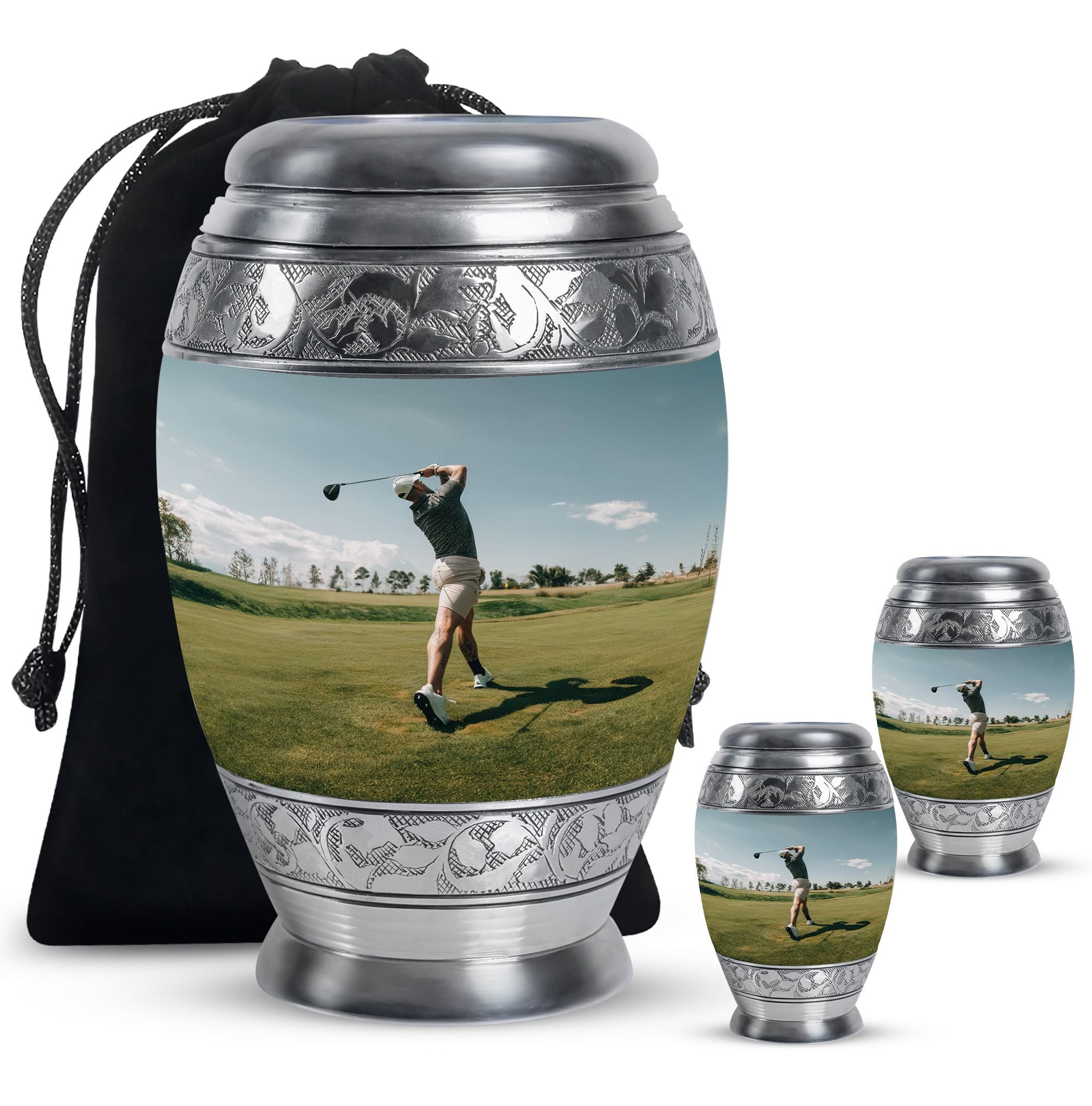 Honor a life filled with love and cherished memories with this golf cremation urn for human ashes. Thoughtfully designed, it provides families with a dignified way to preserve and celebrate the legacy of a loved one. Whether chosen as one of our adult cremation urns or as a small cremation urn for ashes, this design offers comfort and remembrance.