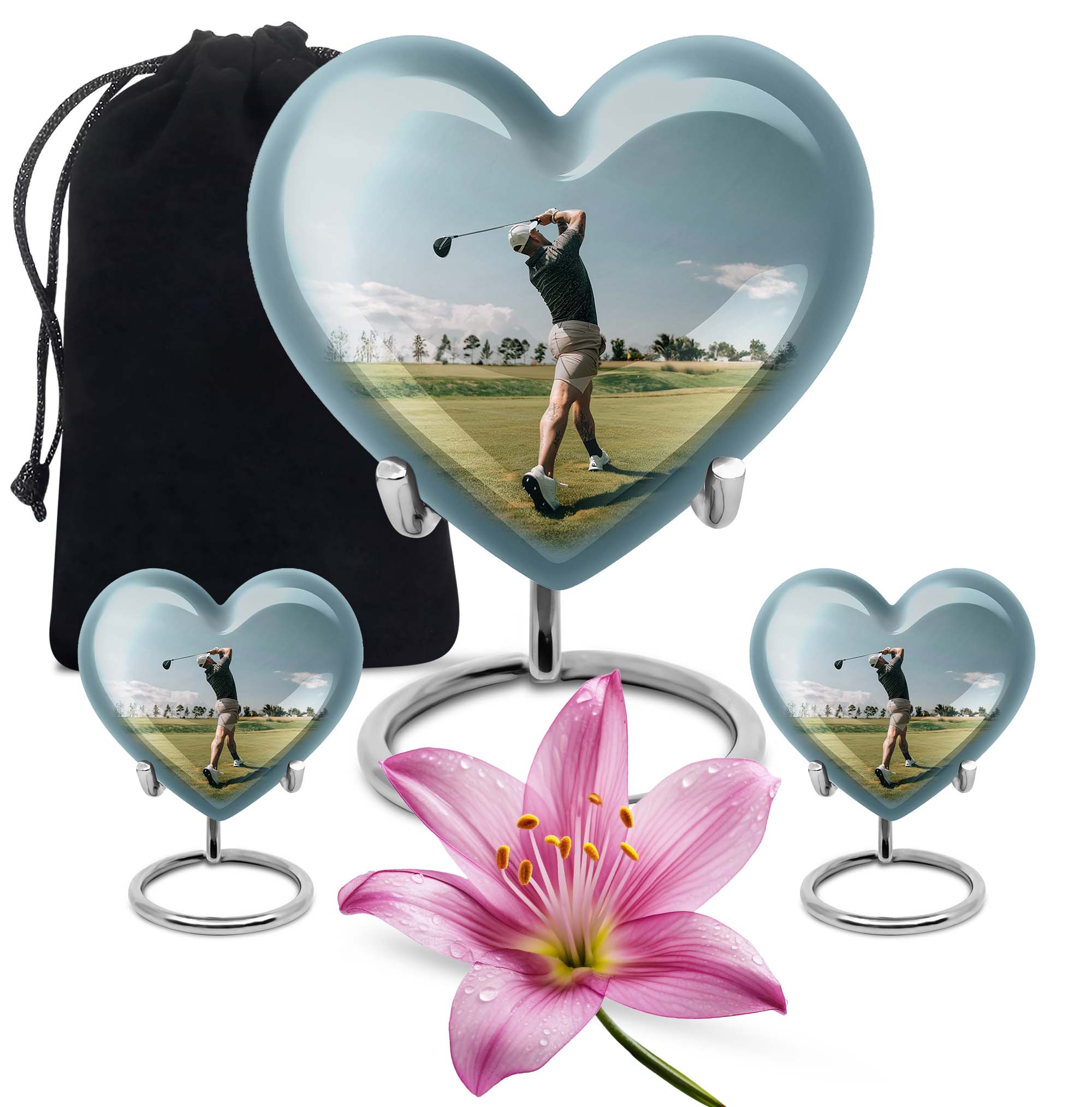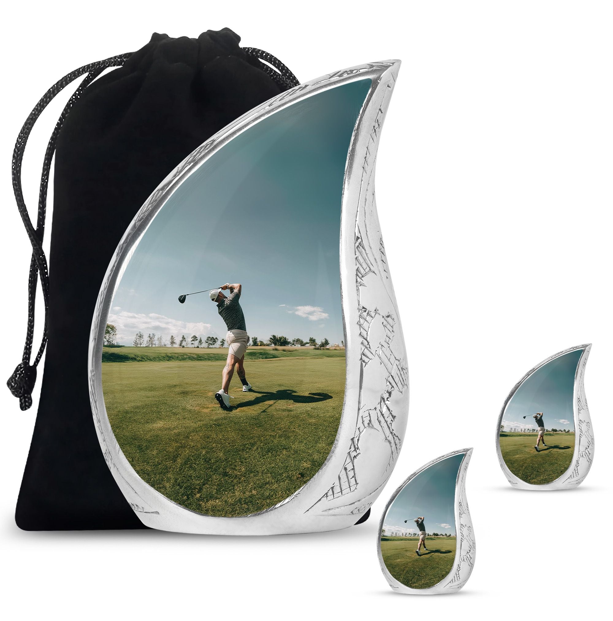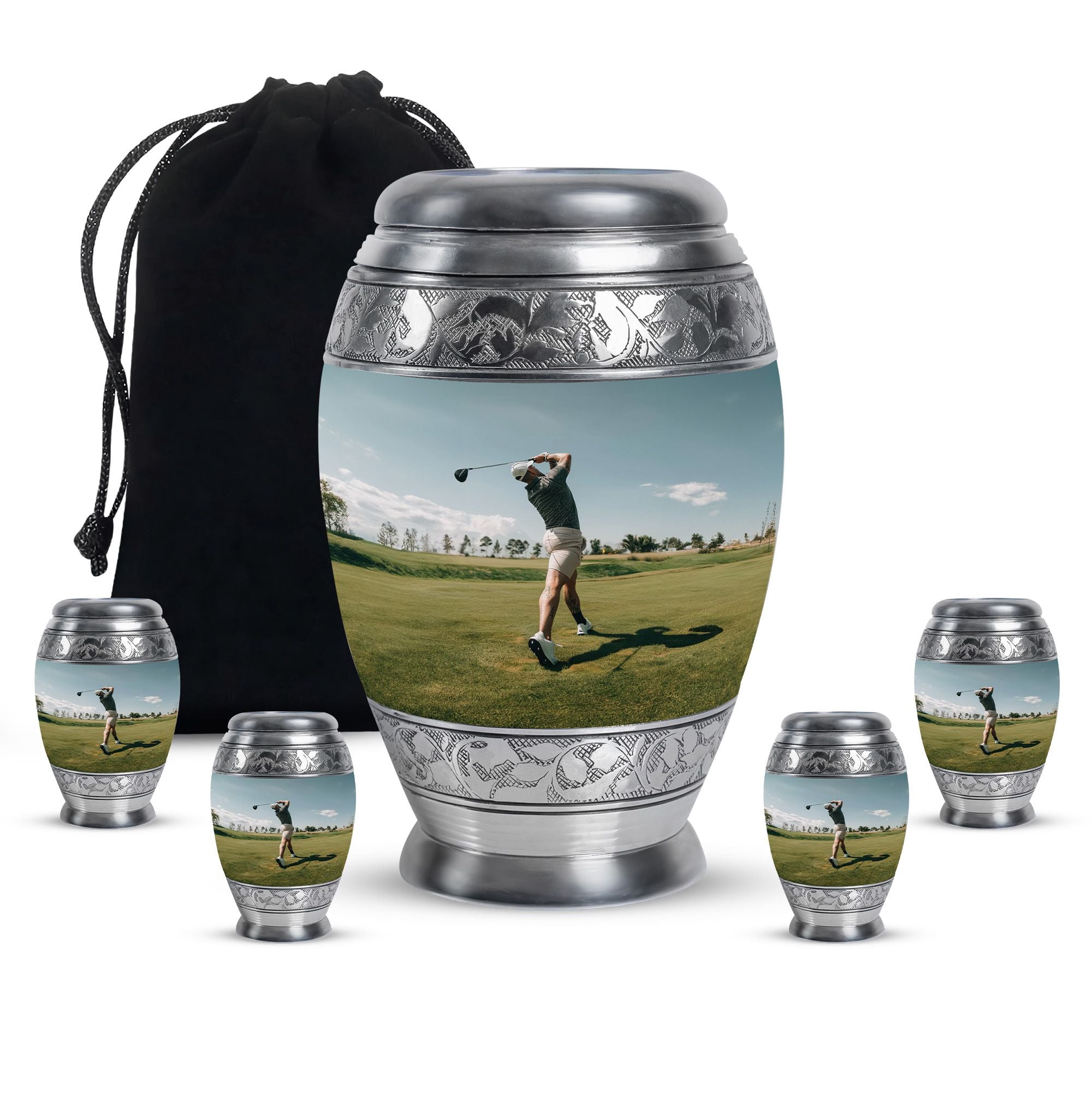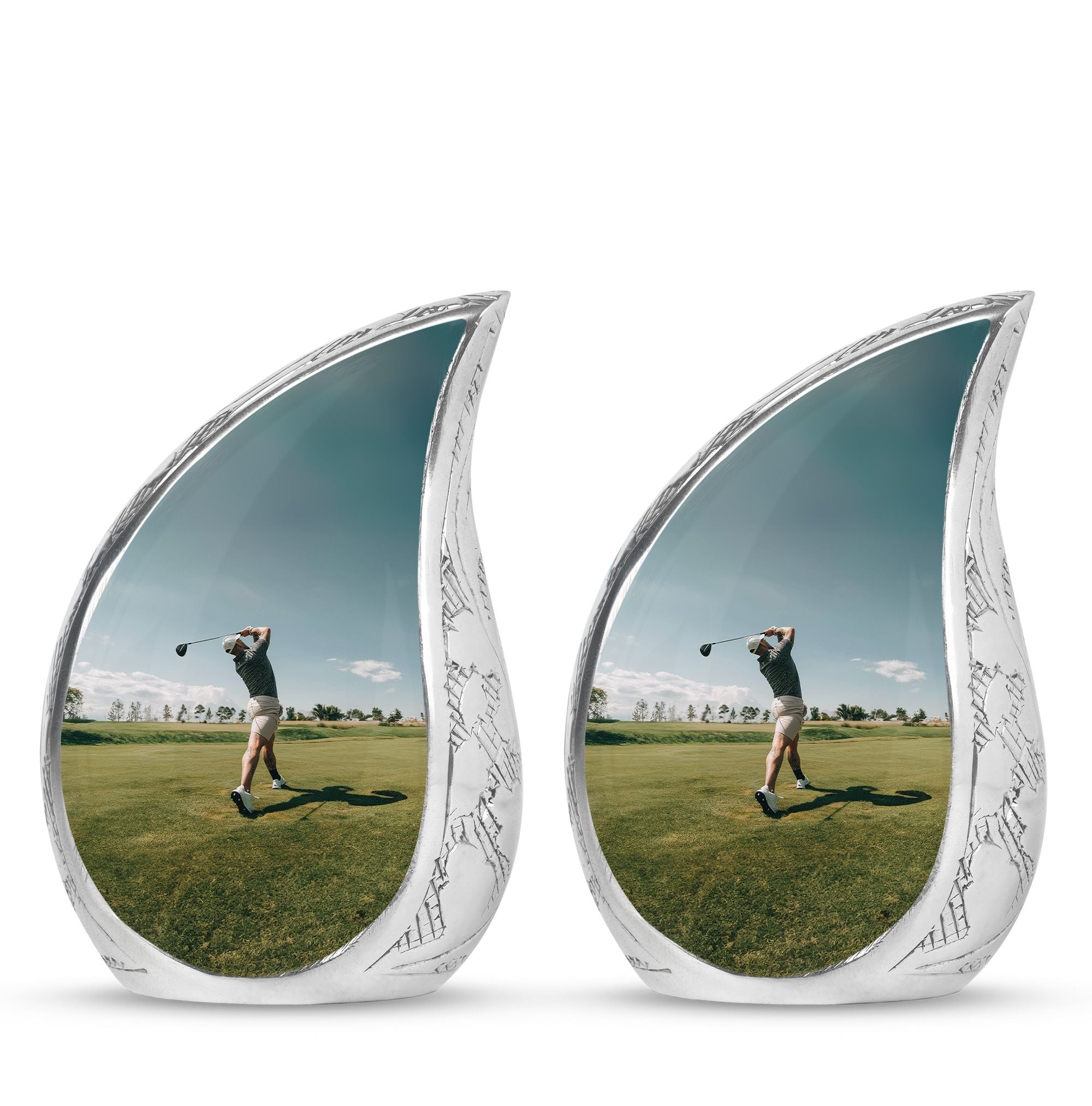 Honor a life filled with love and cherished memories with this golf cremation urn for human ashes. Thoughtfully designed, it provides families with a dignified way to preserve and celebrate the legacy of a loved one. Whether chosen as one of our adult cremation urns or as a small cremation urn for ashes, this design offers comfort and remembrance.