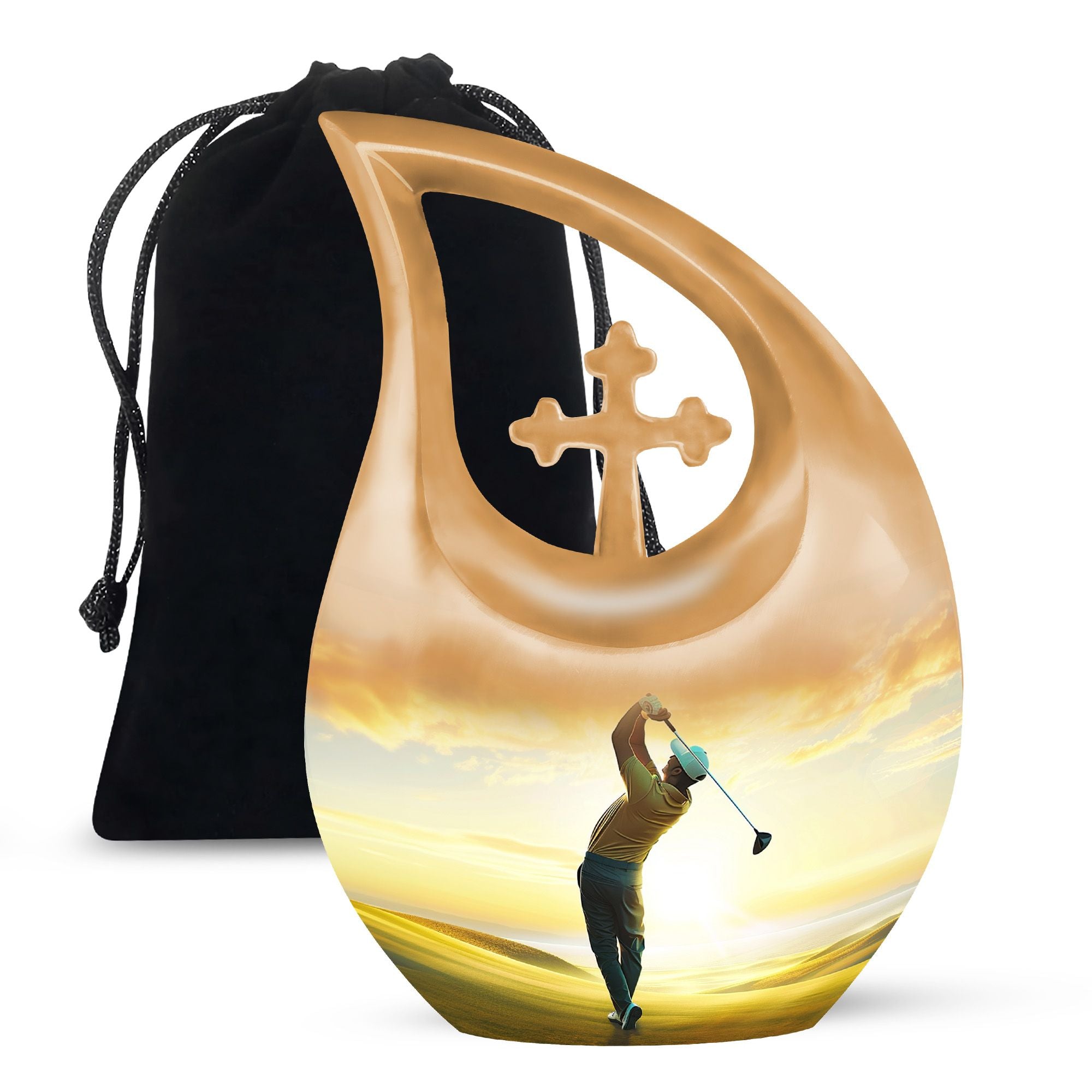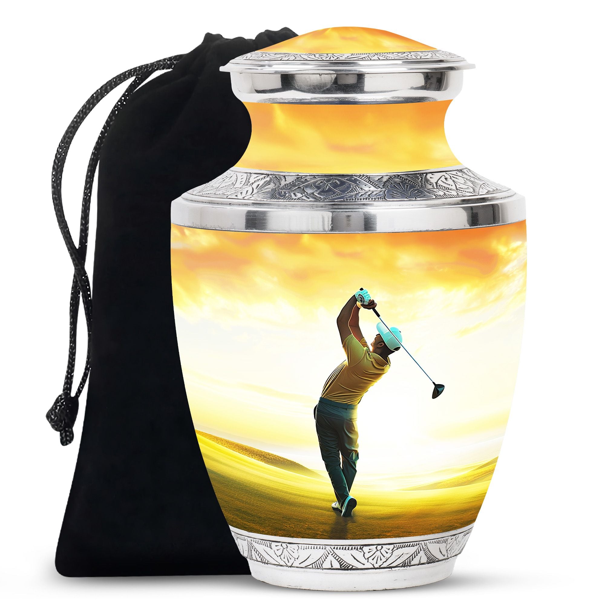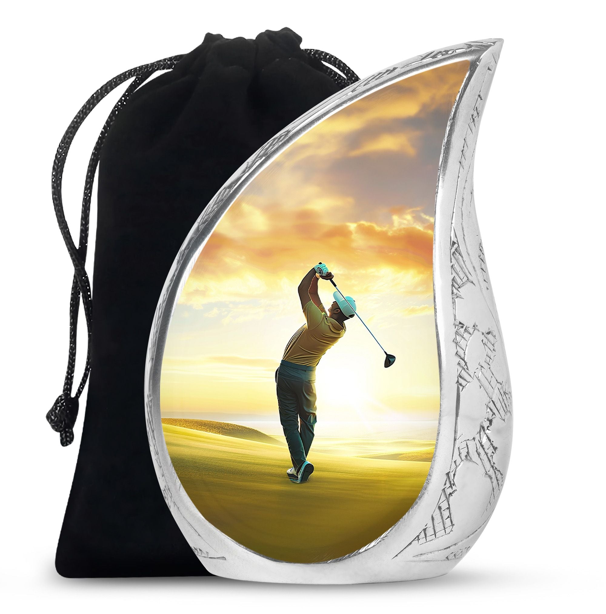 Honor your loved one’s passion for golf with the **Golf Little Urn for Human Ashes**. Order today for a meaningful tribute.