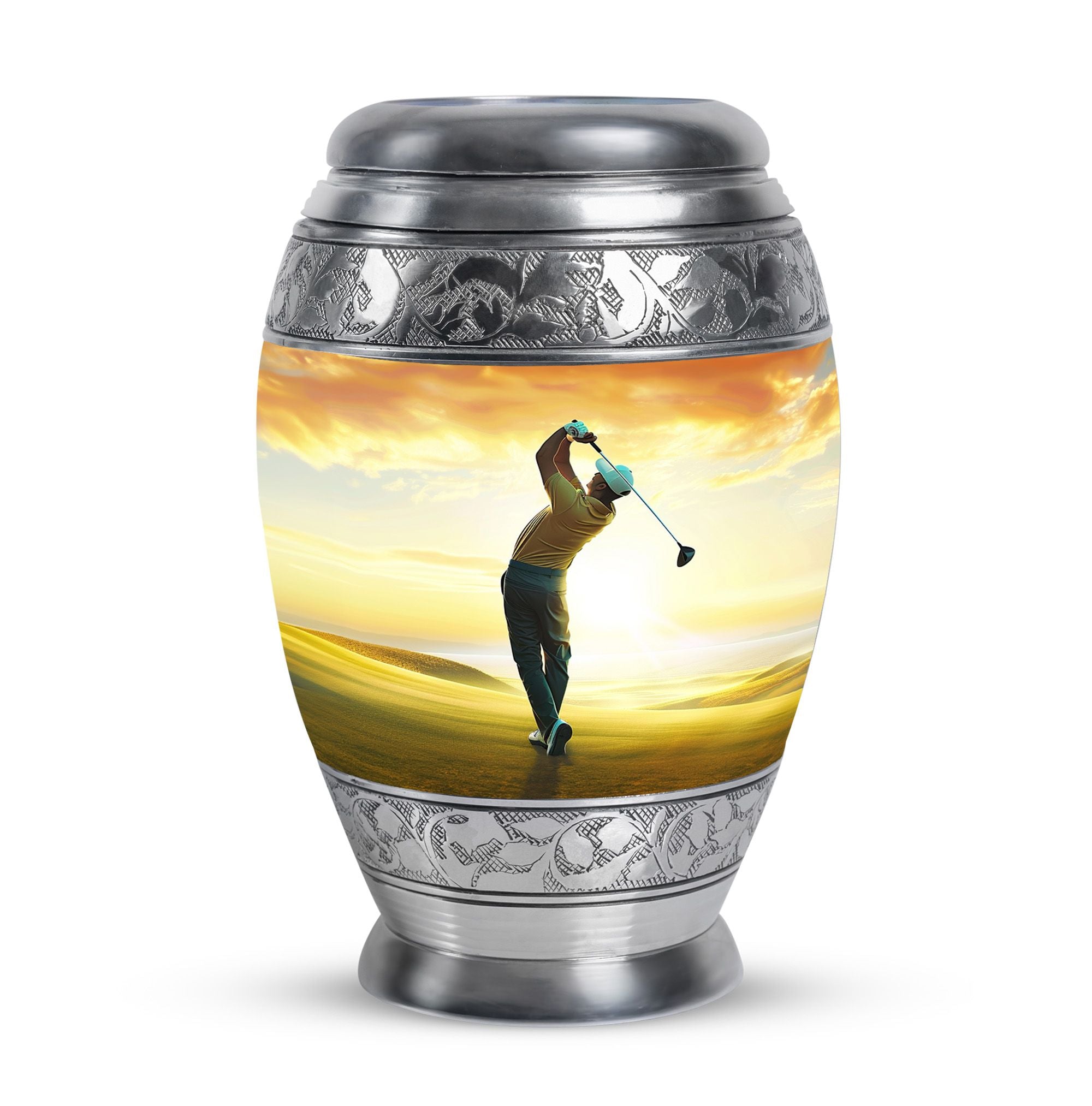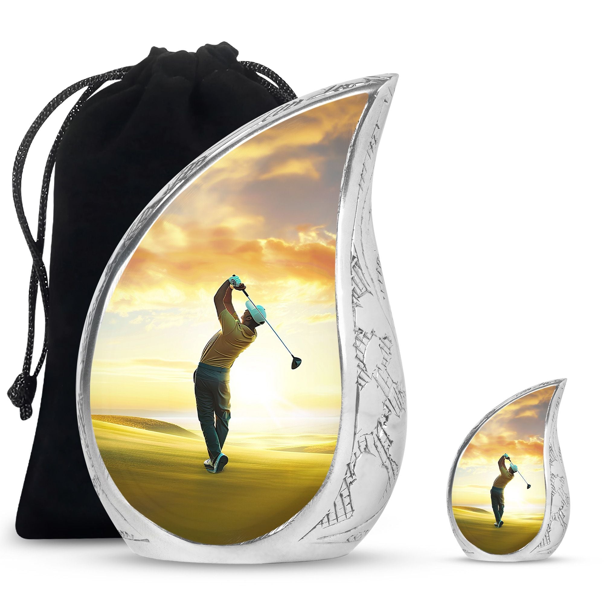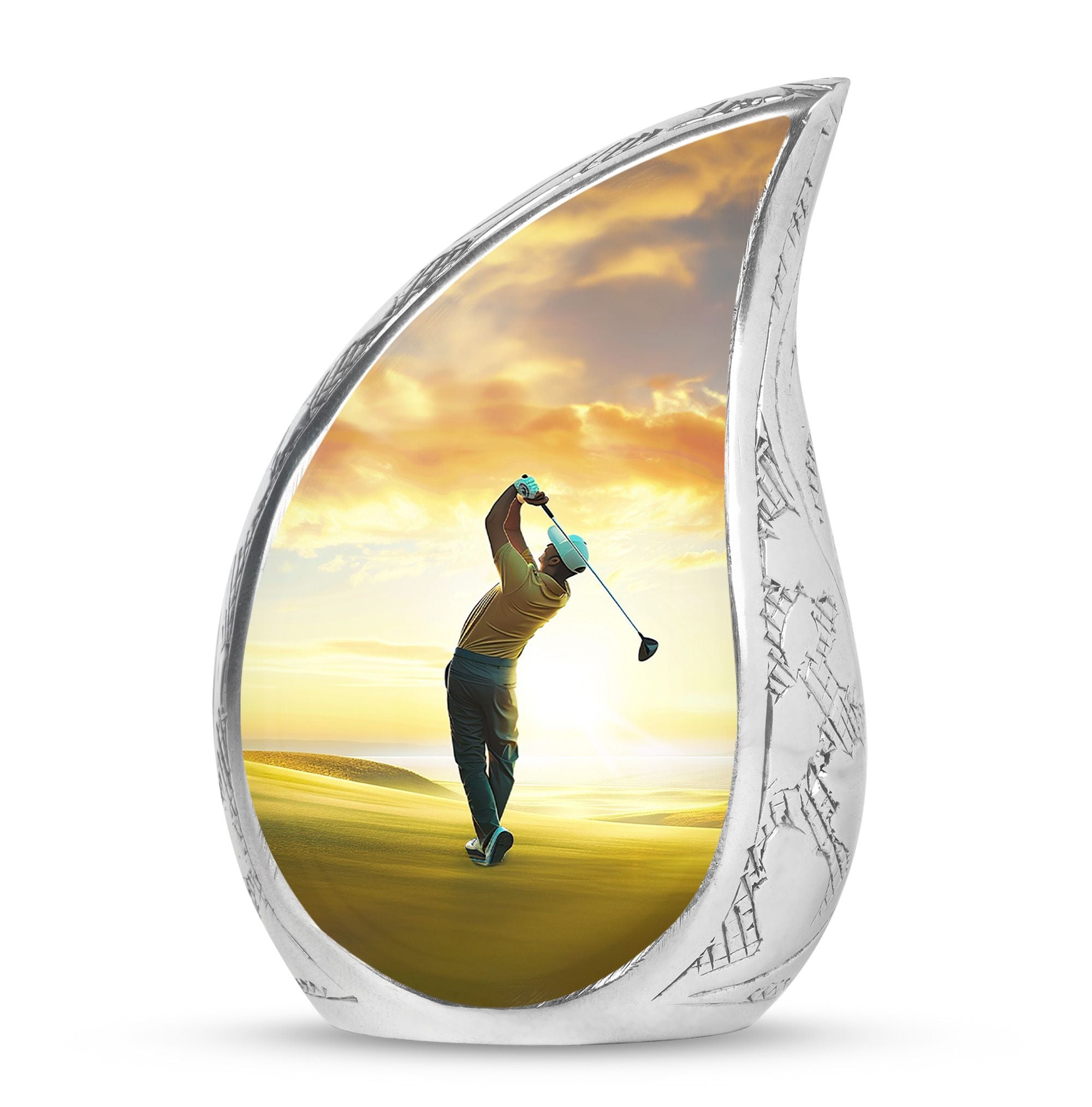 Honor your loved one’s passion for golf with the **Golf Little Urn for Human Ashes**. Order today for a meaningful tribute.