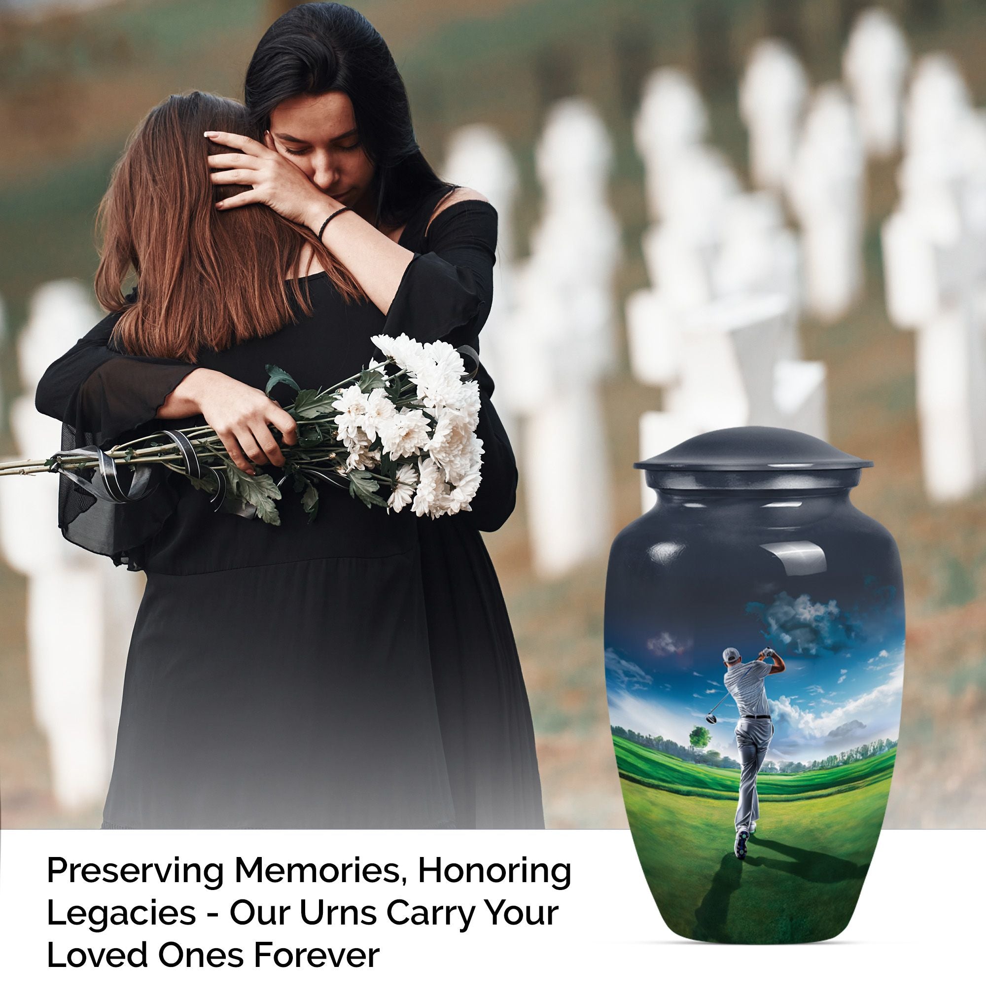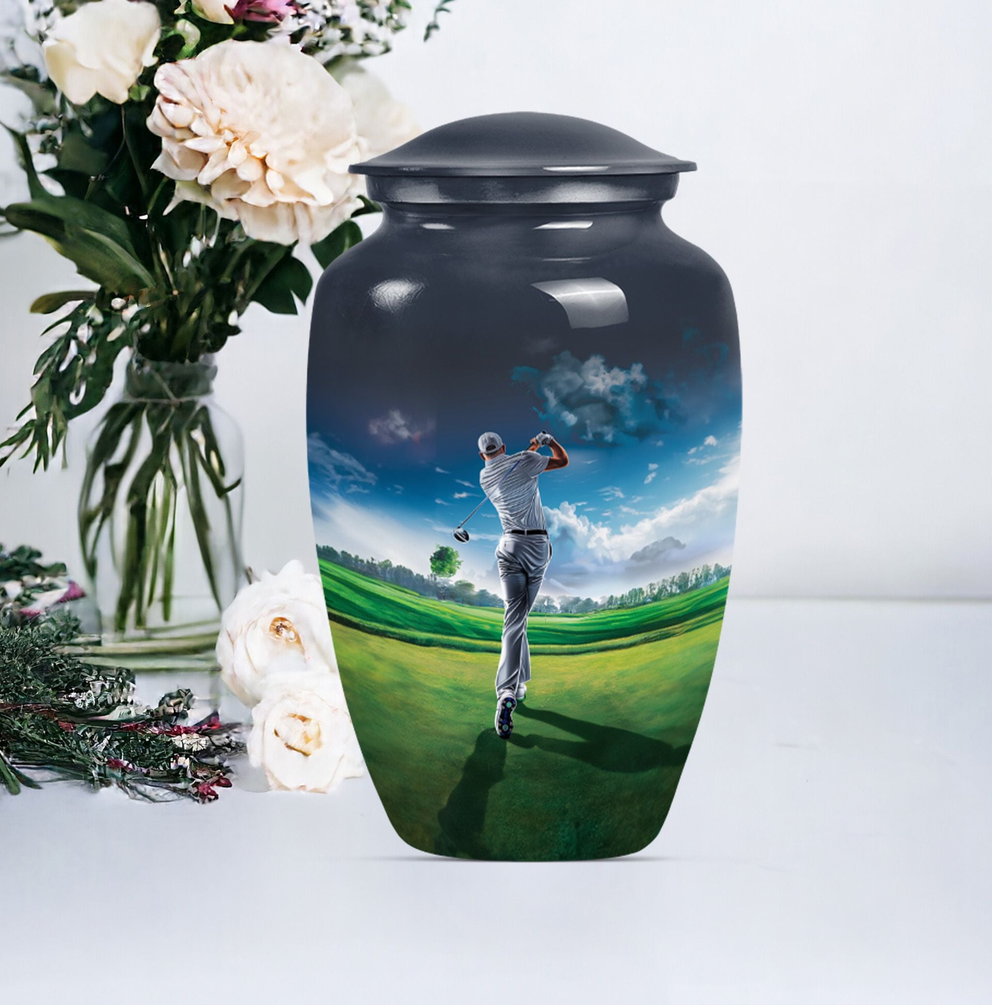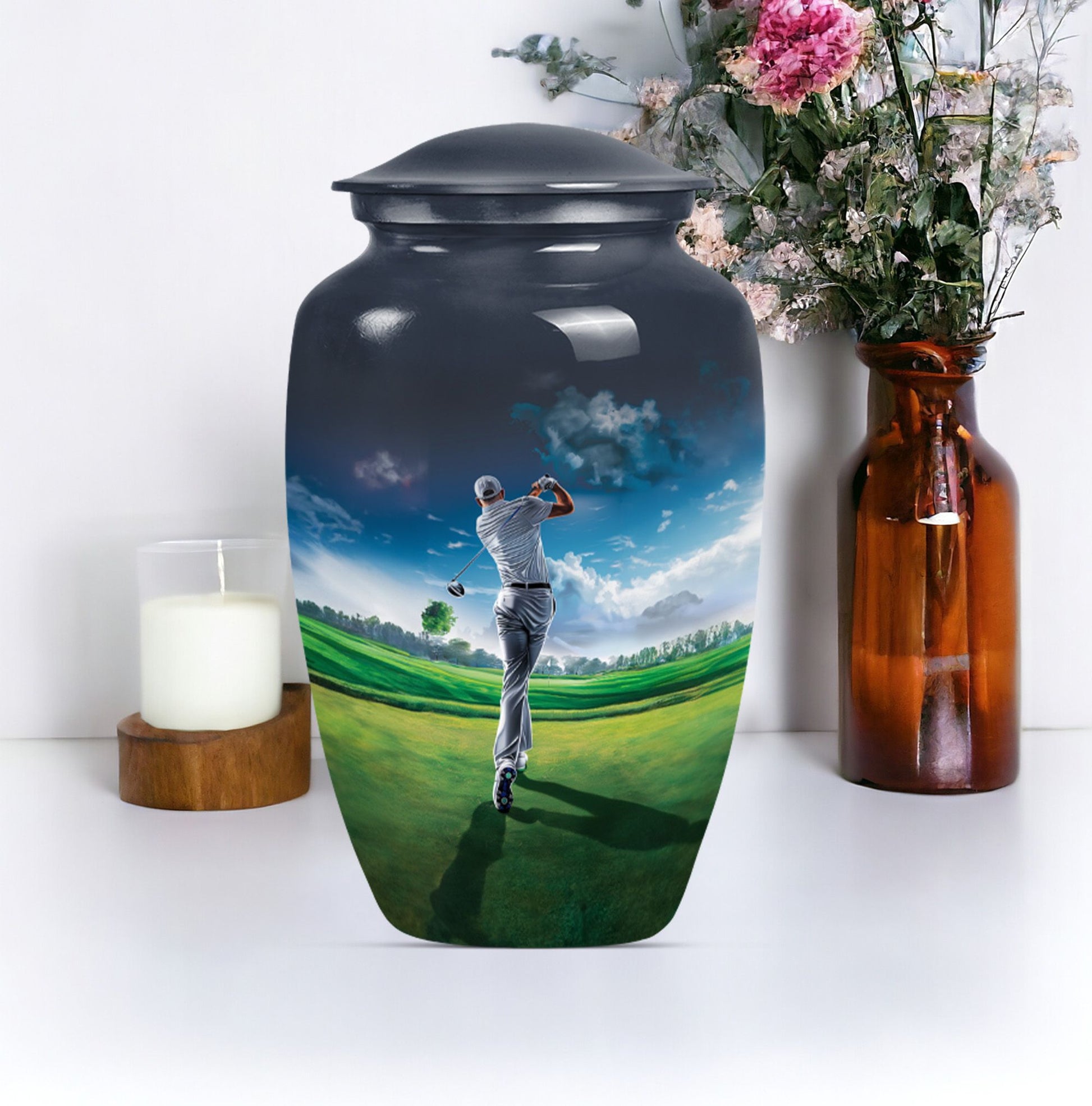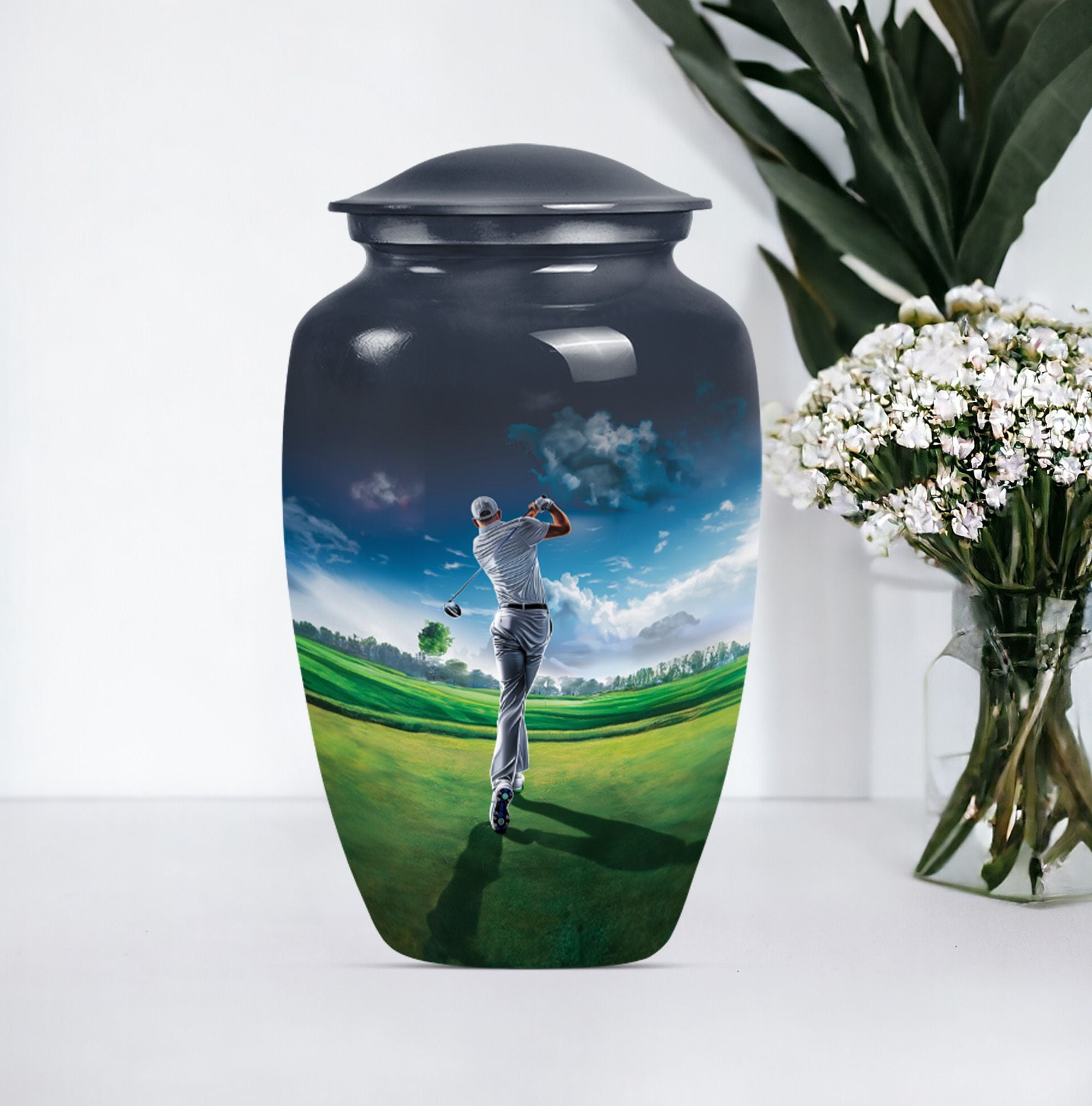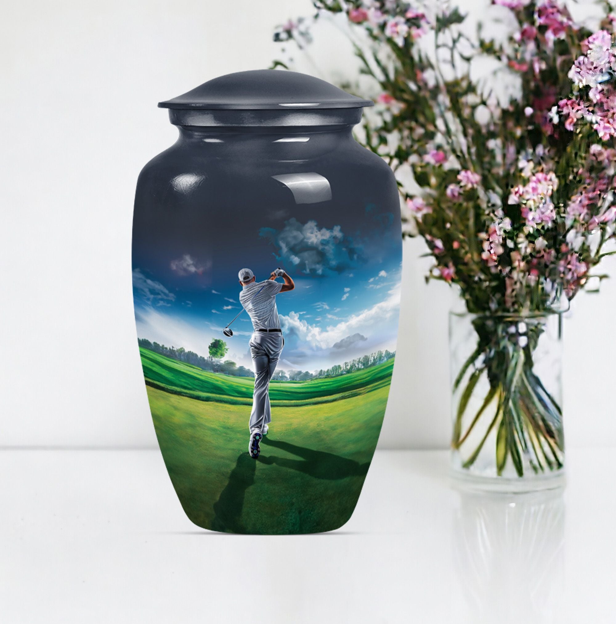 Celebrate the life and memories of a cherished father with the Golf Memorial Funeral Urn. Thoughtfully designed as an urn for human ashes keepsake, it serves as a touching tribute to your loved one, allowing family and friends to honor their legacy. Perfect for urns for human ashes adult male dad, it brings comfort during times of remembrance.