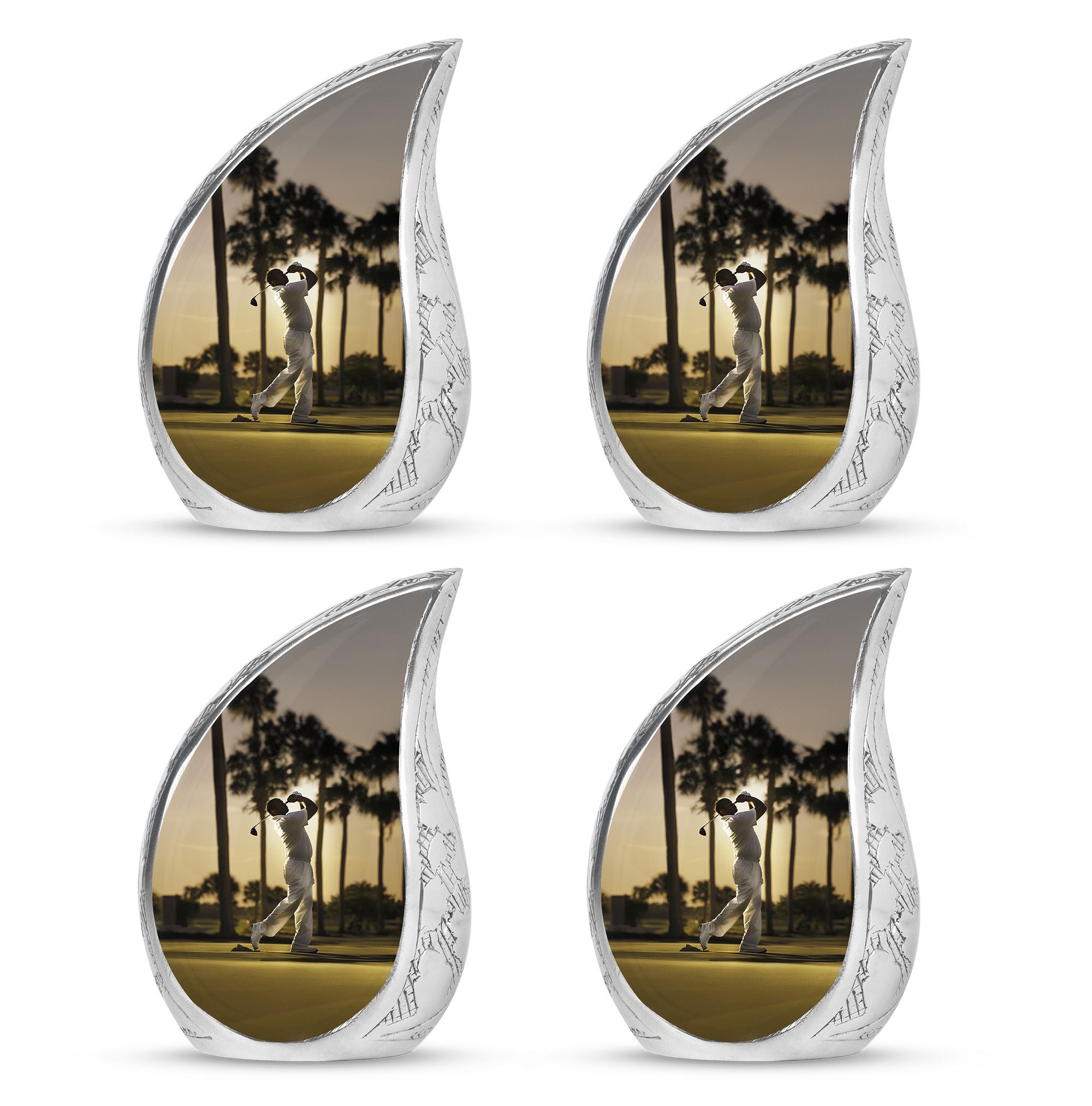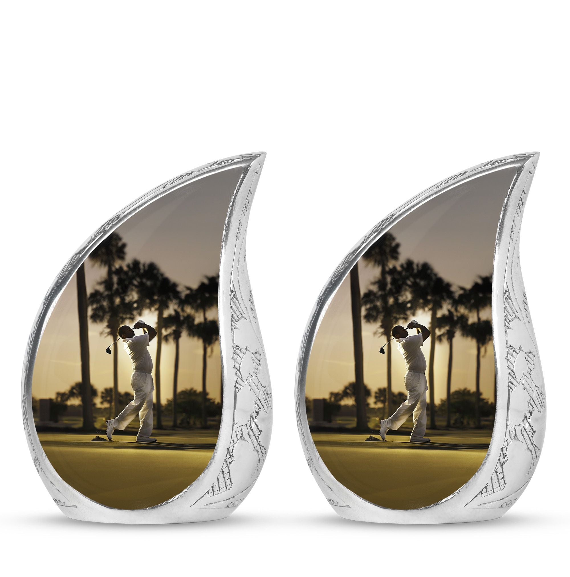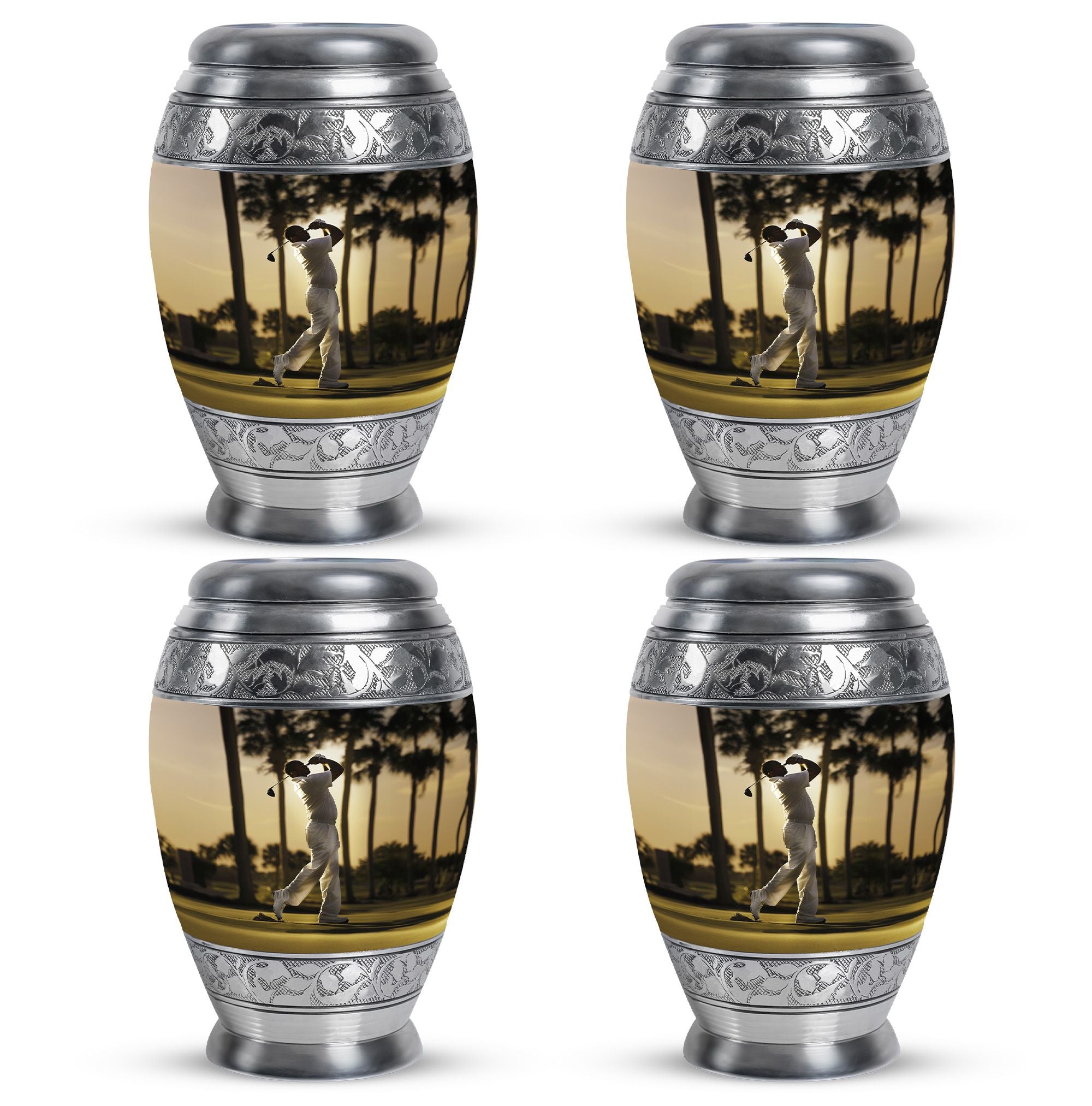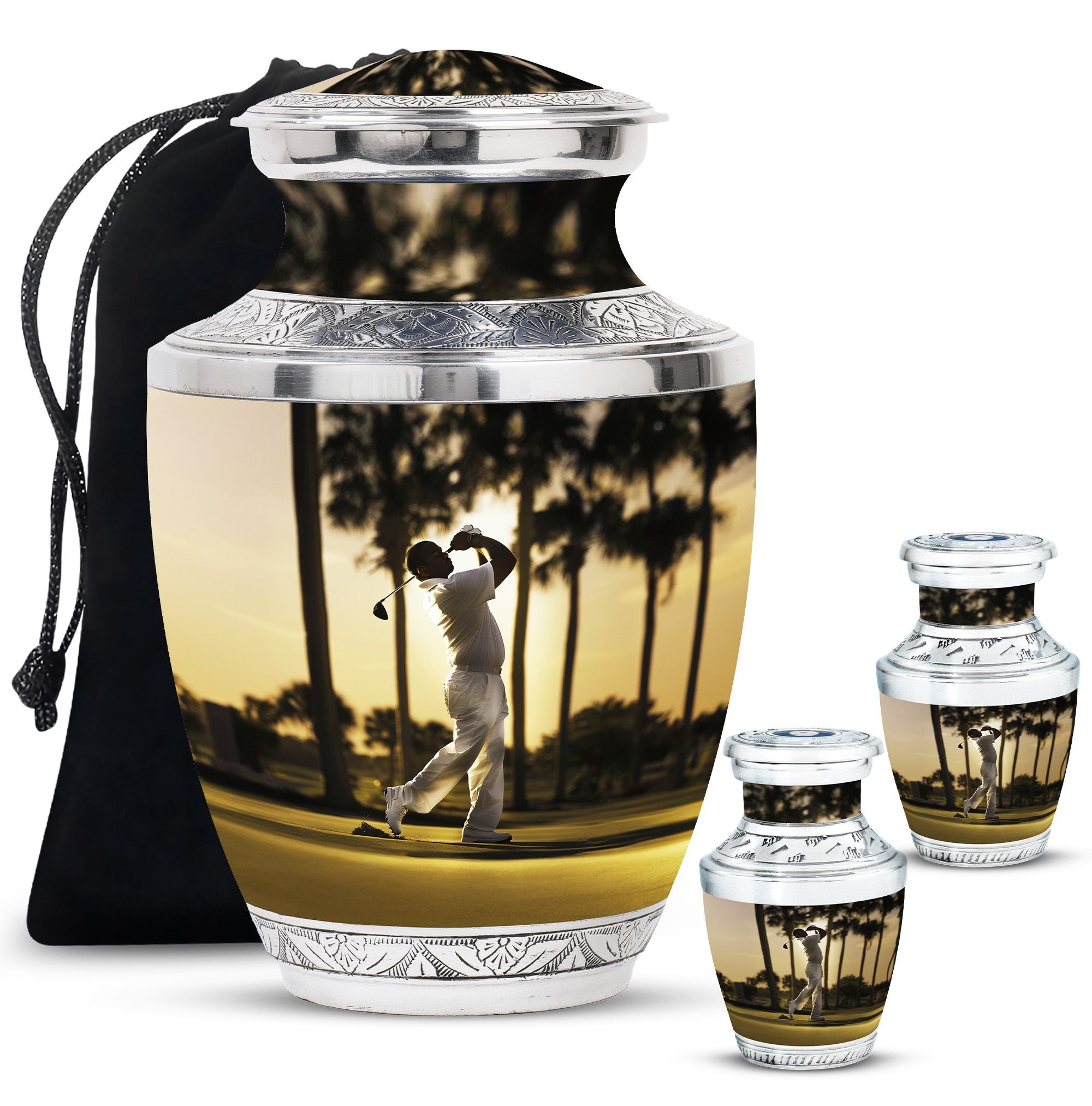 Made from durable aluminum, this urn blends artistry with strength. Its polished finish and elegant golf design make it a unique choice among funeral urns for mom and dad. With a secure screw-top lid and large capacity, it is ideal as a human urn for ashes adult male, while also serving as a meaningful option for urns for human ashes adult female small size or full size.