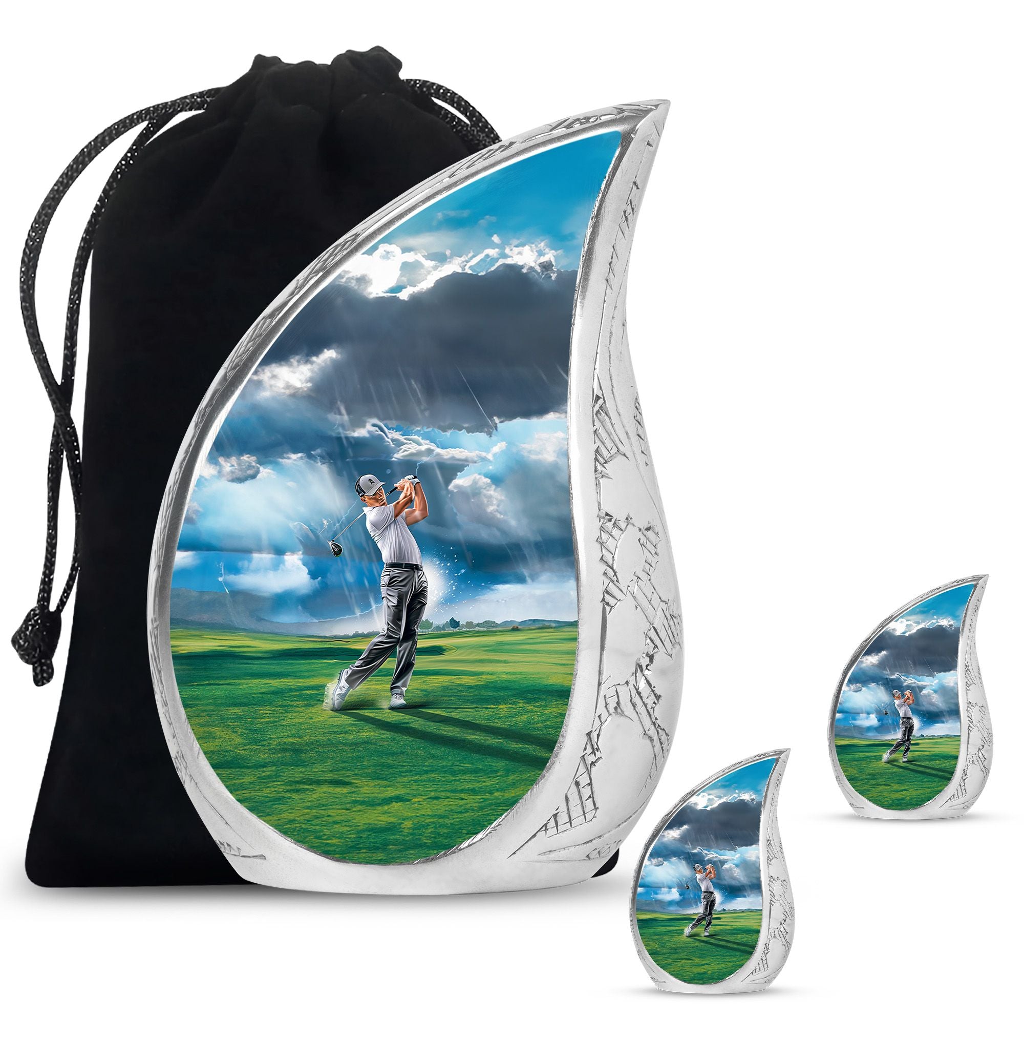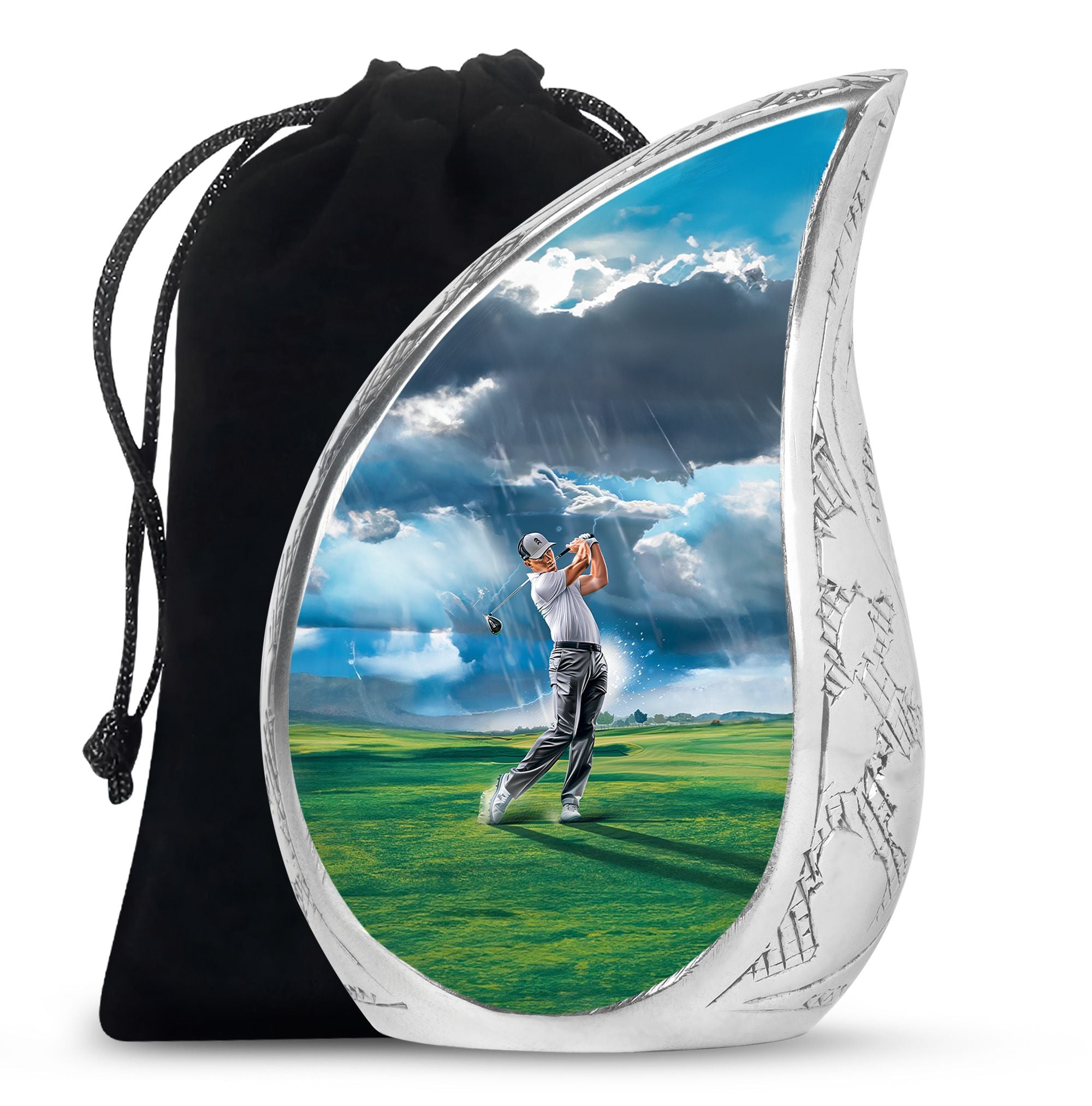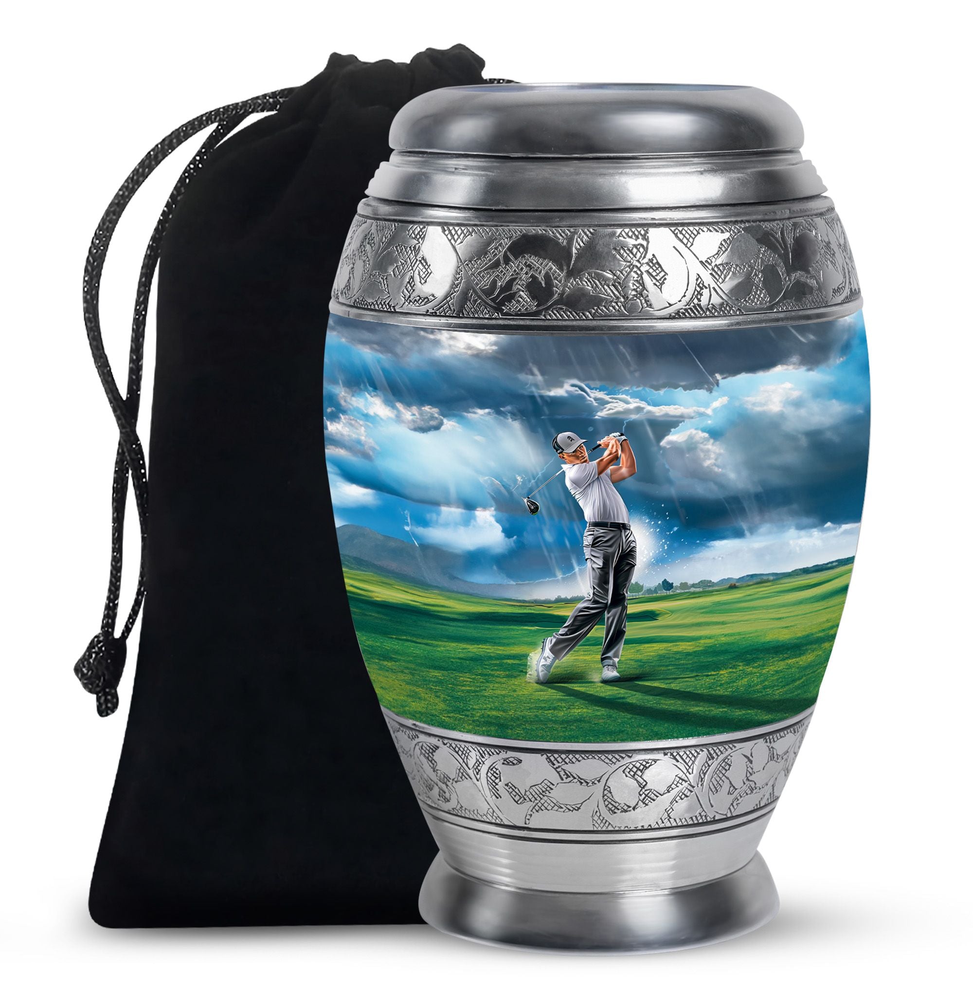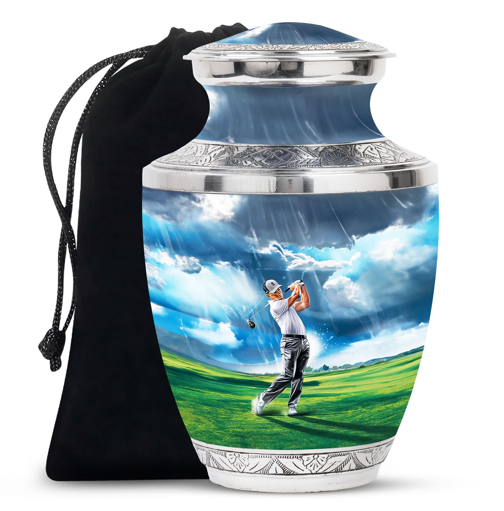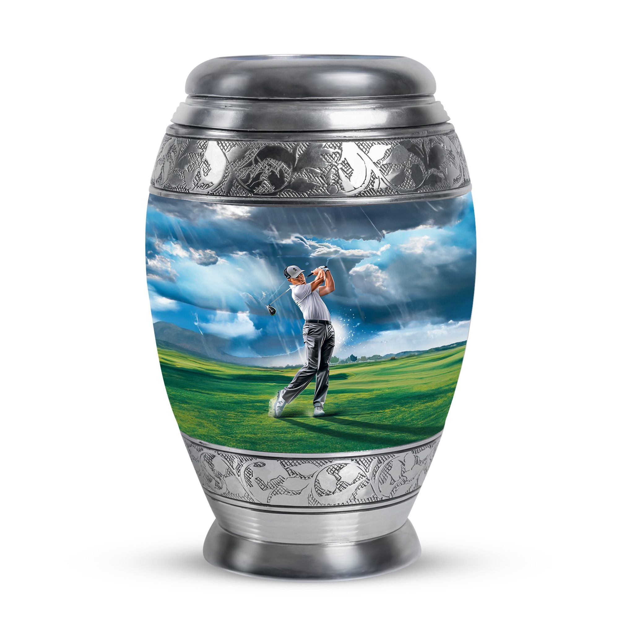Crafted from durable aluminum, this urn combines artistry and strength. Its elegant golf motif and polished finish make it a distinctive piece among funeral urns for human ashes. With a secure screw-top lid and ample capacity, it is perfect as one of the urns ashes adult male families trust, while also serving as a meaningful choice for urns ashes adult female.