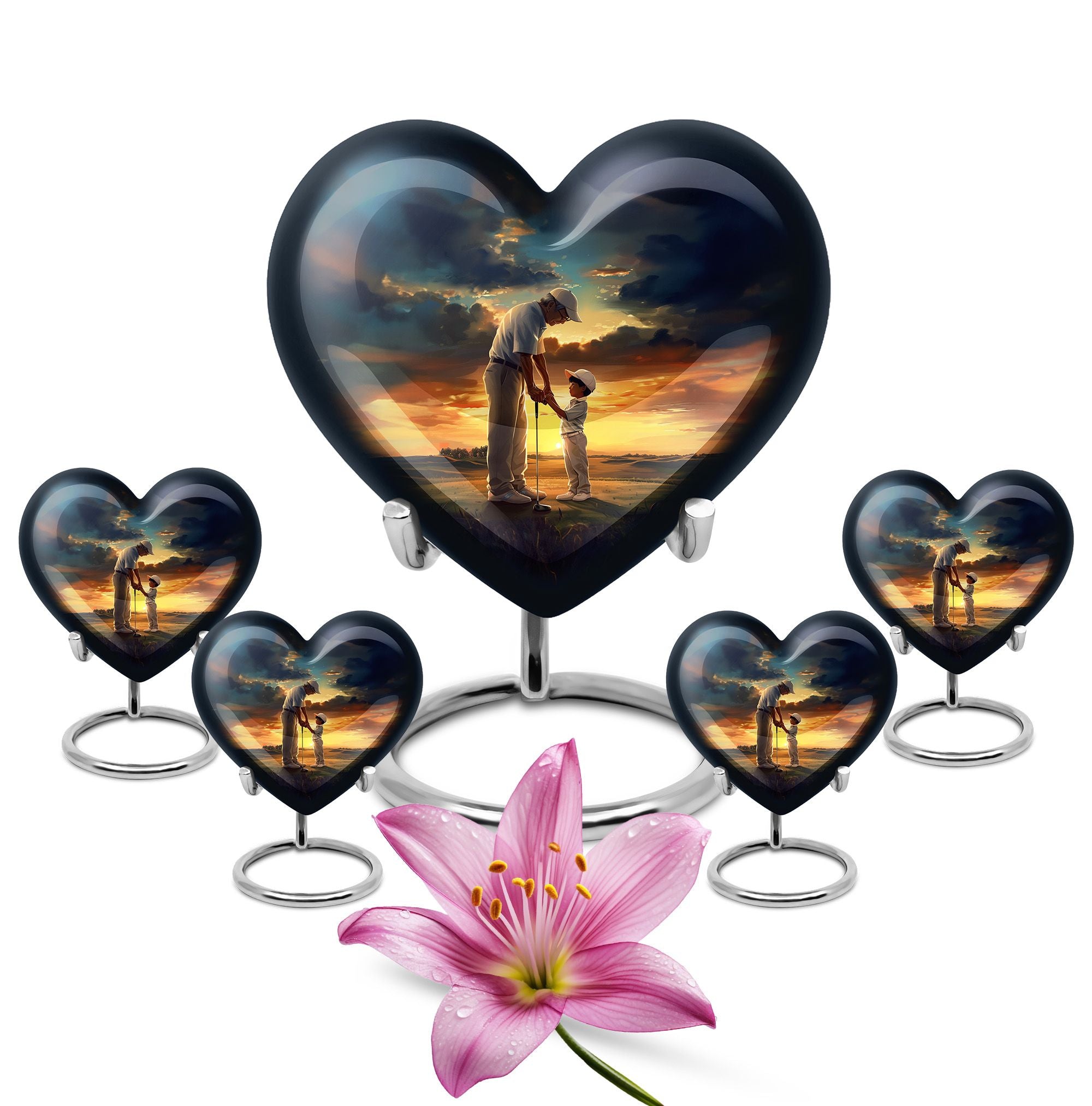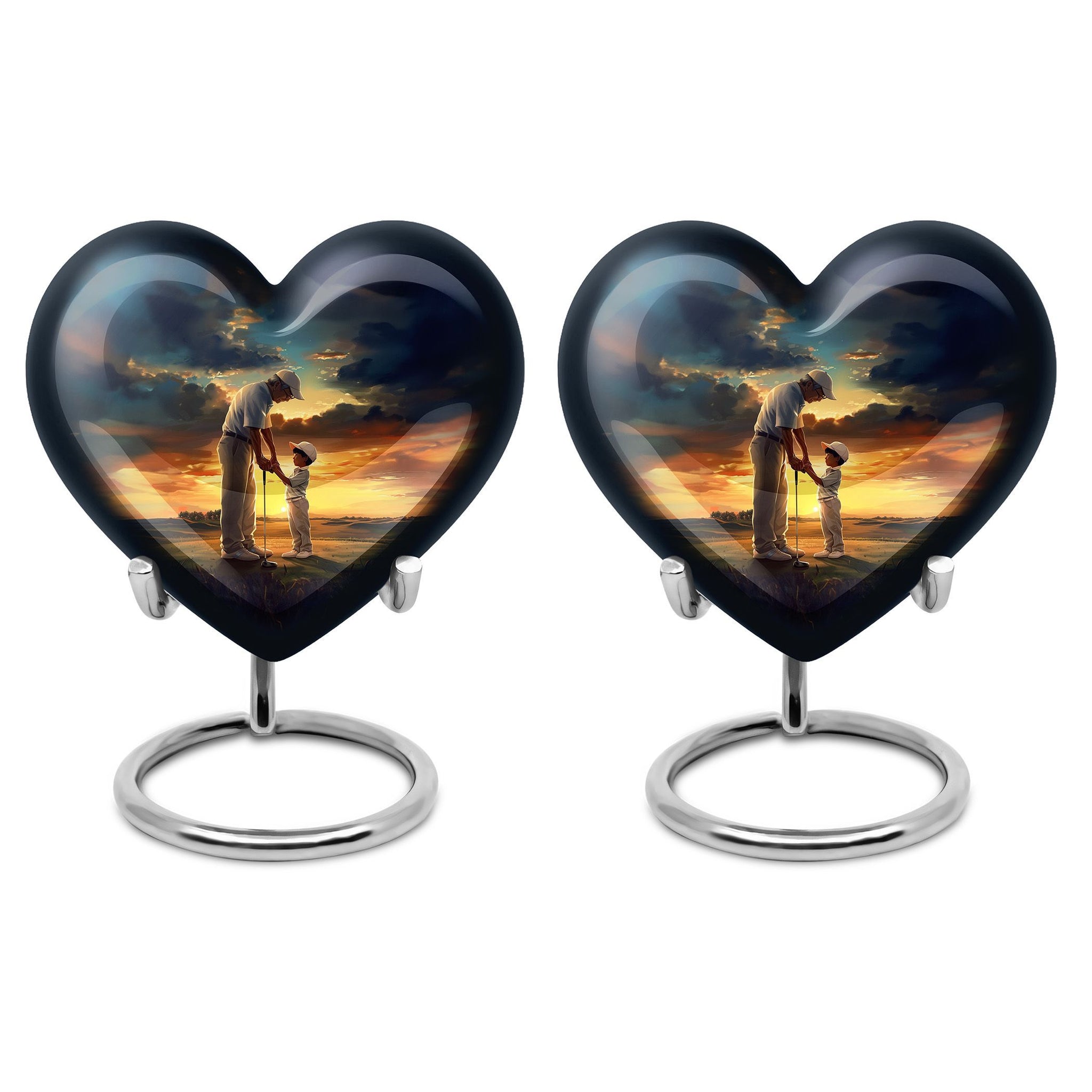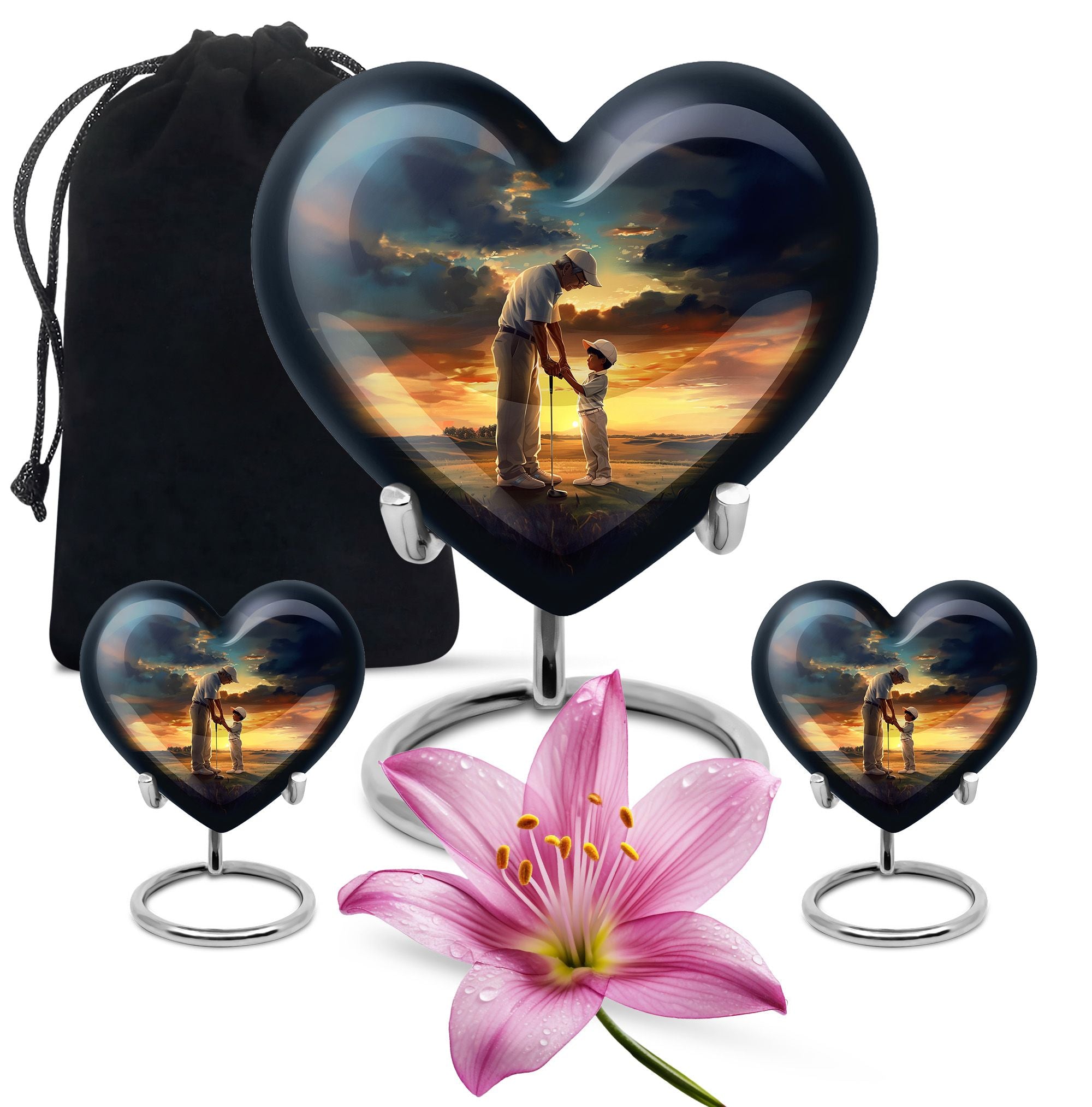 A striking embodiment of love and respect, the Heart Urn stands 10 inches tall, constructed from durable and appealing aluminum. As a symbolic focal point for memorial ceremonies, it's more than just a golf urn or large urns regularly seen. This heart-themed abstract design urn, with a hefty weight of 3.3 pounds, ensures a significant solidity. With a remarkable capacity of 200 cubic inches, it can accommodate not only adult ashes for women but is capable as a funeral extra large urn for adult male ashes as well. Along with this purchase, you will receive a velvet pouch intended for the containment of the beloved one's ashes. Additionally, engraving names on the urn is an available option, allowing you to add a personalized touch. This diversely described as a 'memorial urn,' 'cremation urn', or 'burial urn' assures strength, durability, and peace of mind.