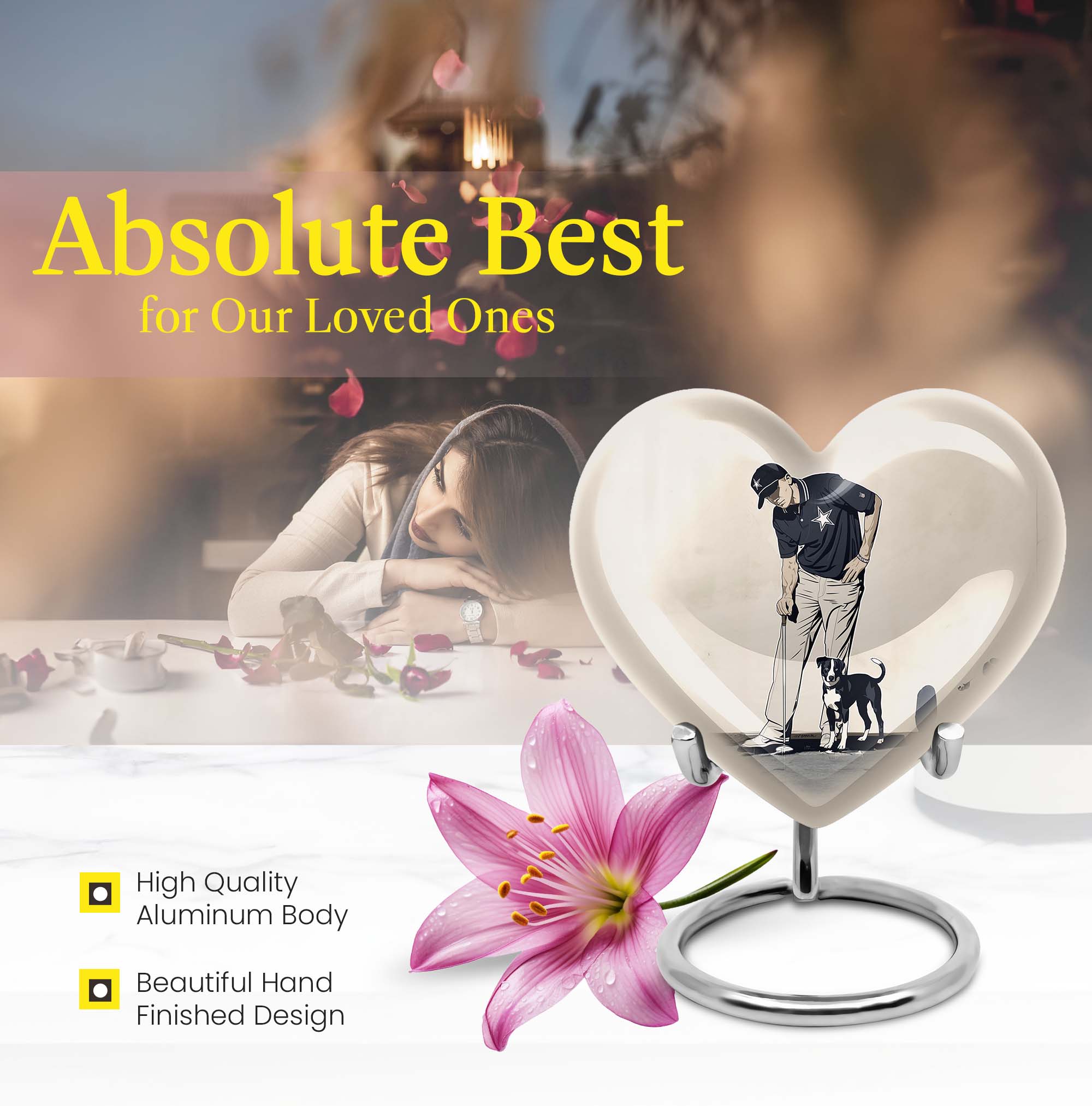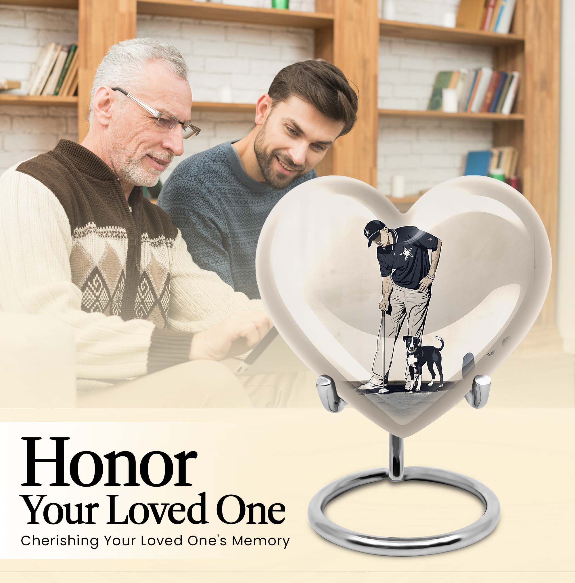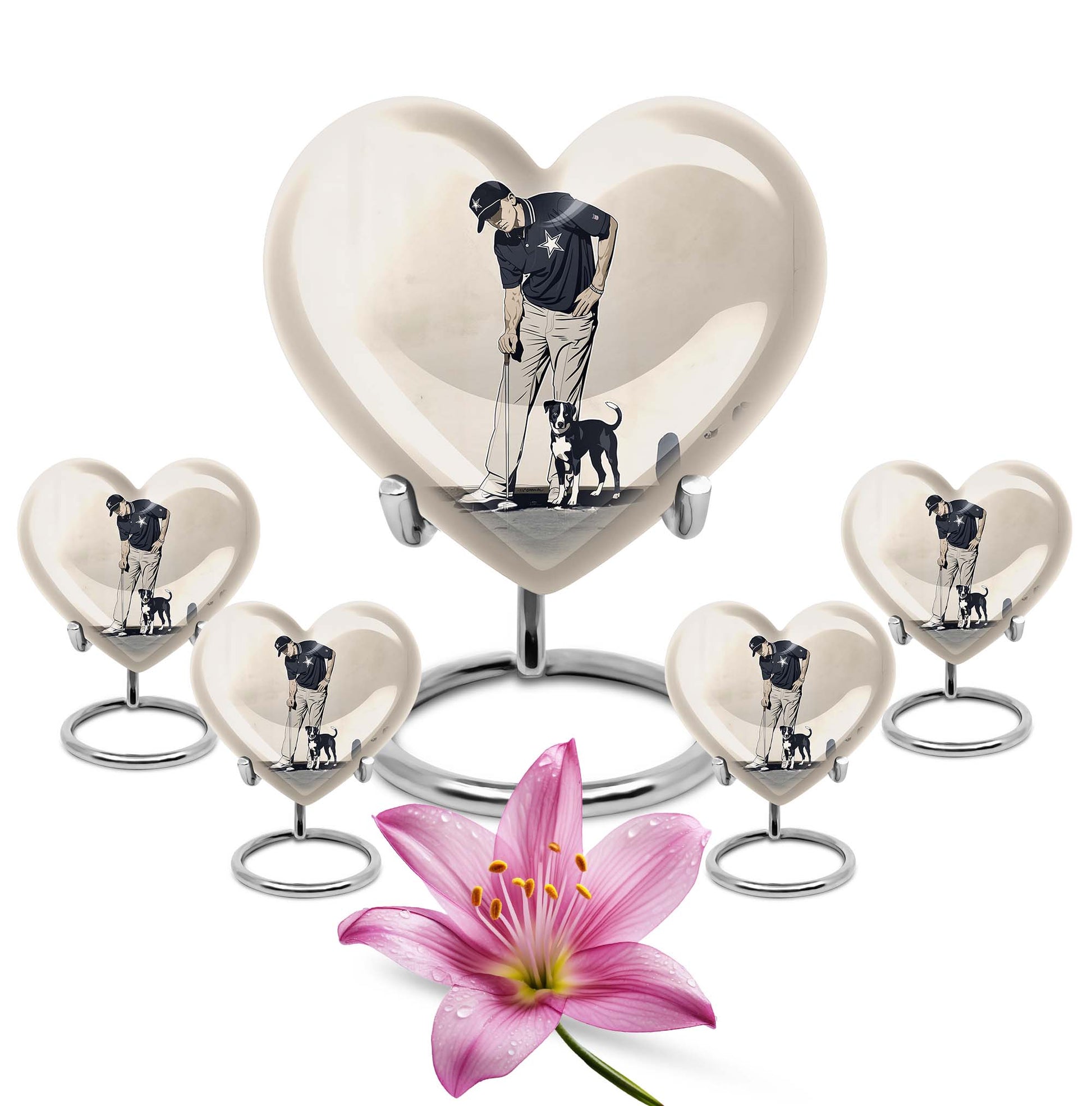 Experience peace and remembrance with our meticulously crafted golf urn, an exquisive epitome of the Memorial Ceremony Supplies realm. Seamlessly blend honoring your loved one with their passion for golf, with this distinctive, 10 Inch heart-shaped abstract-themed urn. Made from durable, high-quality aluminium, this large urn is built to last; ensuring the cherished memories of your loved ones endure. It has ample capacity of 200 cubic inches, perfectly suited to hold adult human ashes. Weighing 3.3 pounds with its 10-inch height, it's a palpable tribute to your dear departed, and the heartfelt sentiments you long to convey. The cremation medium urn comes with a complimentary velvet pouch, providing a dignified containment for the ashes. To add an intimate touch, personalize this memorial urn with engraved names. Primed for your needs as burial urn for adult ashes, whether for an adult female or a beloved companion. Remember the bounty of their spirit and celebrate it, with this masterfully constructed urn.