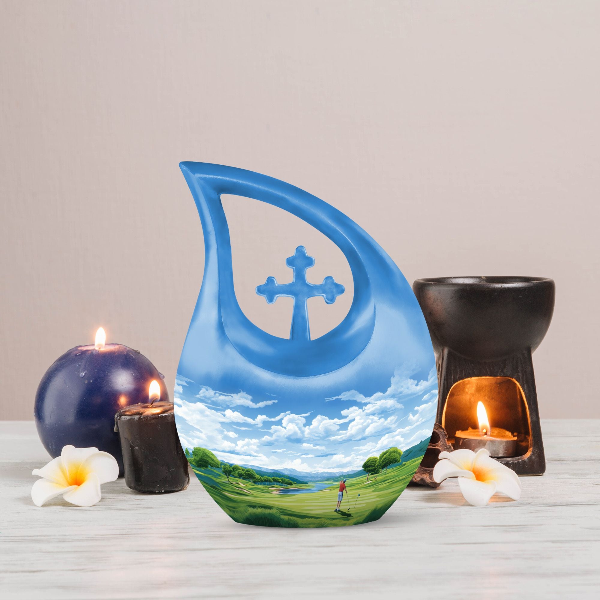 A peaceful and heartfelt tribute, this Golf Cremation Urn for Men & Women honors a loved one who found joy, calm, or passion on the golf course. Designed to bring comfort, it offers a dignified way to preserve memories while supporting families seeking adult urns for human ashes men, urn for ashes for men, or a gentle memorial for women.